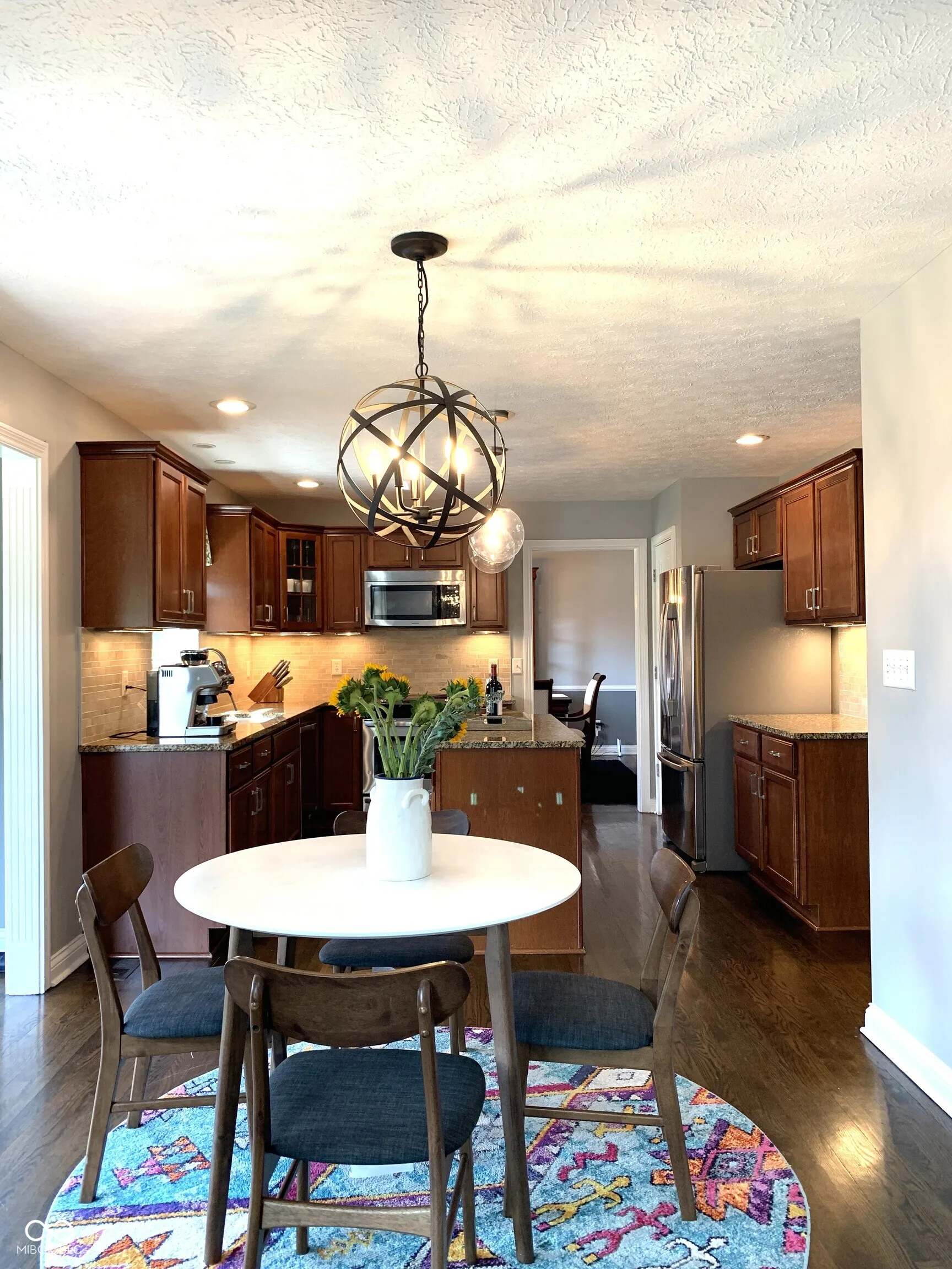 MOVE-IN READY 4BED/2.5BTH HOME WITH AMAZING FINISHES & UPDATES IN CARMEL! Nestled in a peaceful cul-de-sac, this stunning two-story single-family home boasts a spacious and inviting layout perfect for modern living. As you enter through the high entrance, you’re welcomed by a breathtaking two-story family room featuring large windows that flood the space with natural light, and a cozy fireplace that adds warmth and charm. The gourmet kitchen is a chef’s dream, equipped with updated stainless steel appliances, sleek countertops, and ample cabinetry. Hardwood floors grace the main level, stairs, and upstairs hallways, providing elegance and continuity throughout. The home offers four generously sized bedrooms and two and a half baths, all meticulously maintained and updated. Recent updates include a newer roof, water heater, water softener, sump pump, carpet, lighting fixtures and fresh paint, ensuring peace of mind and a move-in-ready experience. The finished basement offers versatile space for recreation or additional living quarters. It is an entertainer’s paradise, featuring a movie theater, a wet bar, and a foosball table-perfect for hosting game nights or cozy movie marathons. The large, fully fenced backyard is equally inviting, complete with a spacious deck ideal for outdoor gatherings and a play set for endless family fun. Located in the highly sought-after Carmel area, this home offers easy access to highways, shopping, dining, and is part of the top-rated Carmel Clay Schools. Don’t miss this opportunity to own a beautiful, move-in-ready home in a prime location!