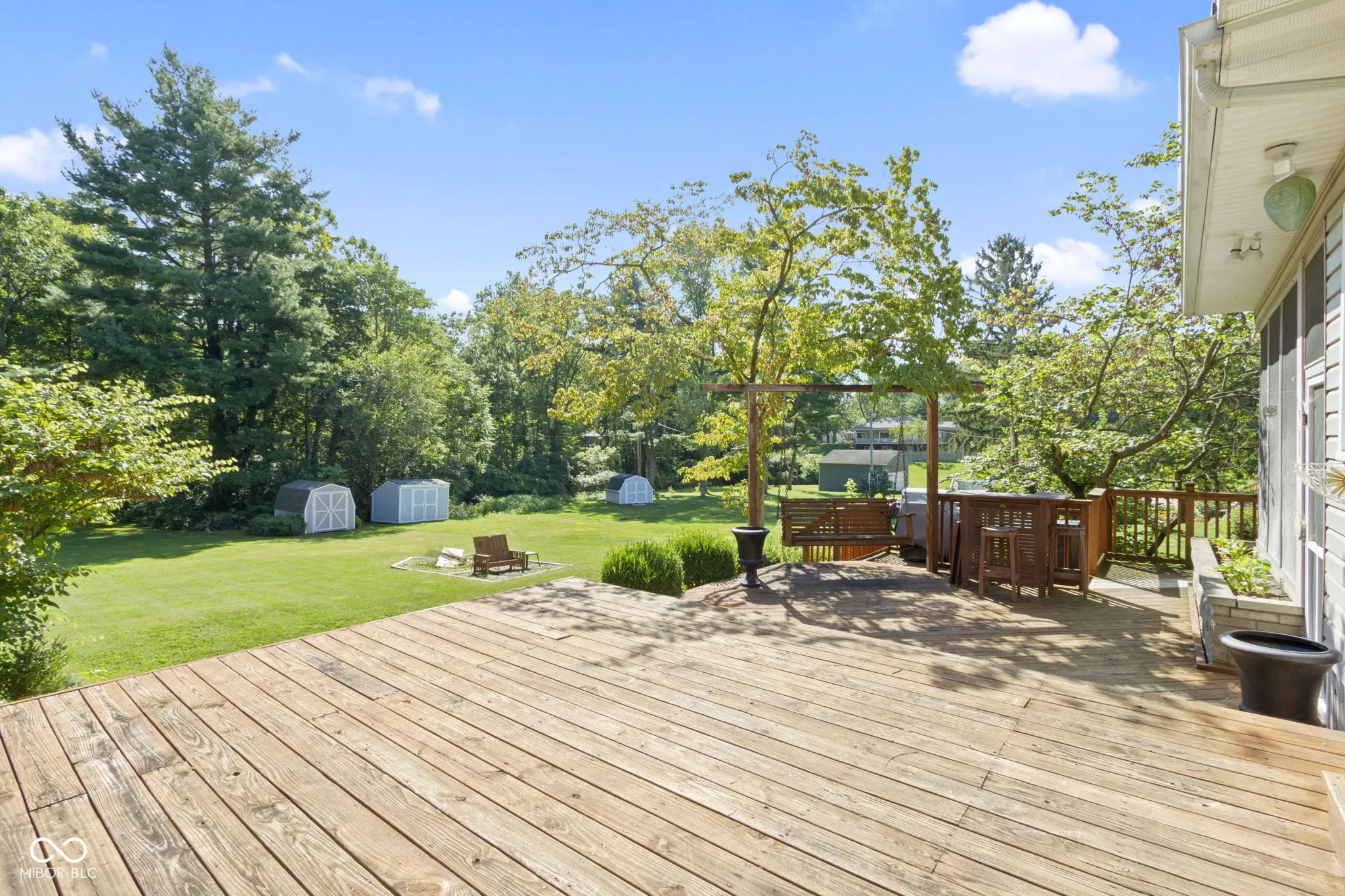 Welcome to this charming ranch home in the sought after neighborhood of Terrace Gardens. Only minutes away from shopping, restaurants, and everything else Kokomo has to offer, you’ll enjoy this tucked away, country-like atmosphere. The home sits on a 3/4 acre lot with a wooded area behind it. This well-maintained property features a dry basement and boasts three bedrooms and two full bathrooms. You’ll love the beautiful hardwood floors, adding to the home’s appeal. The updated kitchen is a highlight, complete with a bar and a cozy eat-in area that overlooks a stunning three-tier deck. The home has been meticulously cared for, with regular septic pumping, a newer pressure tank and submersible well system, and an updated water softener.
