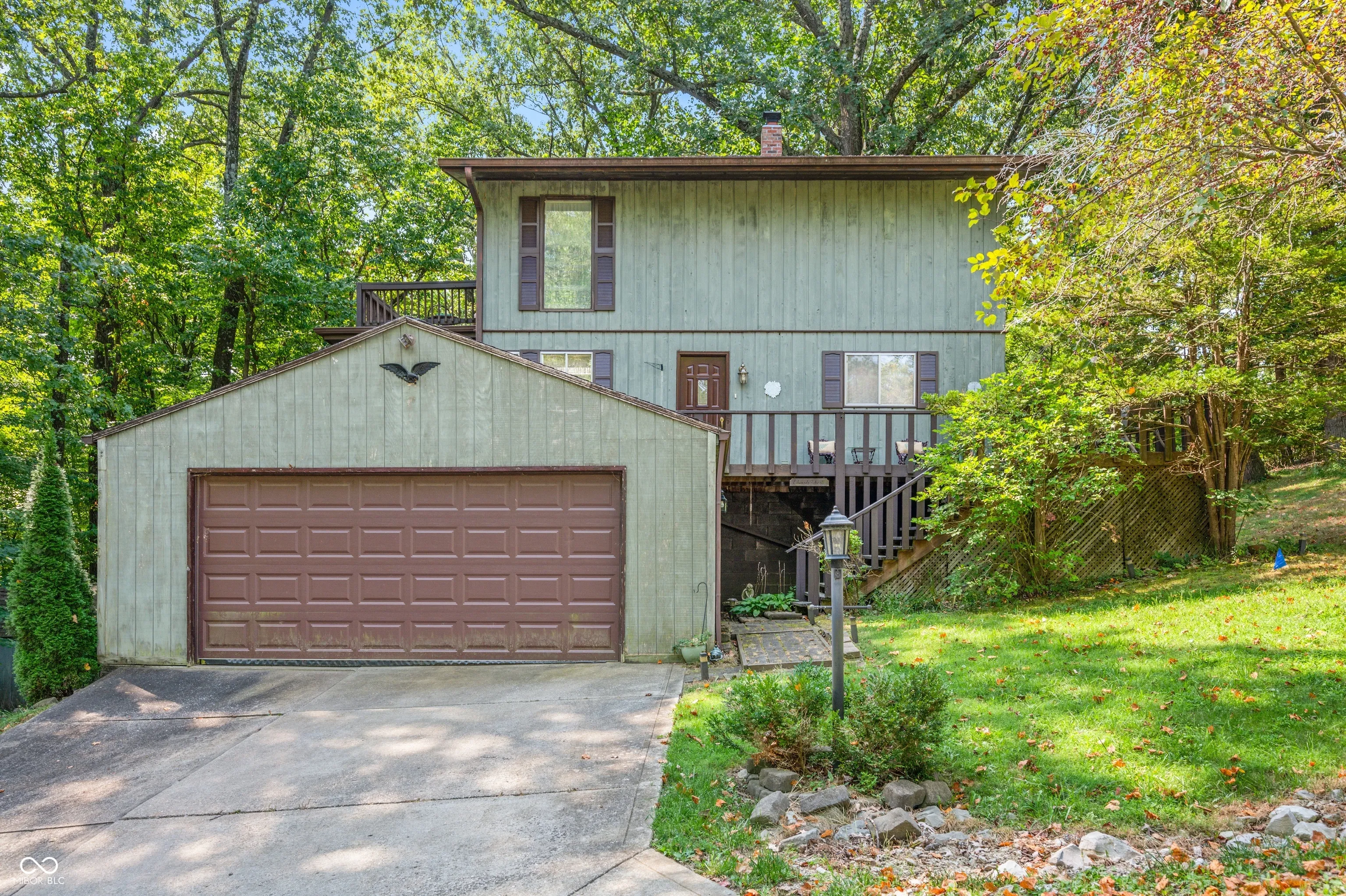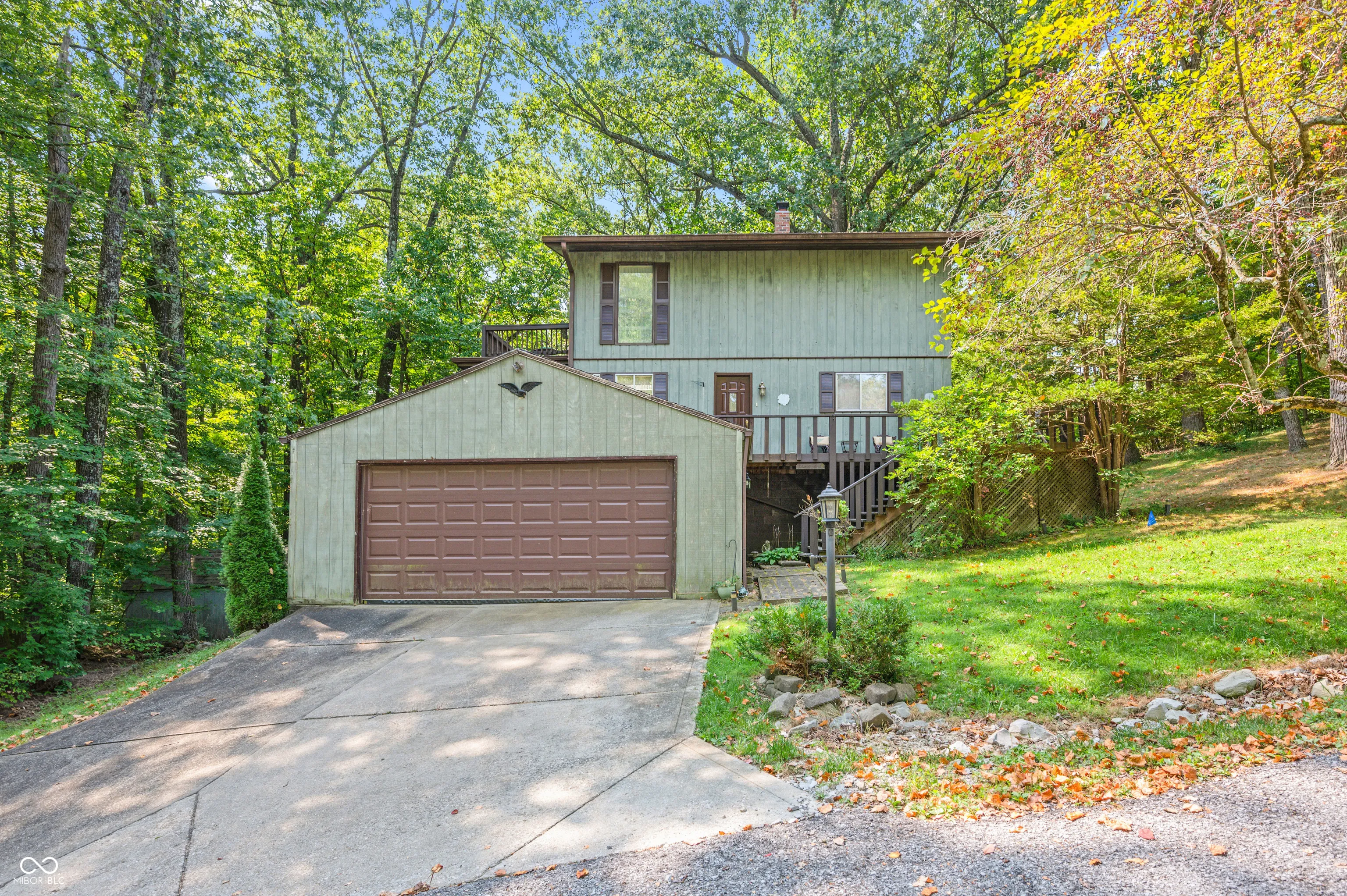 Welcome to Painted Hills Private Lake Community. This home is nestled in the woods on 2 lots totaling just over an acre. The property offers 4 bedrooms, with two of them on the main level. The enormous master bedroom features a private balcony and a gas fireplace. The main floor has a wrap around deck, an open Fireplace and so many windows to enjoy all of the wildlife. Painted Hills Community offer access to Two Lakes, Pool, Clubhouse/Restaurant, Pickle Ball Courts, Dog Park, Playground and so much more! Cedar Creek is just minutes away! Close to I-69 for easy commute to Bloomington or Indy.