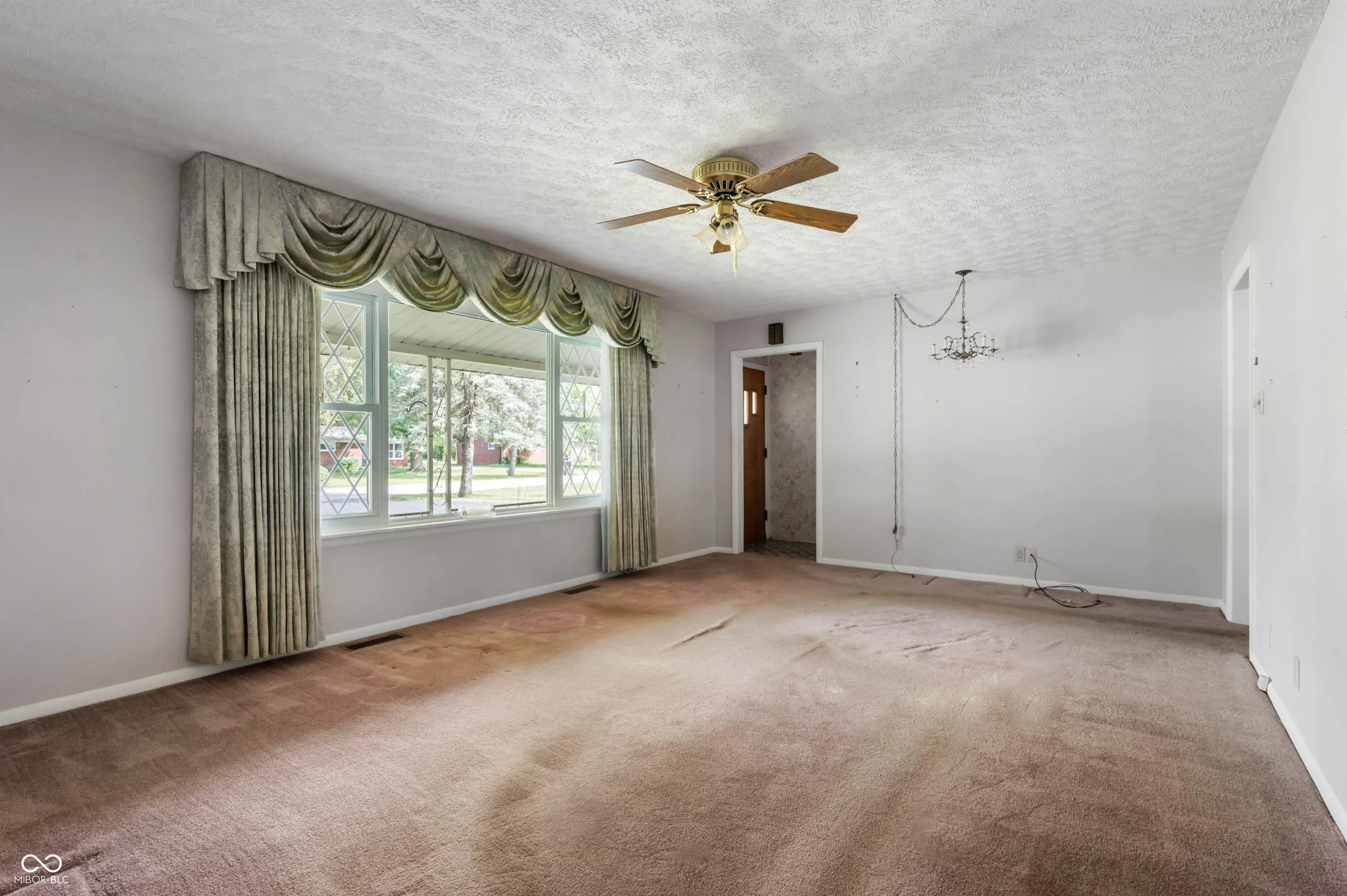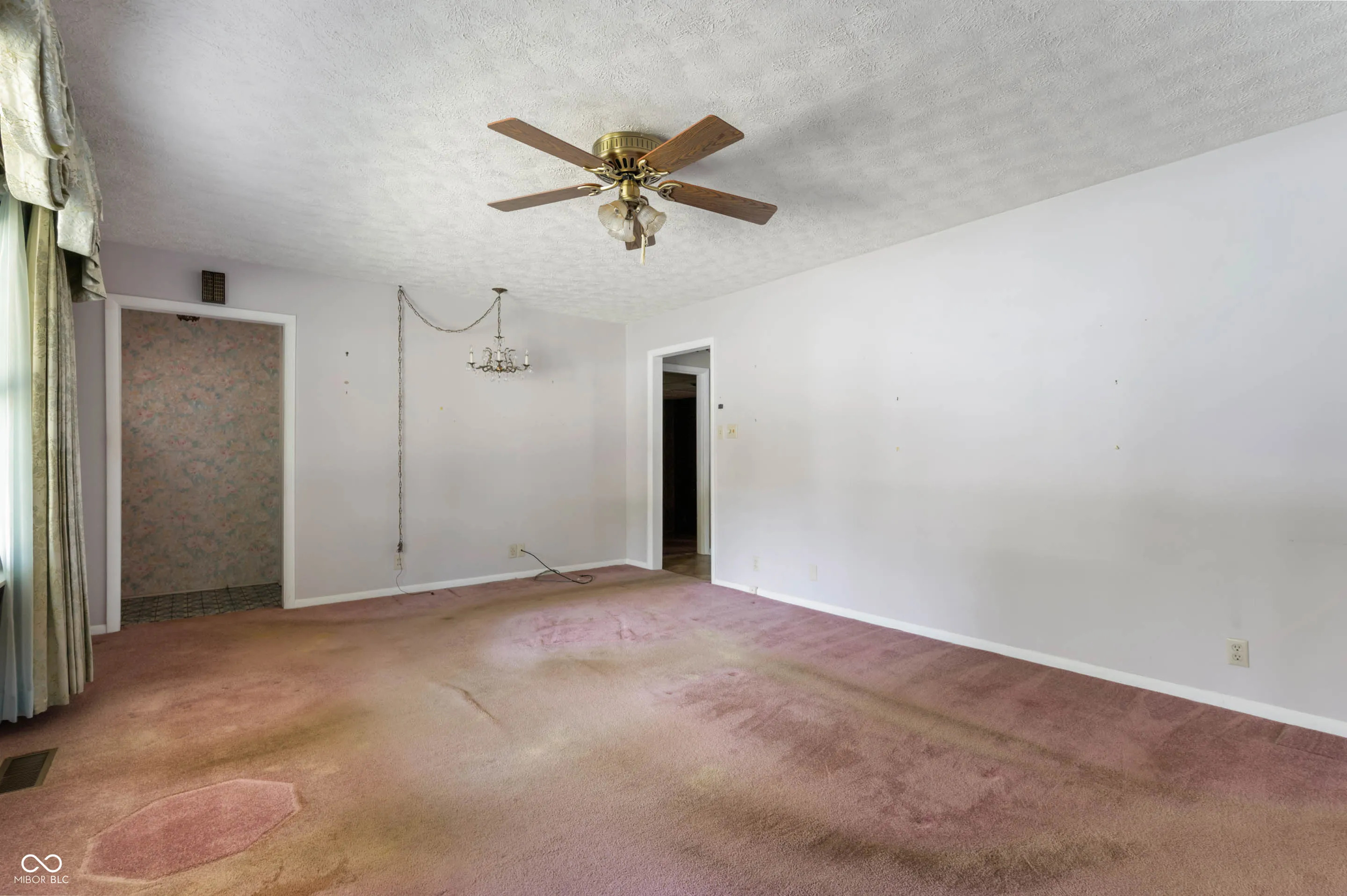 This 3-bedroom, 1.5-bathroom home is ready for your personal touch! It features both a living room and family room, plus a sunroom perfect for relaxing. The kitchen/dining combo with tile flooring includes a refrigerator, microwave and electric stove. The primary bedroom offers a large bonus room that can be used as a walk-in closet, sitting area, or more. The primary bathroom is equipped with a support bar and built-in shower seat for added convenience. A convenient laundry room with an attached half bath includes a washer and dryer. Outside,is a handy storage shed. While it needs a little love, this home is a fantastic opportunity to create your perfect space!