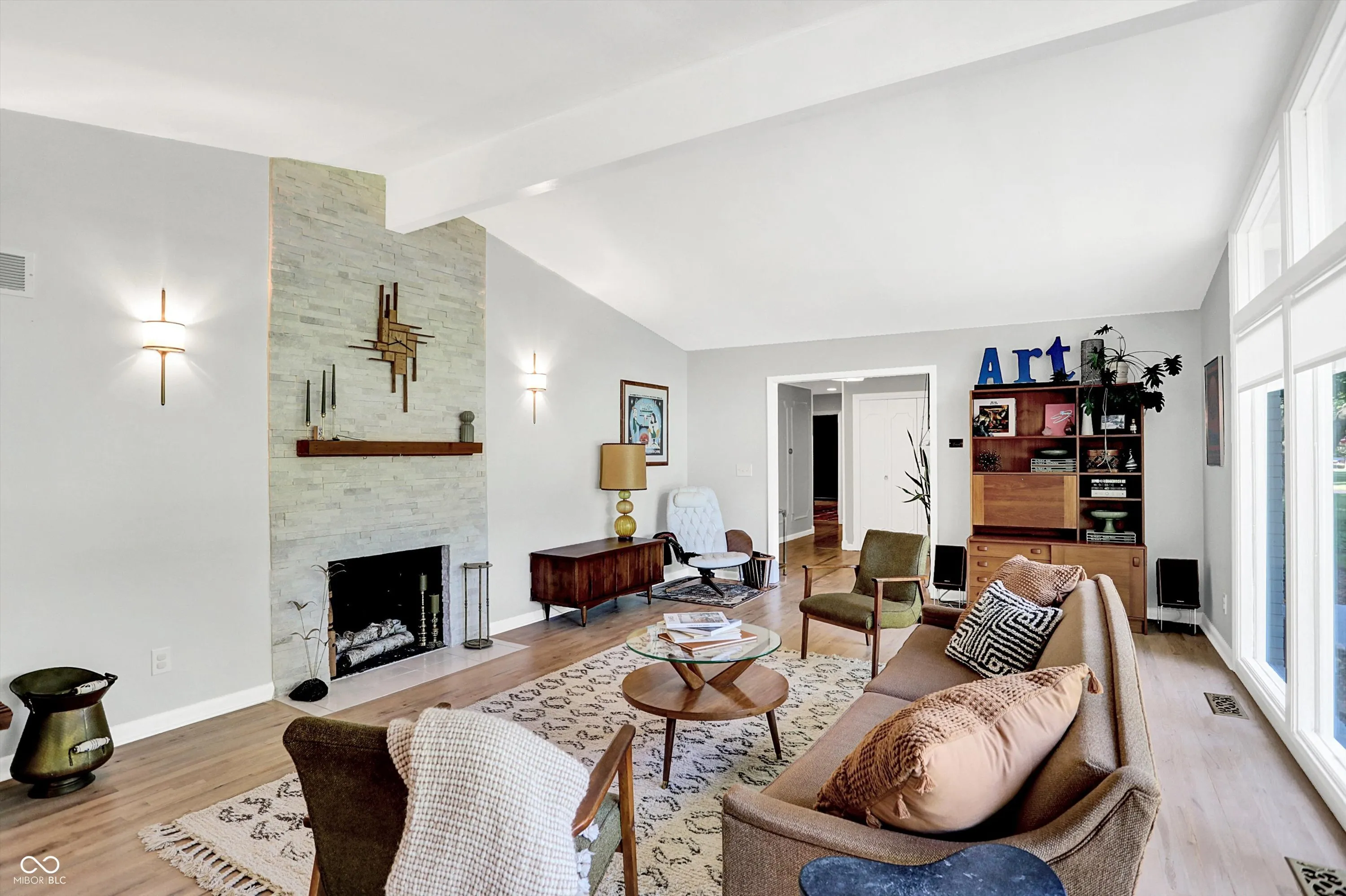 Discover this remarkable mid-century modern ranch home, designed by world-renowned architect, Avriel Shull, located in the desirable Spring Mill Estates. This stunning residence features gigantic windows that invite abundant natural light, enhancing the bright and airy atmosphere. Boasting three spacious bedrooms and three bathrooms, the open floor plan offers versatile living spaces ideal for entertaining. The kitchen, with its inviting eat-in island has an adjacent formal dining room. The charming three seasons sunroom is the perfect place for any plant parent. An impressive, oversized lot and an attached rear-load, two-car garage with a workshop complete this captivating property.