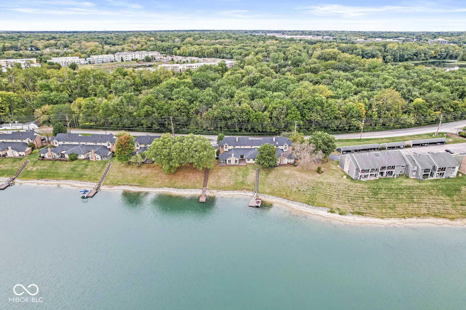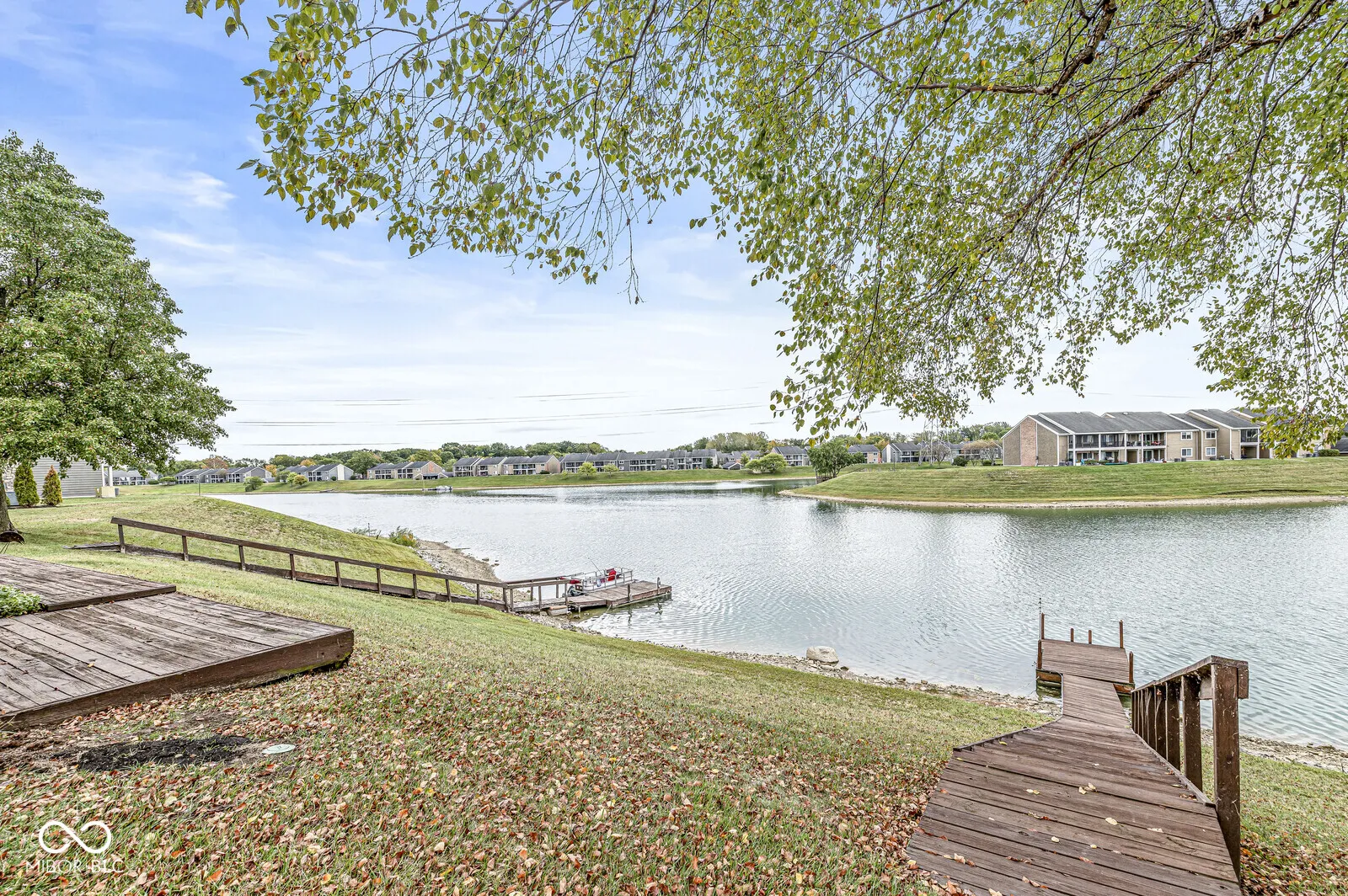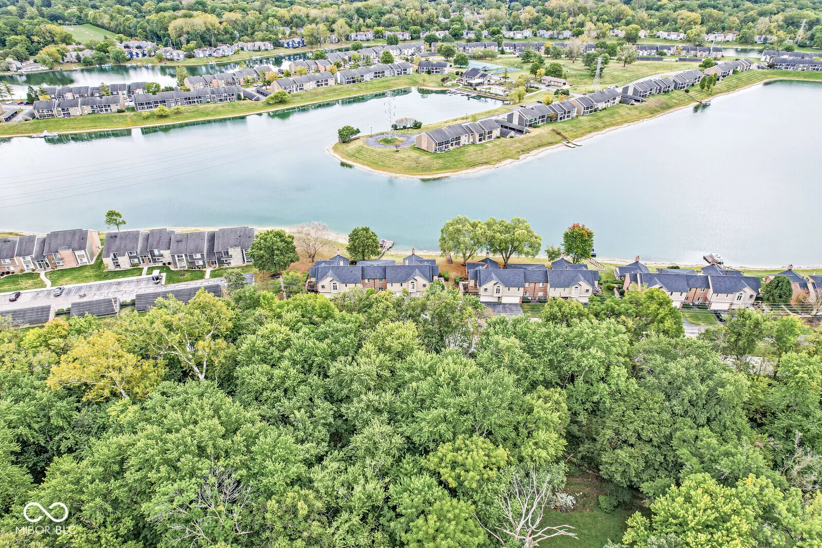 Experience waterfront living at its finest in this charming ranch-style condo located in the coveted North Shore community. Beautifully updated 2-bedroom, 2-bathroom home with 1524 SQFT offers seamless single-level living with a wraparound deck and large screened-in porch. Freshly painted with new luxury vinyl plank flooring and carpet creates a bright and inviting atmosphere throughout. Spacious family room boasts stunning lake views, cathedral ceilings and gas fireplace. Open-concept kitchen and dining area make entertaining a breeze. Large primary suite overlooks the lake and features a walk-in closet and bath with double vanity and shower. The split floor plan ensures privacy for family or guests. Convenient main level laundry and 2-car garage provide ample storage. New mechanicals. Shared dock on Somerset Lake – ideal for swimming, electric pontoon boats and stand-up paddle boards. Located just moments from Keystone at the Crossing, top-notch restaurants, upscale shopping, and 465, this lakeside condo offers a serene, low-maintenance lifestyle with spectacular views.