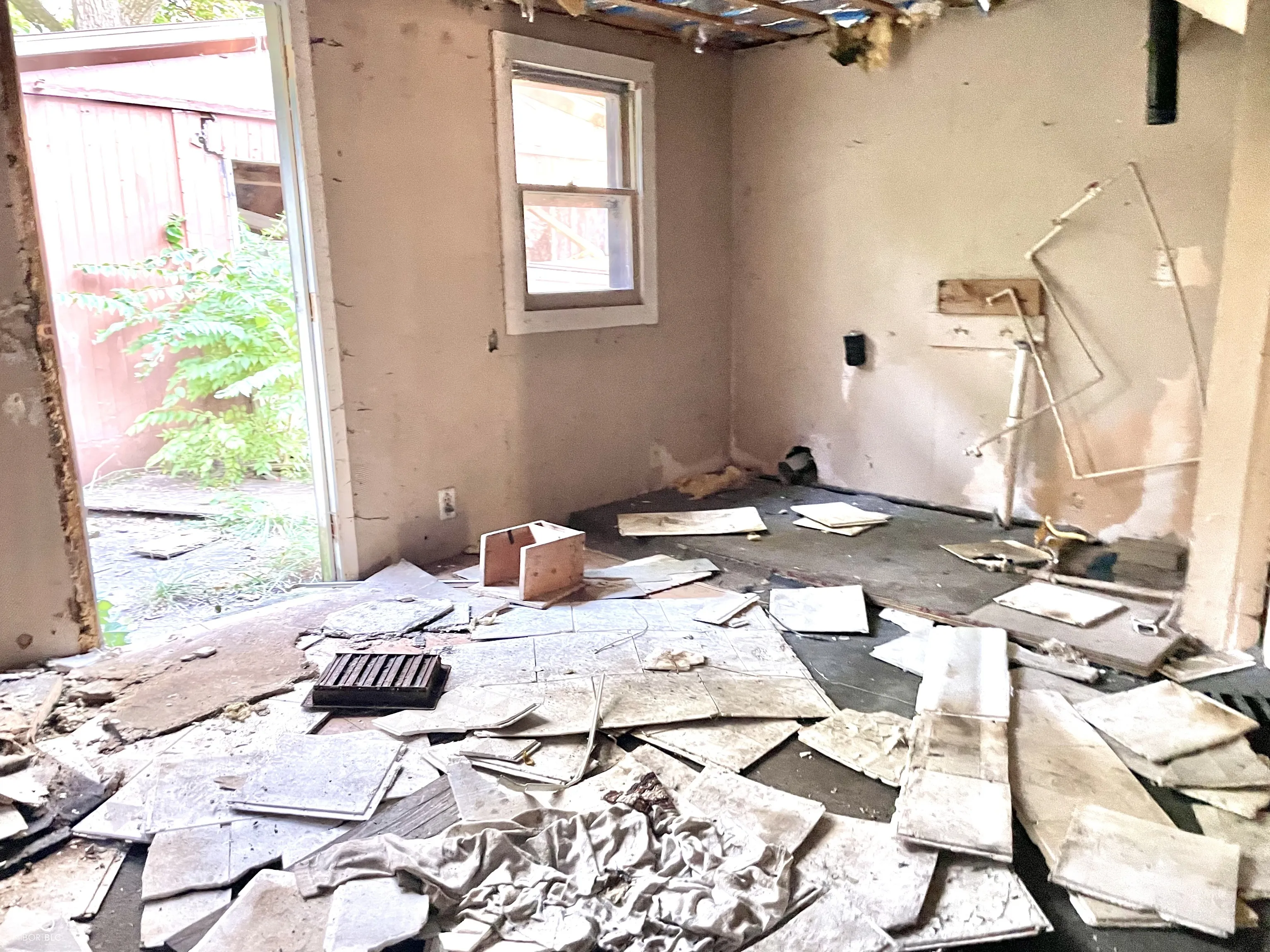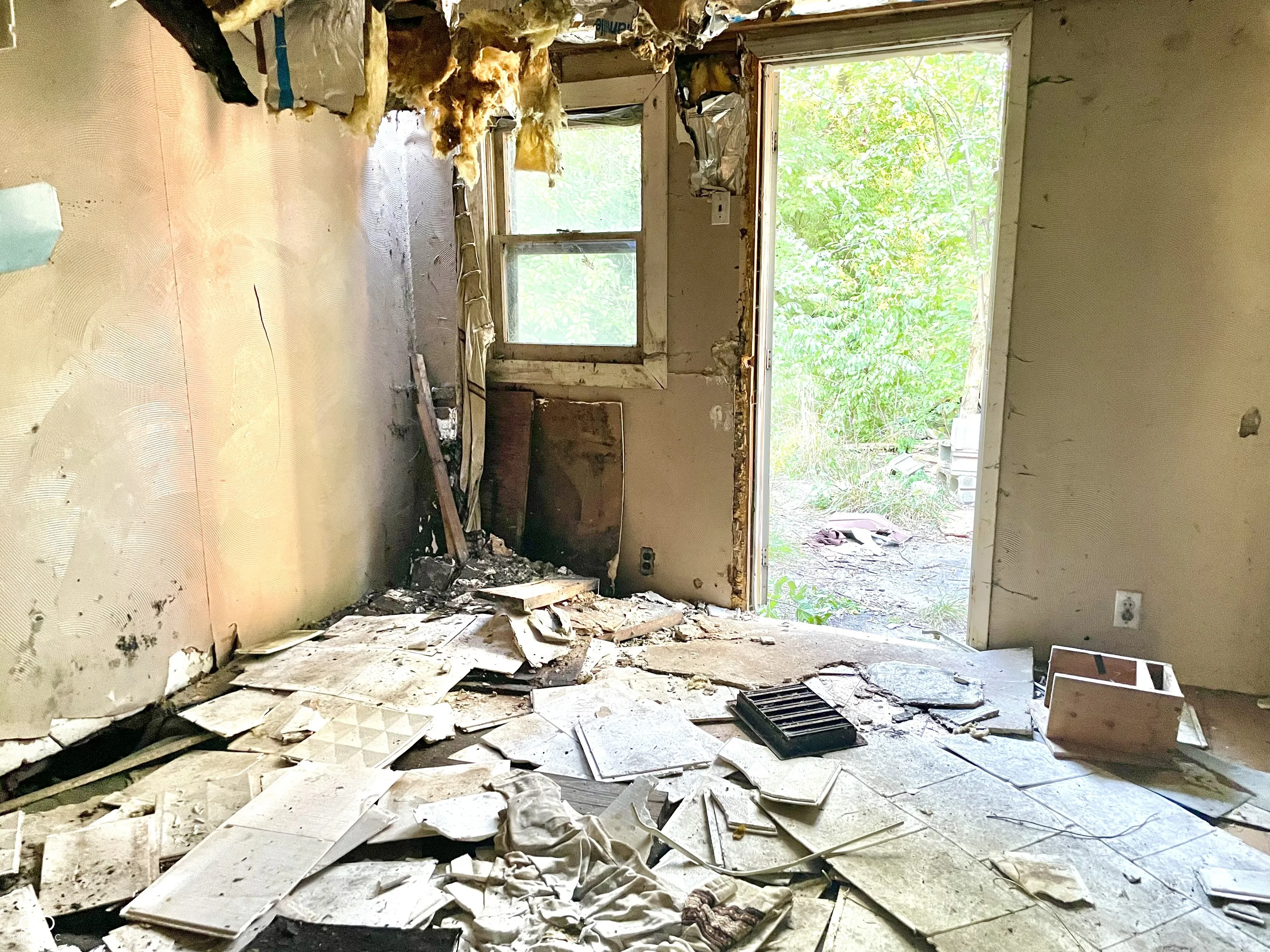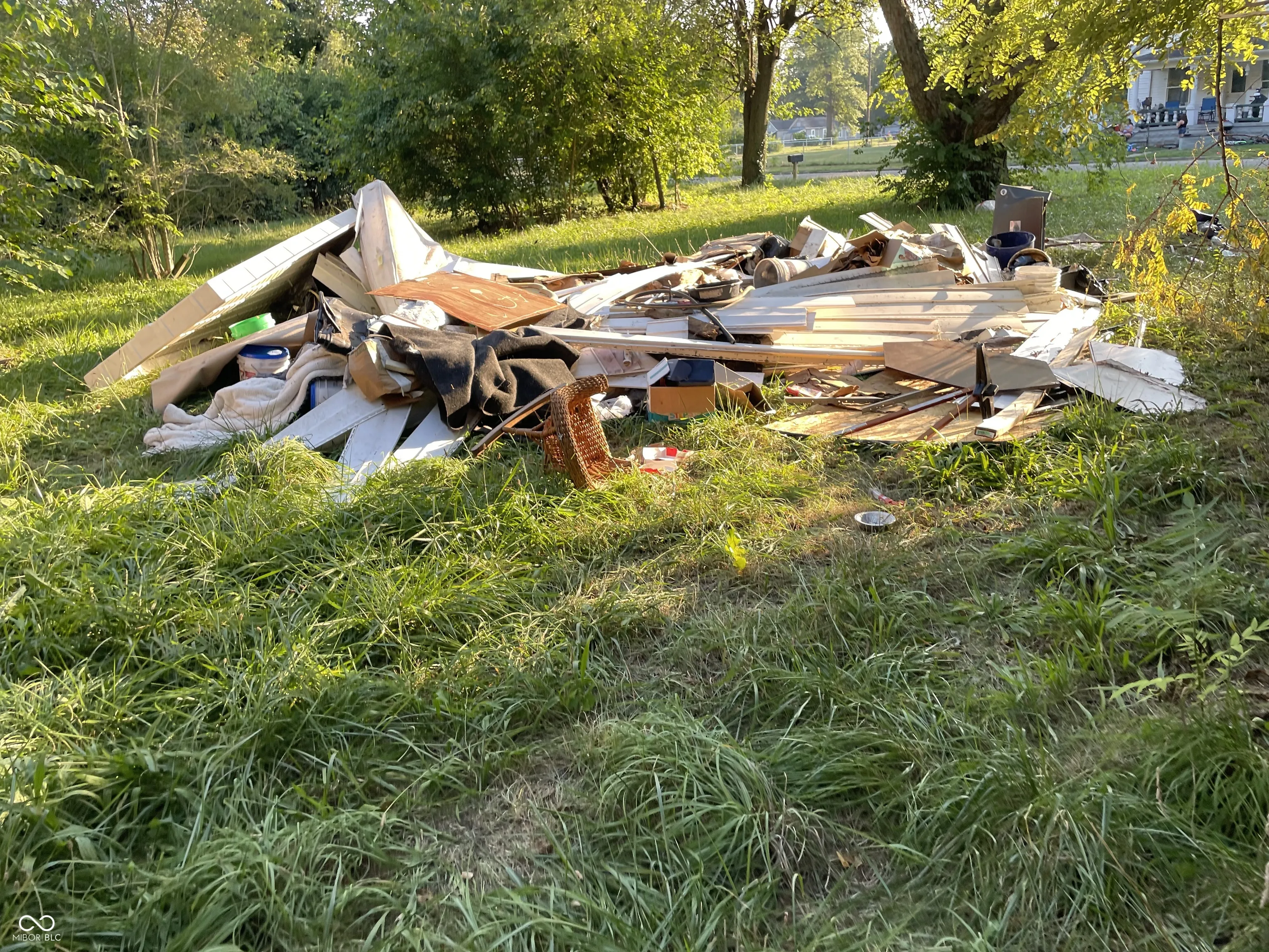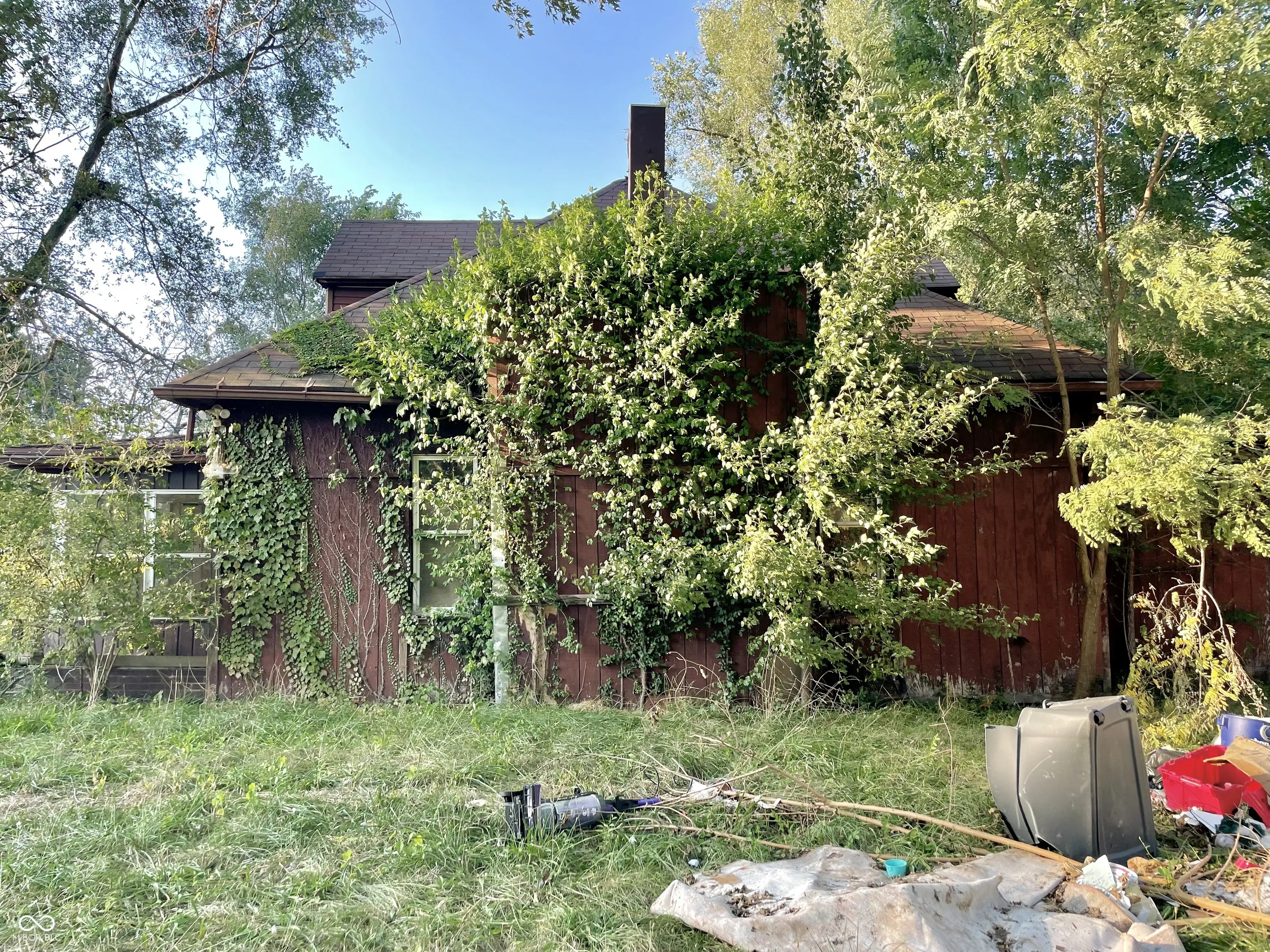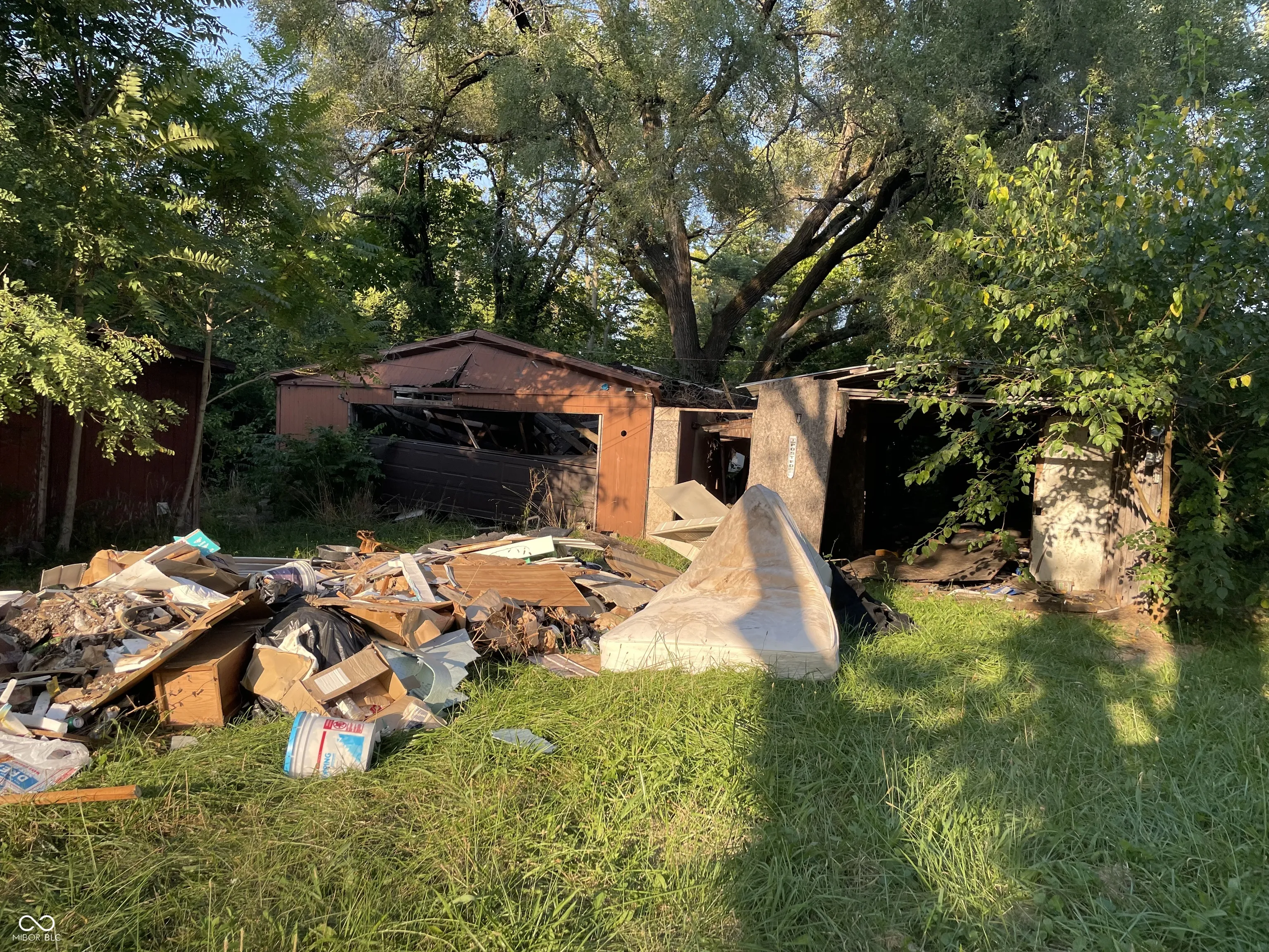 Large wooded Lot with 2-car detached Garage, 1-car detached Garage/Workshop, Shed, enclosed Porch, and open Patio. Property needs full renovation but creates huge upside. 2 story home with large Rooms. Spacious Great Room has Dining Area, brick wood-burning Fireplace. Unfinished Basement presents extra Storage Area. This is a must see! Double Lot