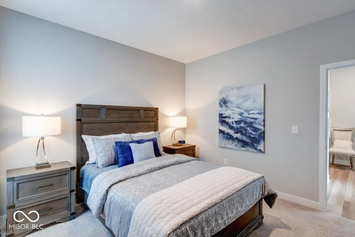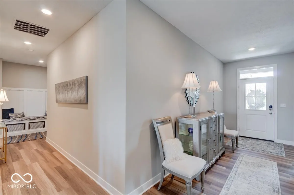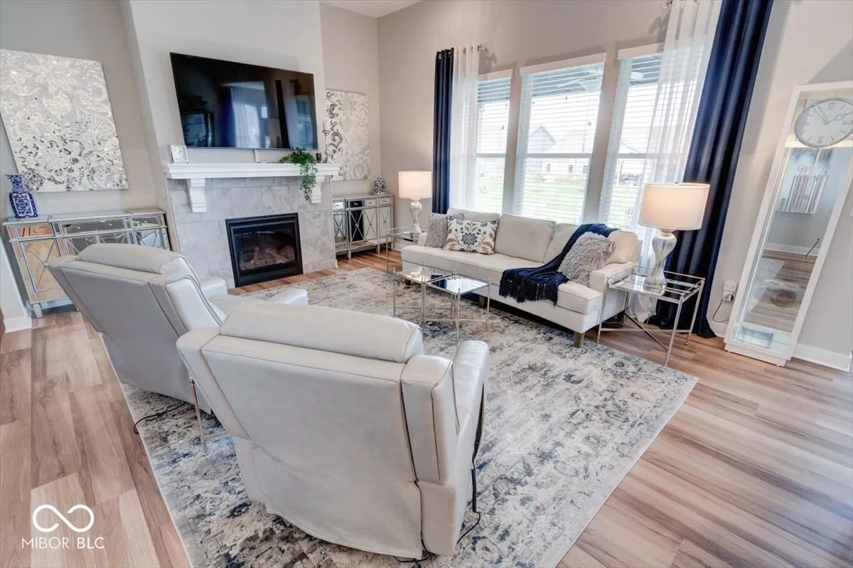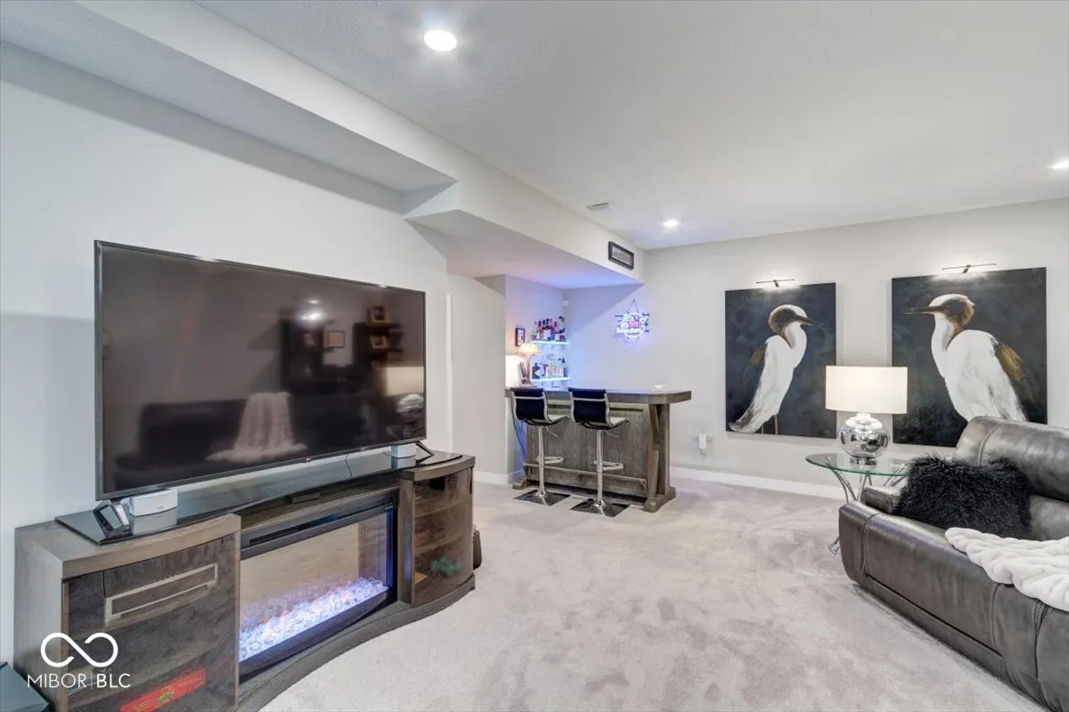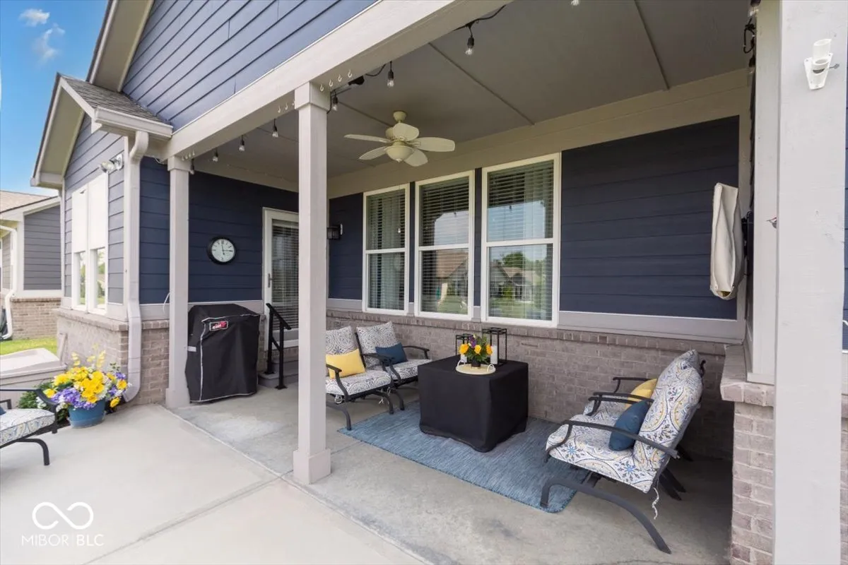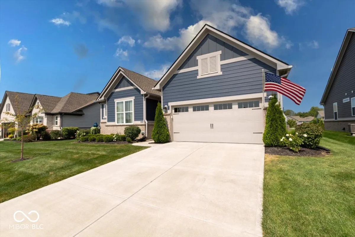 Welcome to this meticulously cared-for home with a bright, open-concept layout showcasing 11′ raised ceilings, a gourmet kitchen with stainless steel appliances, a gas range, an oversized center island with quartz countertops, and family organizer built-ins. The main floor offers three spacious bedrooms plus a finished basement with all of the extra storage space you could need OR use the space to add a 4th bedroom (existing egress window!). Enjoy outdoor living with a front pond view or enjoy quiet evenings on the covered patio and park your vehicles in the spacious extra deep garage with room for all of your toys. This smart home is equipped with the latest technology, offering activation and support by Amazon and voice control by Alexa. Located in a golf-cart-friendly neighborhood, you can easily access the Pebble Brook Golf Course or explore nearby Morse Lake, shopping, and downtown Noblesville. Optional membership to Pebble Brook Club includes access to a 36-hole golf course, with exciting updates for 2024 such as a 4-6 bay golf simulator and a renovated restaurant and bar. This home combines luxury, convenience, and a prime location in the award-winning Noblesville School District. All of this AND an assumable loan at 2.65%!!