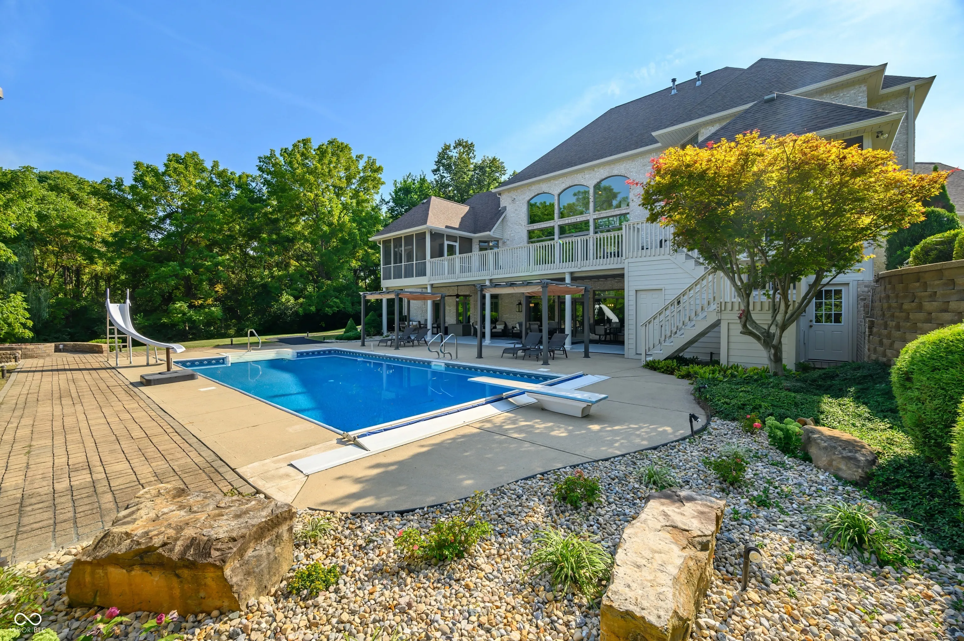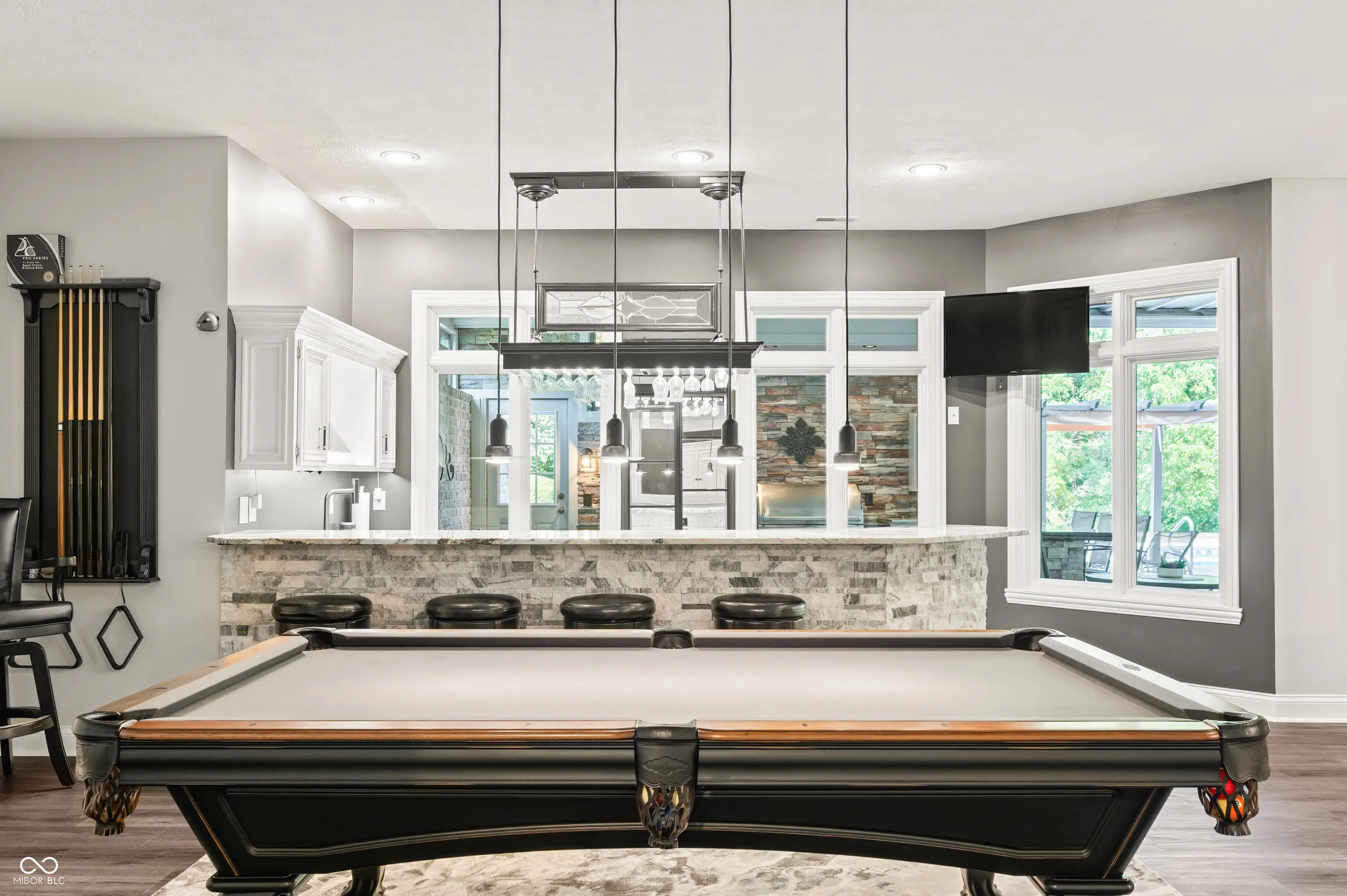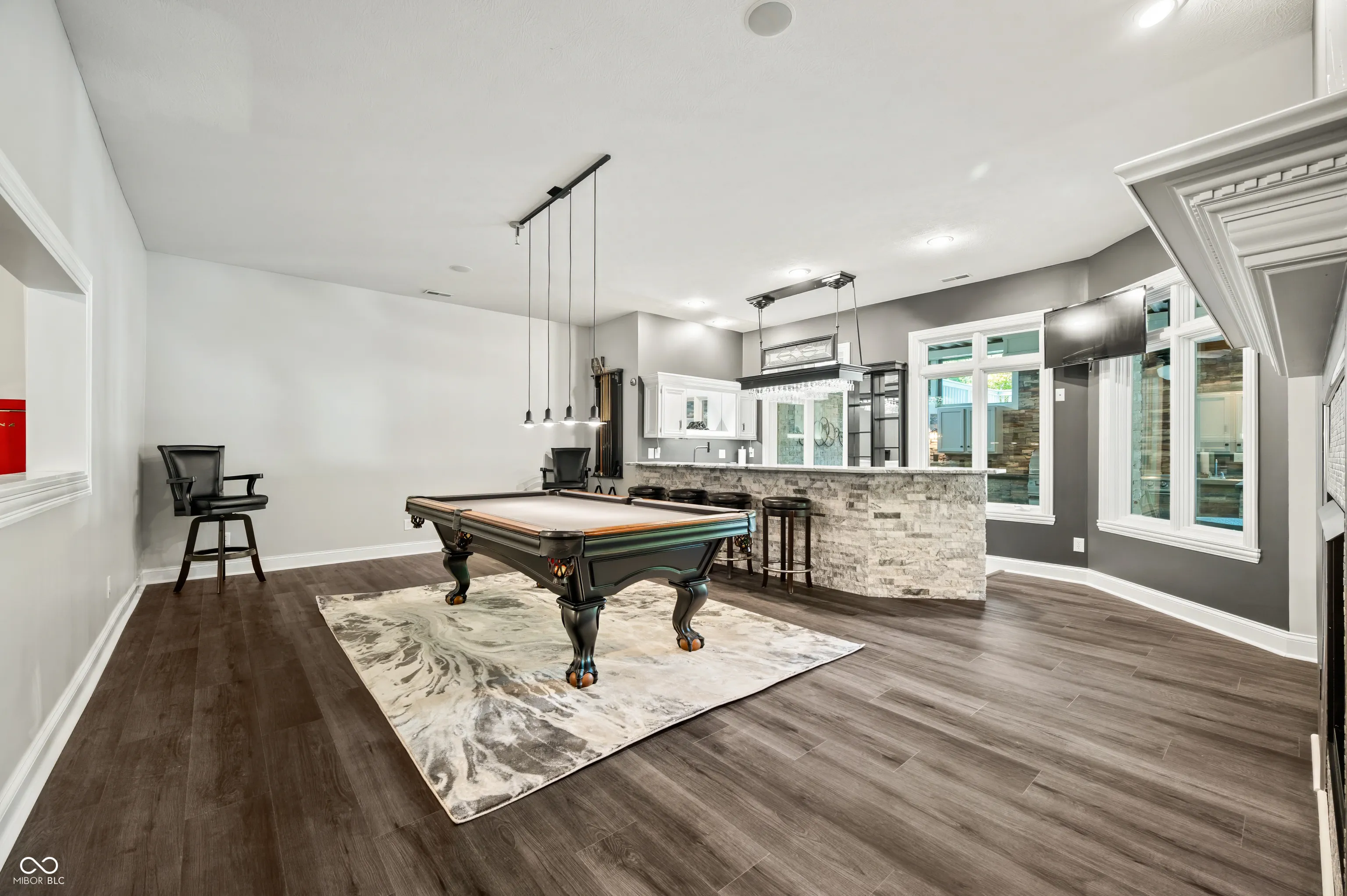 The next best thing to new construction! This remarkable home has been totally & completely updated! To begin, the main level offers stunning Carrara porcelain tile, Hardwoods, and Pergo flooring, brand new top of the line appliances, Dolomite, granite & quartz throughout, Nichols cabinets, double sided fireplace, fresh paint and all new fixtures. You will love the heated floors & views in the master suite bathroom along with direct access to your private screened in porch. The upstairs offers a large open loft space, 2 additional bedrooms with a Jack & Jill bath. The entertainment space the basement and pool area offer is unbeatable! Another double-sided fireplace, additional bedroom, home gym room, game room with pool table, second laundry, and a stunning kitchen/ wet bar. There’s more, the walk out basement leads to an amazing outside oasis. Heated Pool with brand new liner, endless lounging space, firepit with gas line, wooded privacy AND take a look at that outdoor kitchen! When I say this place has everything you could ever want, I mean it. There is even a large outbuilding with multiple garage bays and ample storage! Must see for yourself!
