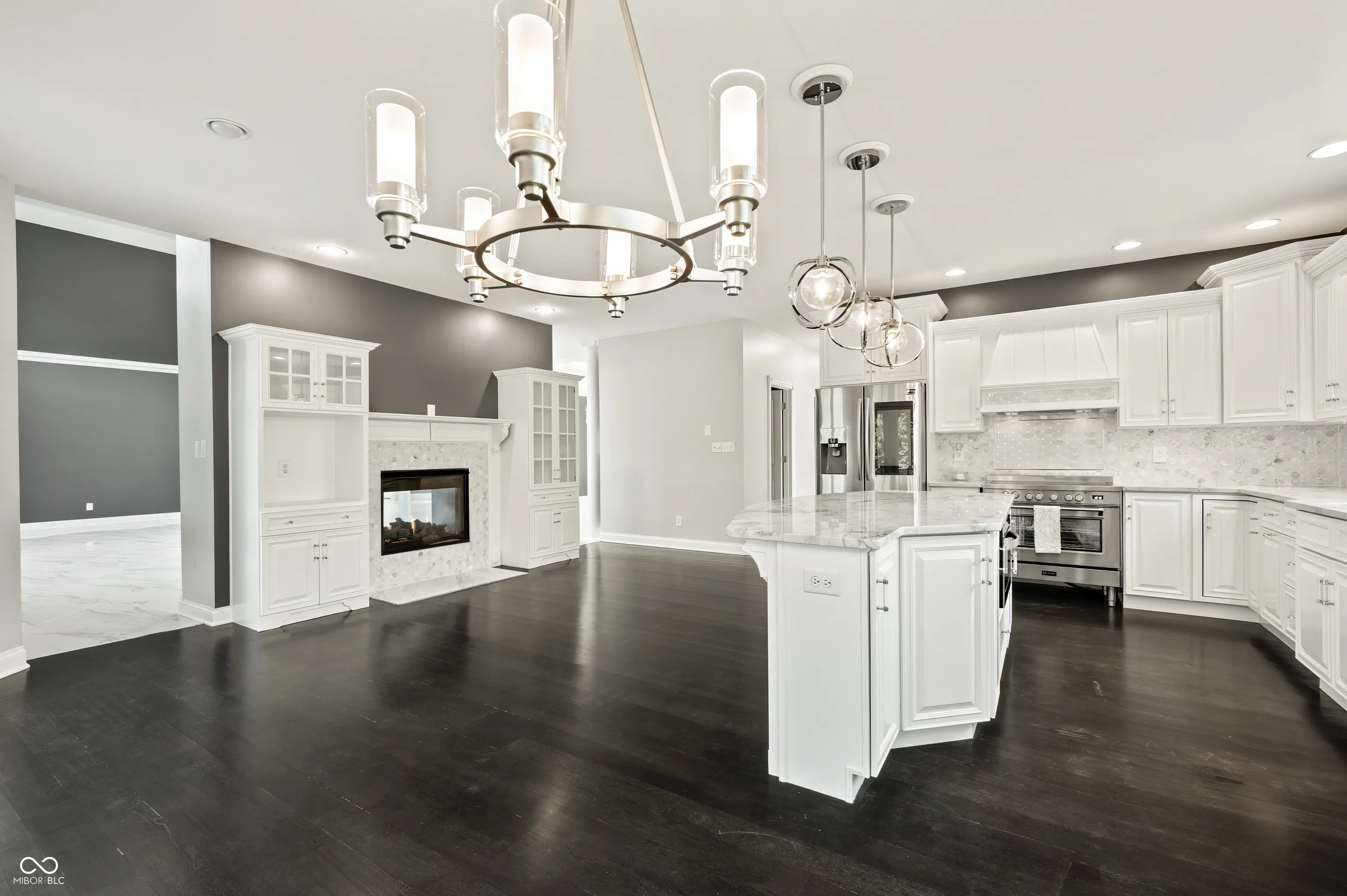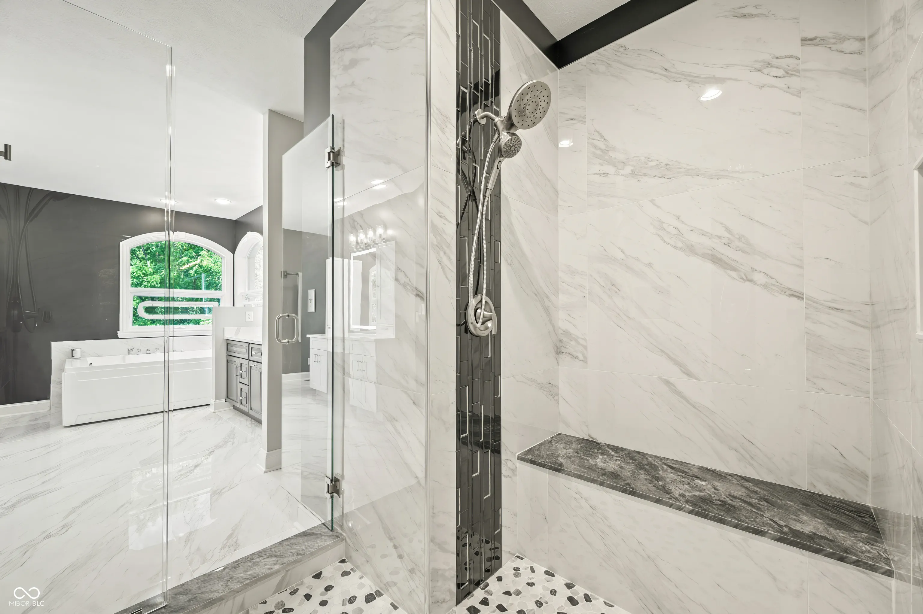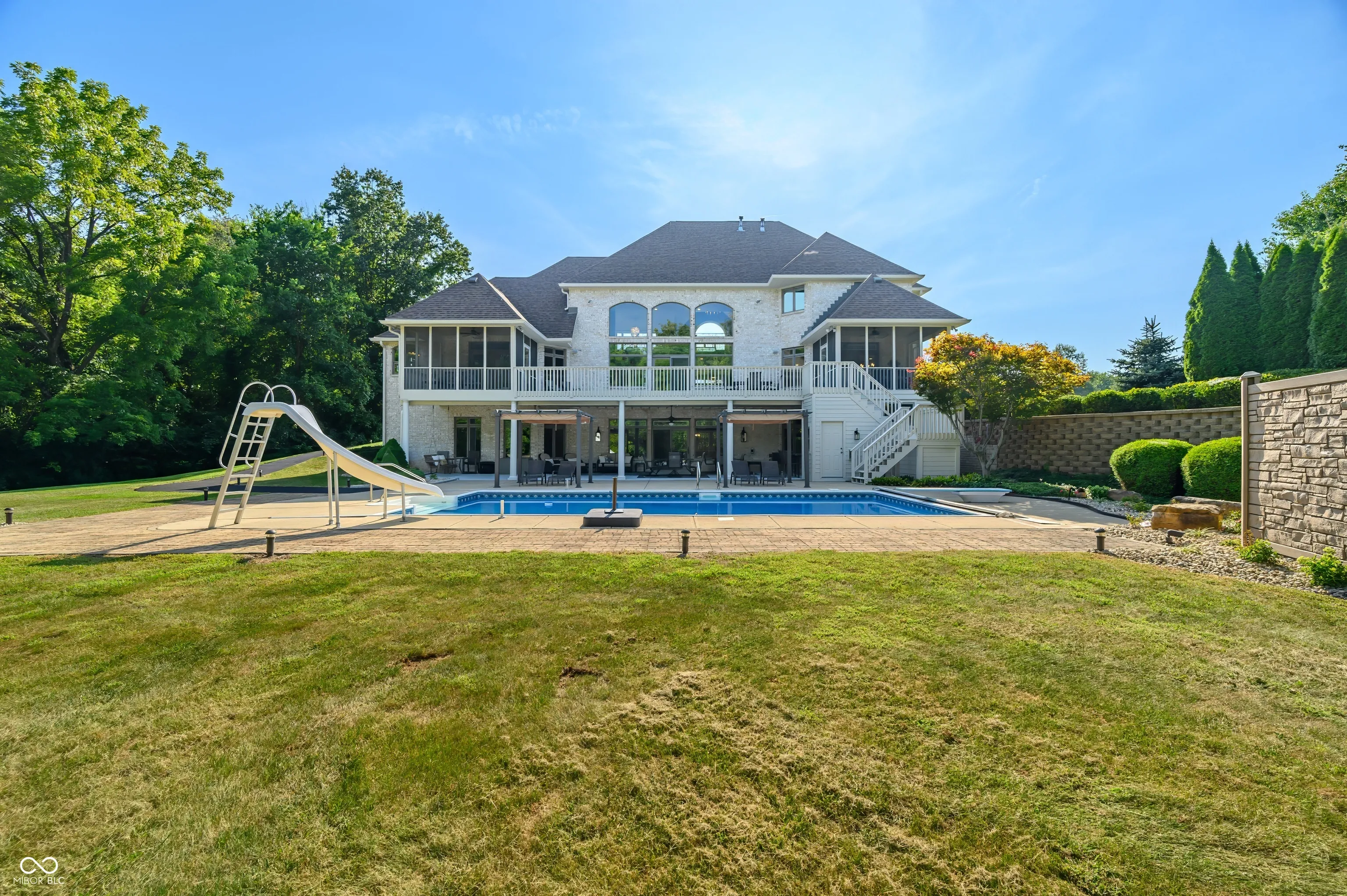 The next best thing to new construction! This remarkable home has been totally & completely updated! To begin, the main level offers stunning Carrara porcelain tile, Hardwoods, and Pergo flooring, brand new top of the line appliances, Dolomite, granite & quartz throughout, Nichols cabinets, double sided fireplace, fresh paint and all new fixtures. You will love the heated floors & views in the master suite bathroom along with direct access to your private screened in porch. The upstairs offers a large open loft space, 2 additional bedrooms with a Jack & Jill bath. The entertainment space the basement and pool area offer is unbeatable! Another double-sided fireplace, additional bedroom, home gym room, game room with pool table, second laundry, and a stunning kitchen/ wet bar. There’s more, the walk out basement leads to an amazing outside oasis. Heated Pool with brand new liner, endless lounging space, firepit with gas line, wooded privacy AND take a look at that outdoor kitchen! When I say this place has everything you could ever want, I mean it. There is even a large outbuilding with multiple garage bays and ample storage! Must see for yourself!