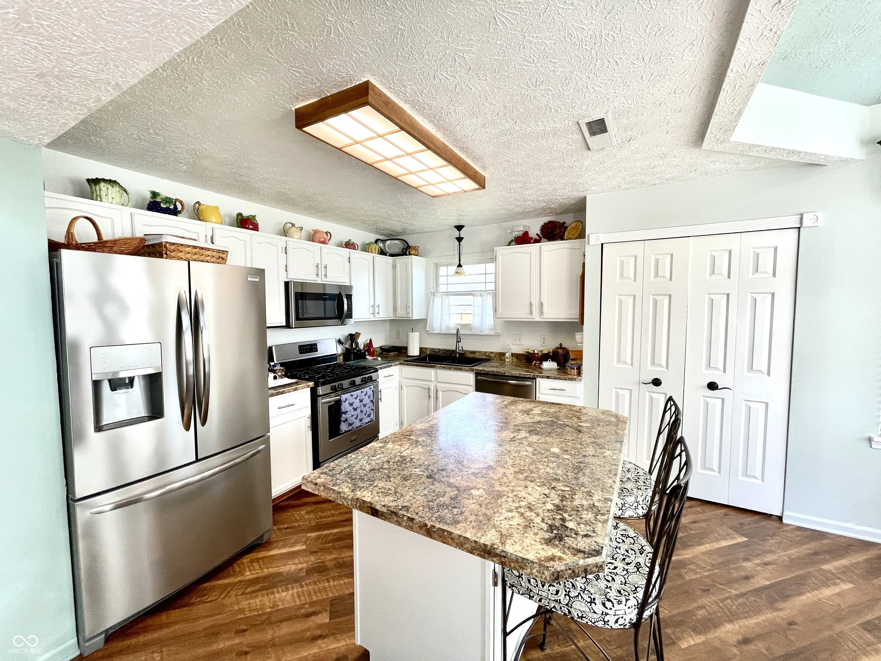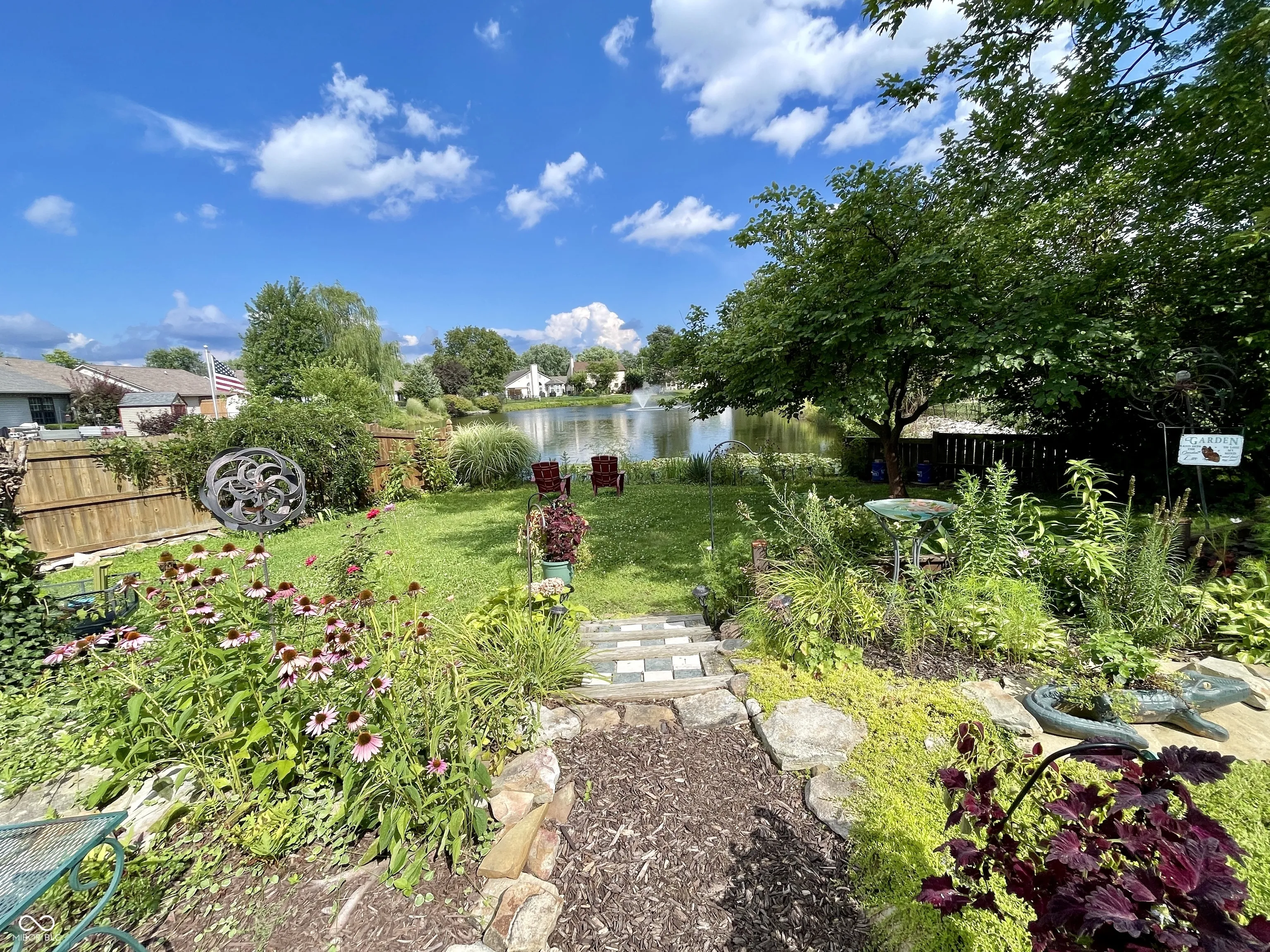 Beautiful move-in ready home w/flexible loft space. The backyard overlooks the pond & fountain and is landscaped with gorgeous flower beds and perennial flowers. New Trex back deck to enjoy this piece of paradise! Handy mini barn (Bedroom 3 is currently used as an office without a closet, but could access closet in hallway by adding a door to the backside of closet. Or upper loft could be enclosed for bedroom, already has a closet.) Spacious kitchen w/center island & all stainless steel appliances, pantry, and breakfast room opens to back patio. Great Room w/cozy gas fireplace. Lots of easy to clean luxury vinyl plank flooring throughout main level. Carpeting in bedrooms. Loads of great closet space and storage, pull down attic stairs, finished garage. Laundry room includes washer & dryer and has cabinets & shelves for storage. Must see this one! Clean & bright, well-maintained, move-in ready!