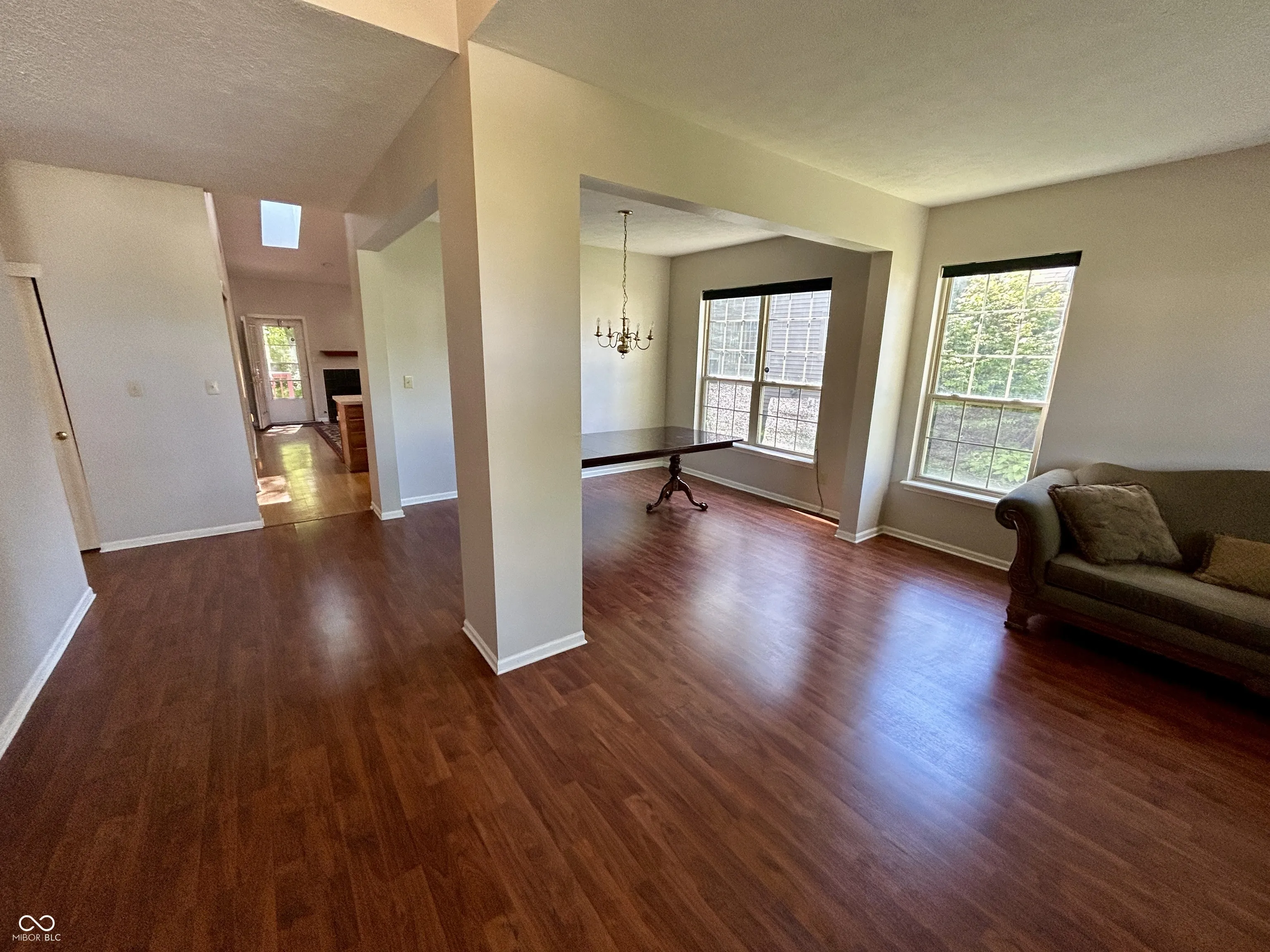 Amazing home for lease in Waterwood of Carmel! Walking distance from Central Park, Monon Center & Monon Trail. With quick access to highways and Carmel Arts & Design District, this location is incredibly convenient. The home has a wonderfully bright and airy feel to it with vaulted ceilings, lots of new windows and appealing paint colors. Multiple living areas allow for everyone in the home to have their own space and allow plenty of room for gatherings. Large kitchen and family room combo has vaulted ceilings and skylights. Primary suite offers massive walk-in closet, shower, tub and double vanities. 2nd & 3rd bedrooms have great closet space and are conveniently located near hallway full bathroom & laundry room. Freshly painted deck in backyard provides the ideal outdoor living space. Beautiful wooded backyard with trail to community pond provides the perfect setting for kids to play and nature enthusiasts to explore. This home truly has it all!