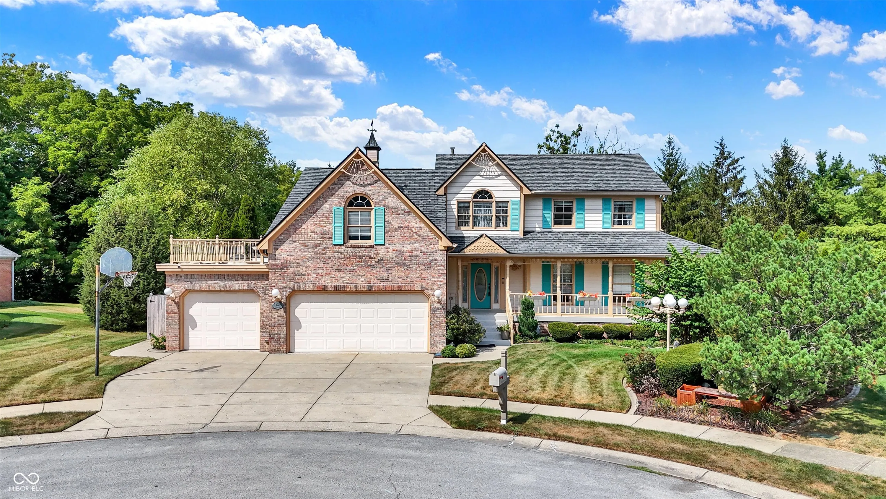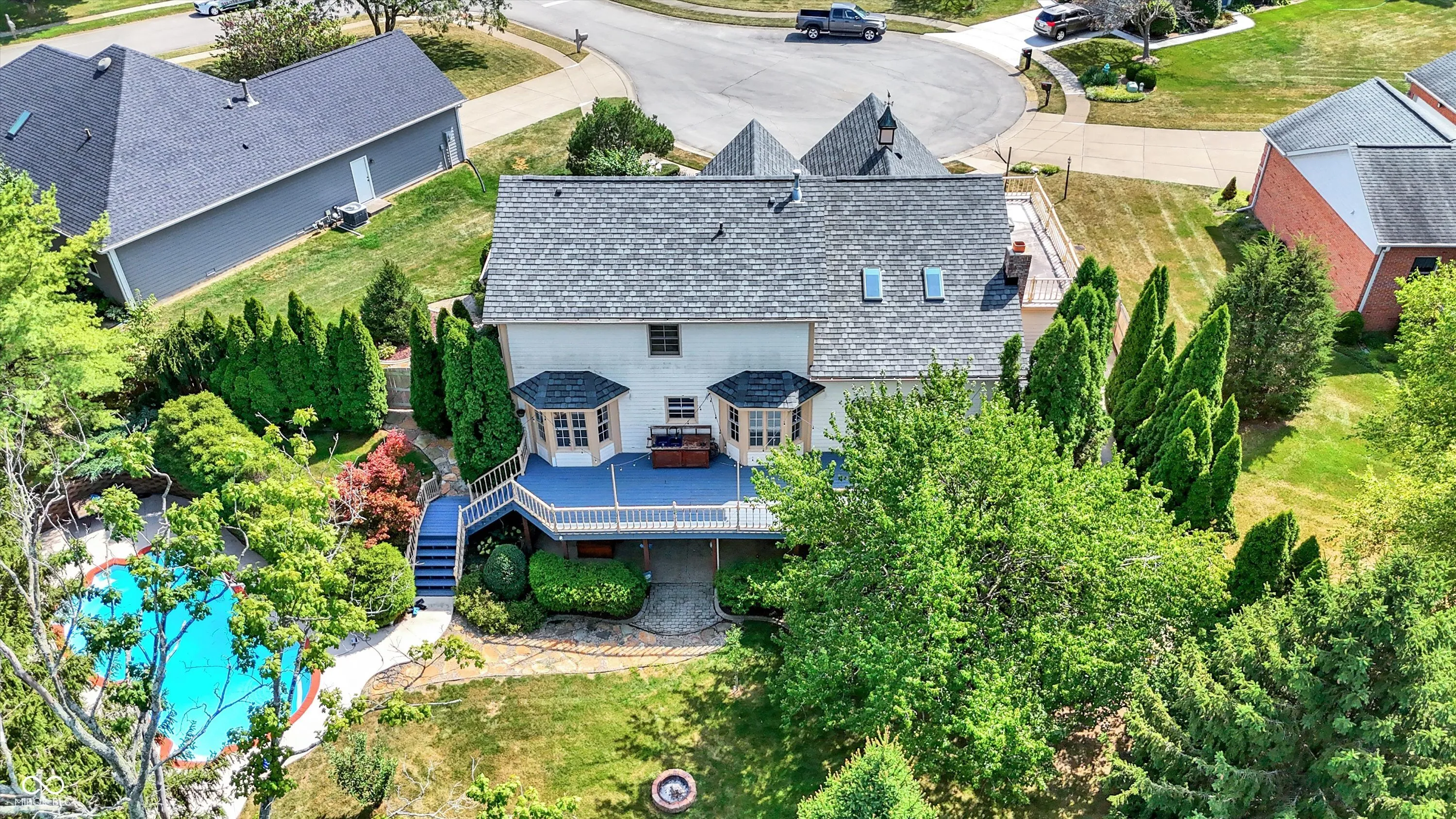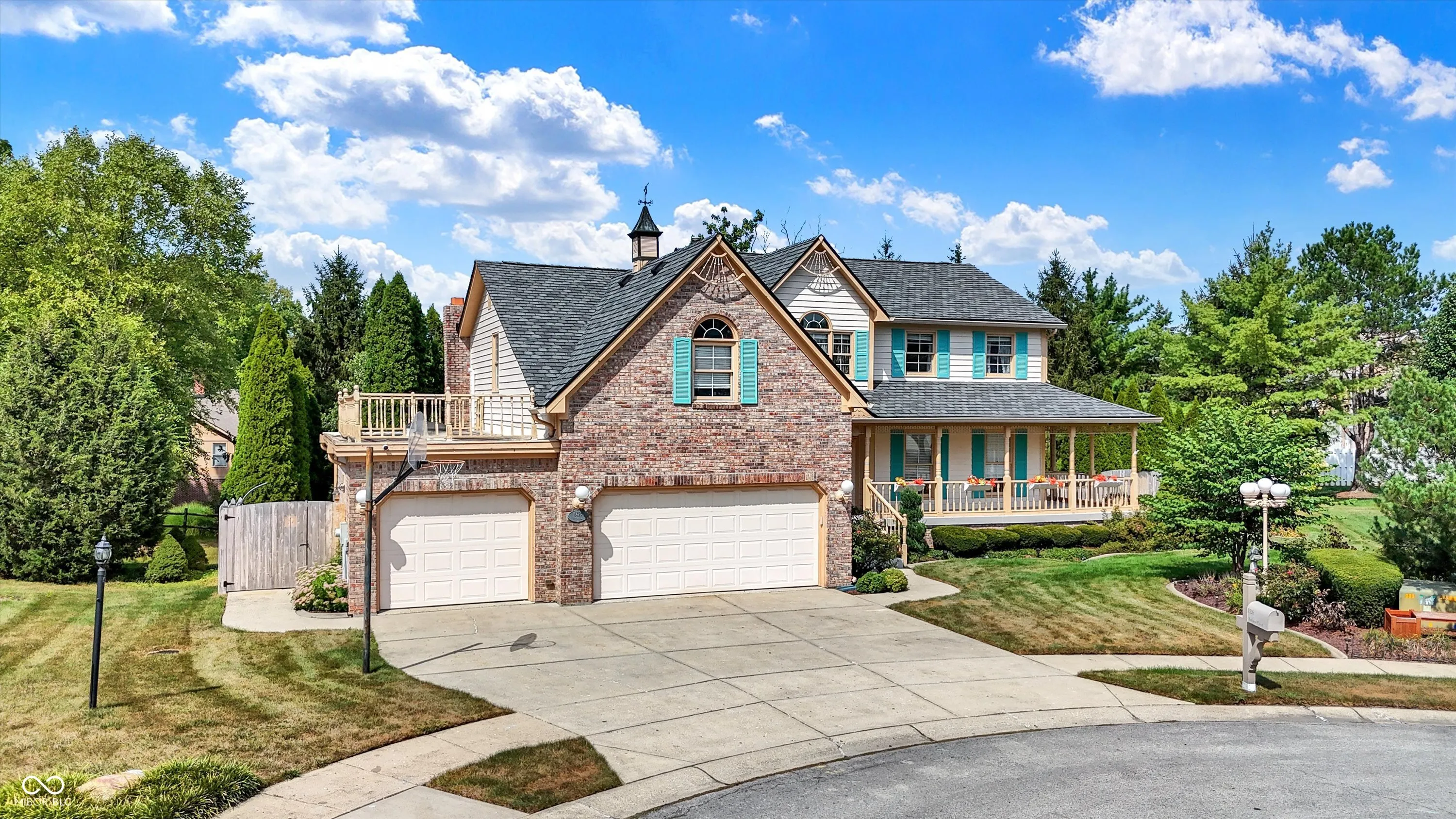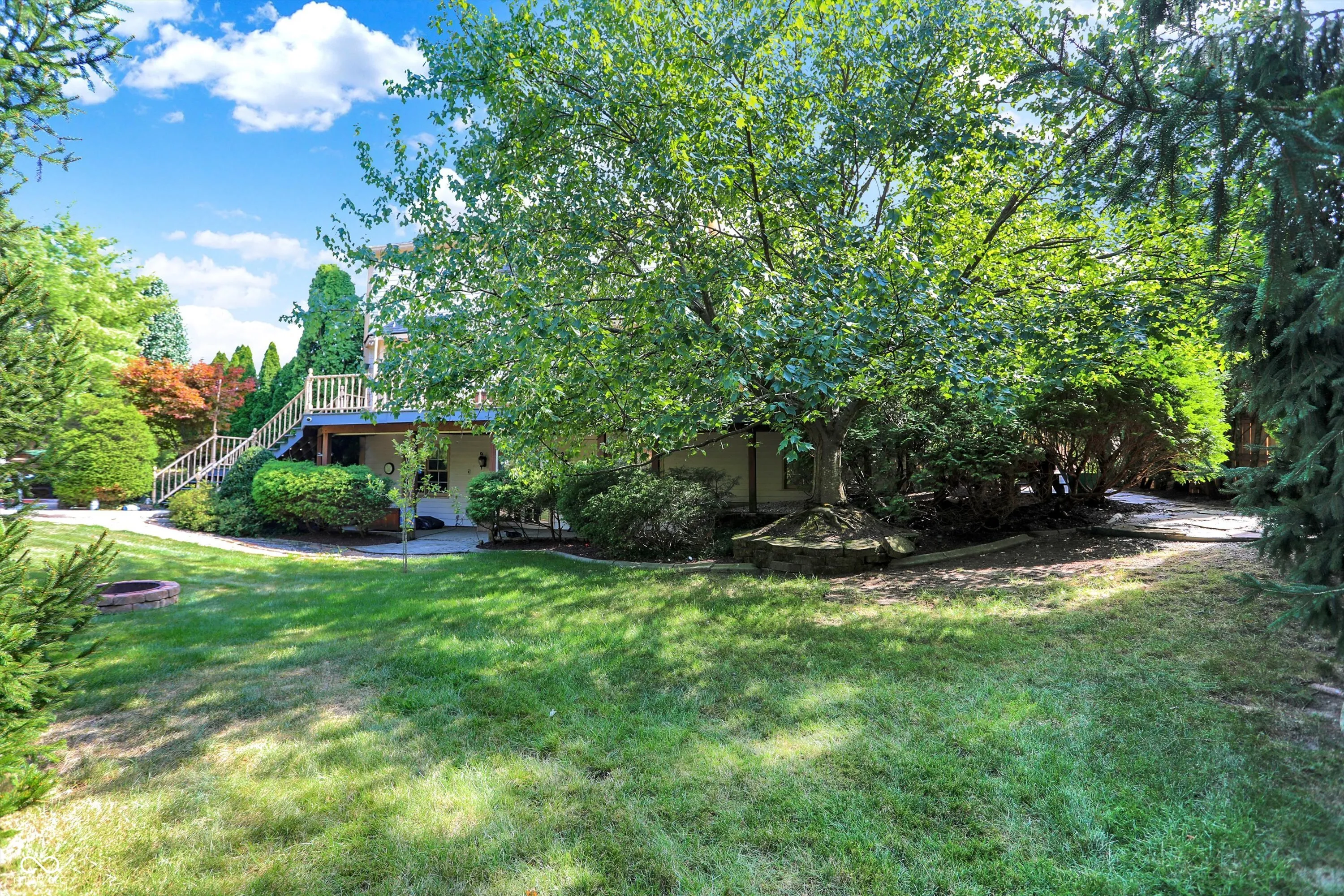 This stunning 3- story, 4/5 bedroom, 3.5 bath Victorian home is a true gem within the highly sought out Hamptons at Geist neighborhood. Mature landscaping abounds, with 35-year-old, 50 ft pine trees enclosing the expansive, fully fenced backyard, making into your own private oasis! The home boasts a gorgeous inground pool with a charming tiki hut for the ultimate in entertaining, as well as a 3-car garage with a 27 ft extended bay perfect for a boat or RV. The fully finished walk-out basement is a great space for hosting guests with a separate office/bedroom and bathroom with shower, a built-in pub-style bar, booth game table w/ built in benches, and direct access to the pool and backyard area. Situated on a quiet cul-de-sac, enjoy your cozy firepit out back, lounging on your huge upper deck, or have a peaceful read on your charming wrap-around front porch with swing. The interior features custom murals throughout the kitchen and separate formal dining room, as well as granite countertops, a built-in coffee bar, an oversized island great for family gatherings, and a wood-burning/gas fireplace in the living room. There is also a huge storage room in the basement, with built in shelves, perfect for holiday decorations. This gorgeous property has been twice featured in the IndyStar Magazine, Home & Garden section, as well as The Current, Christmas issue. Recent updates include a new roof in 2023, a new 96% efficient HVAC system with a UV light filter in 2018, and a remodeled master bathroom in 2016. Other updates include new carpet and paint in 2024, a new pool pump in 2024, and a new water heater with an expansion tank in 2024. Additionally, the home features a new cedar fence in 2023, a professionally sealed garage floor in 2023, a sump pump in 2022, and maintenance items such as creosote cleaning for the fireplace and a new over-range microwave in 2023. This unique property truly offers luxurious living with modern amenities and thoughtful details throughout