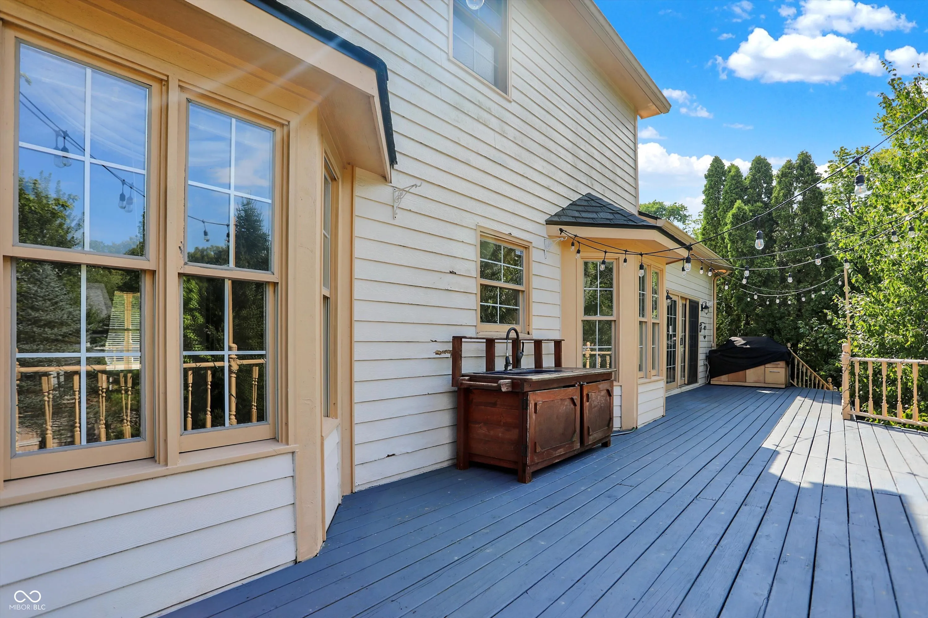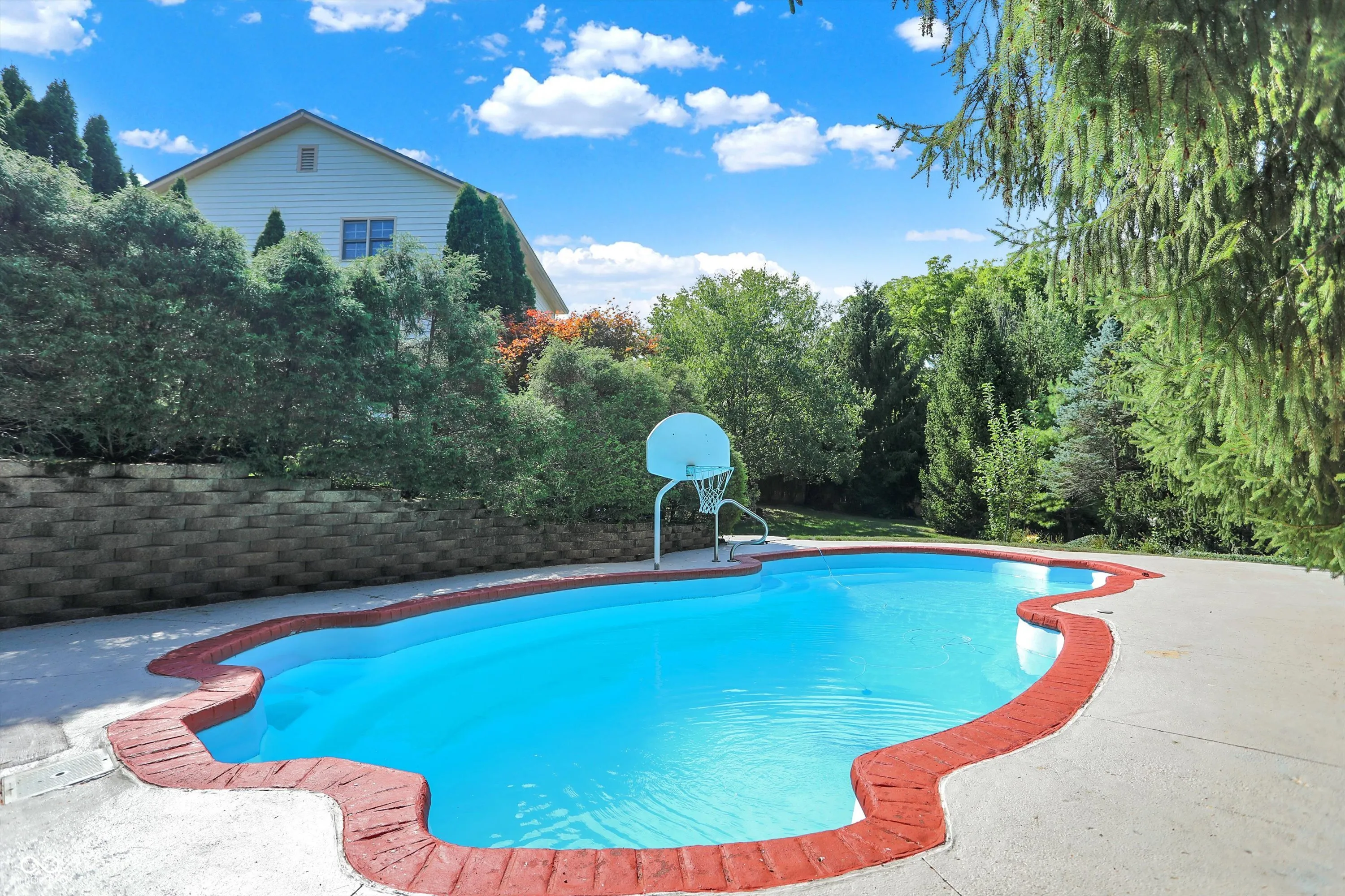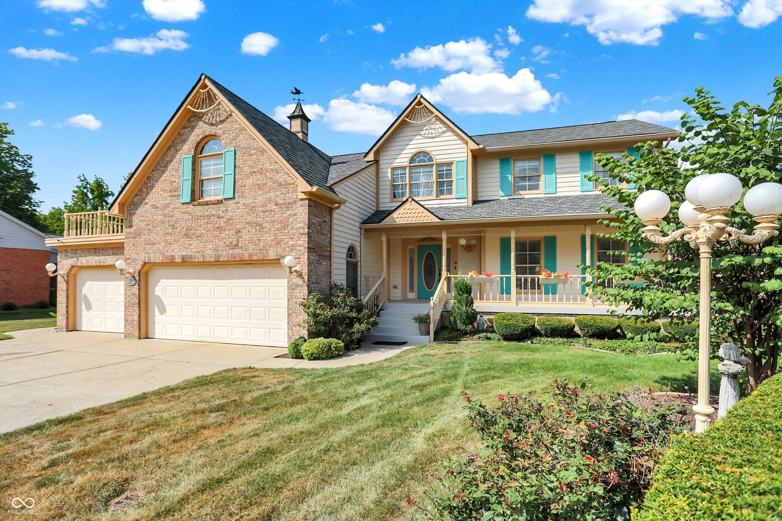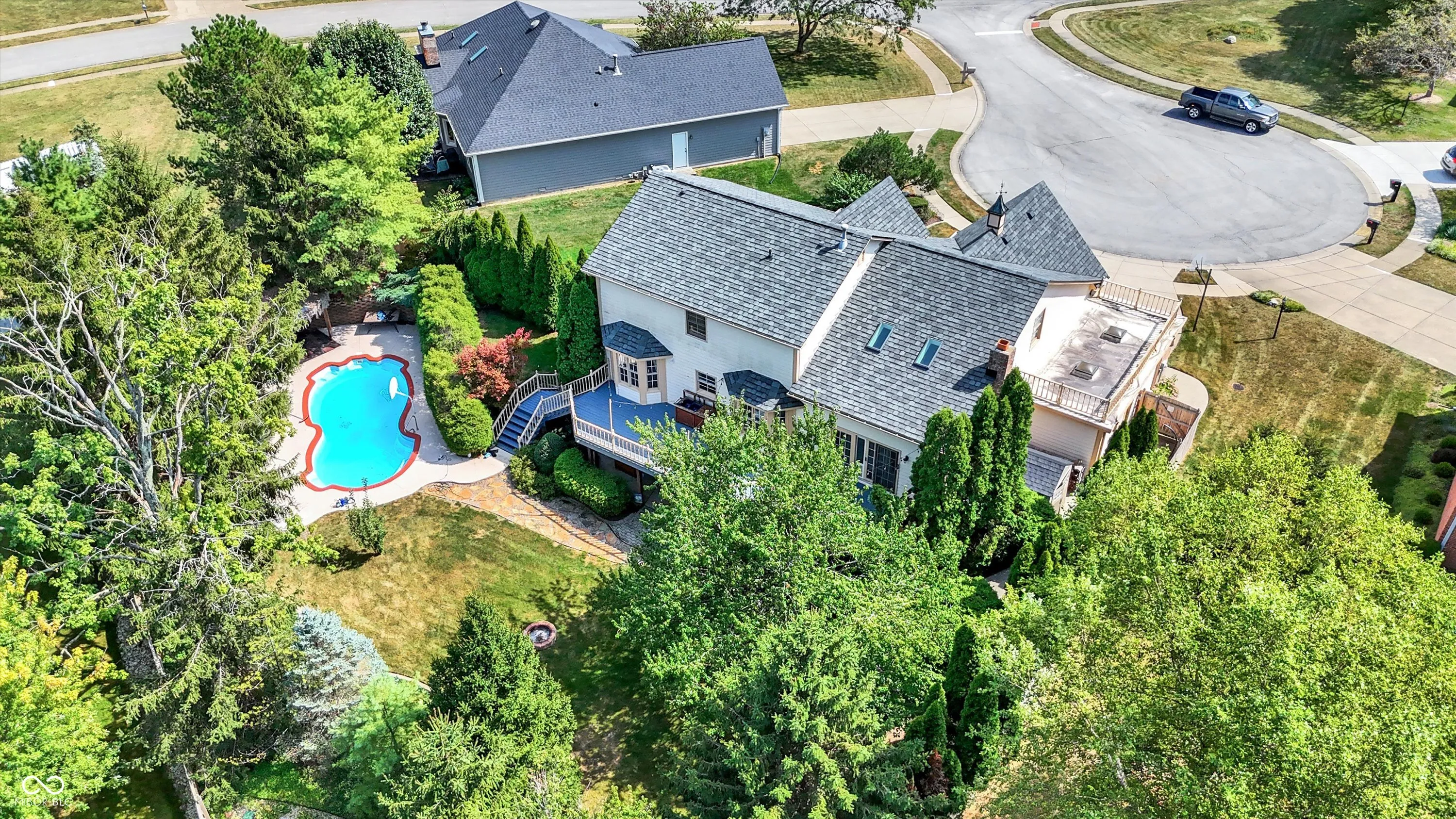 This stunning 3- story, 4/5 bedroom, 3.5 bath Victorian home is a true gem within the highly sought out Hamptons at Geist neighborhood. Mature landscaping abounds, with 35-year-old, 50 ft pine trees enclosing the expansive, fully fenced backyard, making into your own private oasis! The home boasts a gorgeous inground pool with a charming tiki hut for the ultimate in entertaining, as well as a 3-car garage with a 27 ft extended bay perfect for a boat or RV. The fully finished walk-out basement is a great space for hosting guests with a separate office/bedroom and bathroom with shower, a built-in pub-style bar, booth game table w/ built in benches, and direct access to the pool and backyard area. Situated on a quiet cul-de-sac, enjoy your cozy firepit out back, lounging on your huge upper deck, or have a peaceful read on your charming wrap-around front porch with swing. The interior features custom murals throughout the kitchen and separate formal dining room, as well as granite countertops, a built-in coffee bar, an oversized island great for family gatherings, and a wood-burning/gas fireplace in the living room. There is also a huge storage room in the basement, with built in shelves, perfect for holiday decorations. This gorgeous property has been twice featured in the IndyStar Magazine, Home & Garden section, as well as The Current, Christmas issue. Recent updates include a new roof in 2023, a new 96% efficient HVAC system with a UV light filter in 2018, and a remodeled master bathroom in 2016. Other updates include new carpet and paint in 2024, a new pool pump in 2024, and a new water heater with an expansion tank in 2024. Additionally, the home features a new cedar fence in 2023, a professionally sealed garage floor in 2023, a sump pump in 2022, and maintenance items such as creosote cleaning for the fireplace and a new over-range microwave in 2023. This unique property truly offers luxurious living with modern amenities and thoughtful details throughout