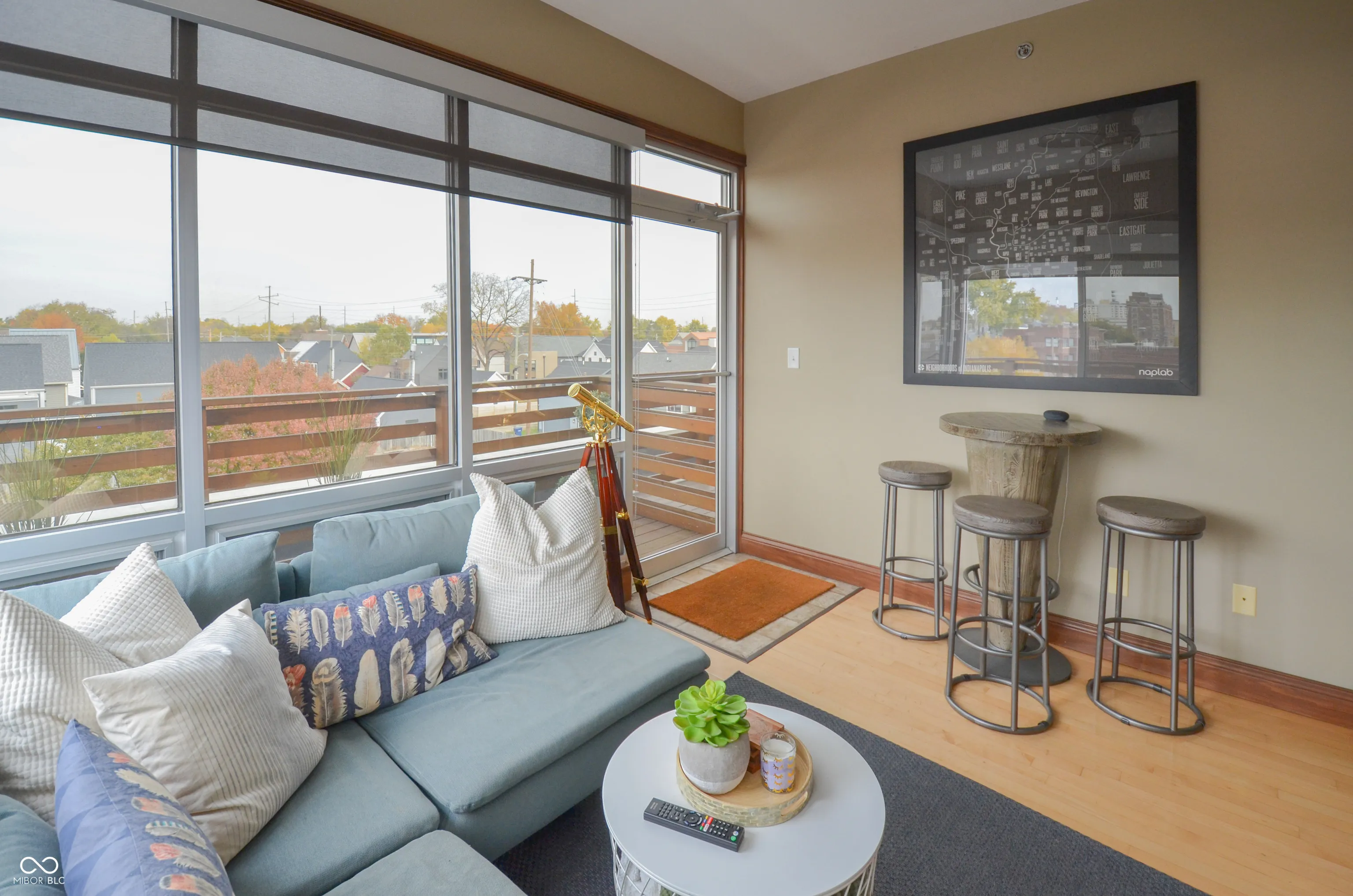 Indianapolis condo living at its finest in highly coveted Old Northside! Stunning finishes await you at this high end condo complex with attention to detail throughout! Three levels of luxurious living space, a stones throw from all the action of downtown living! Fantastic kitchen, living space on the main floor! Mater bedroom boosts a stunning walk in closet and amazing en-suite! Stunning 3rd floor rooftop area with views of the downtown, magnificent bar and relaxation area enclosed from the elements! Step outside onto the wrap around decked balcony and take in the sights and sounds of the city! Enjoy a book and beverage or use it as you entertainment hotspot! Cork flooring in bedrooms to ensure quiet footsteps! Gated parking/garage area. The list continues..