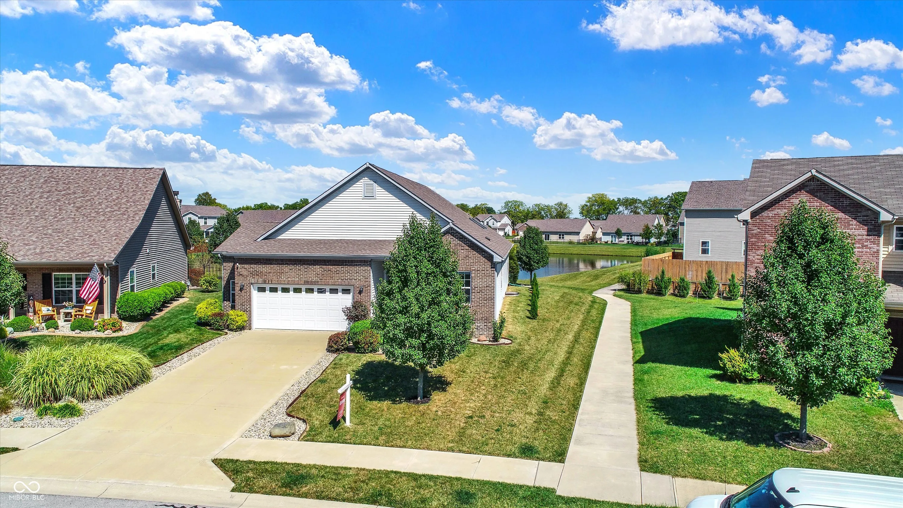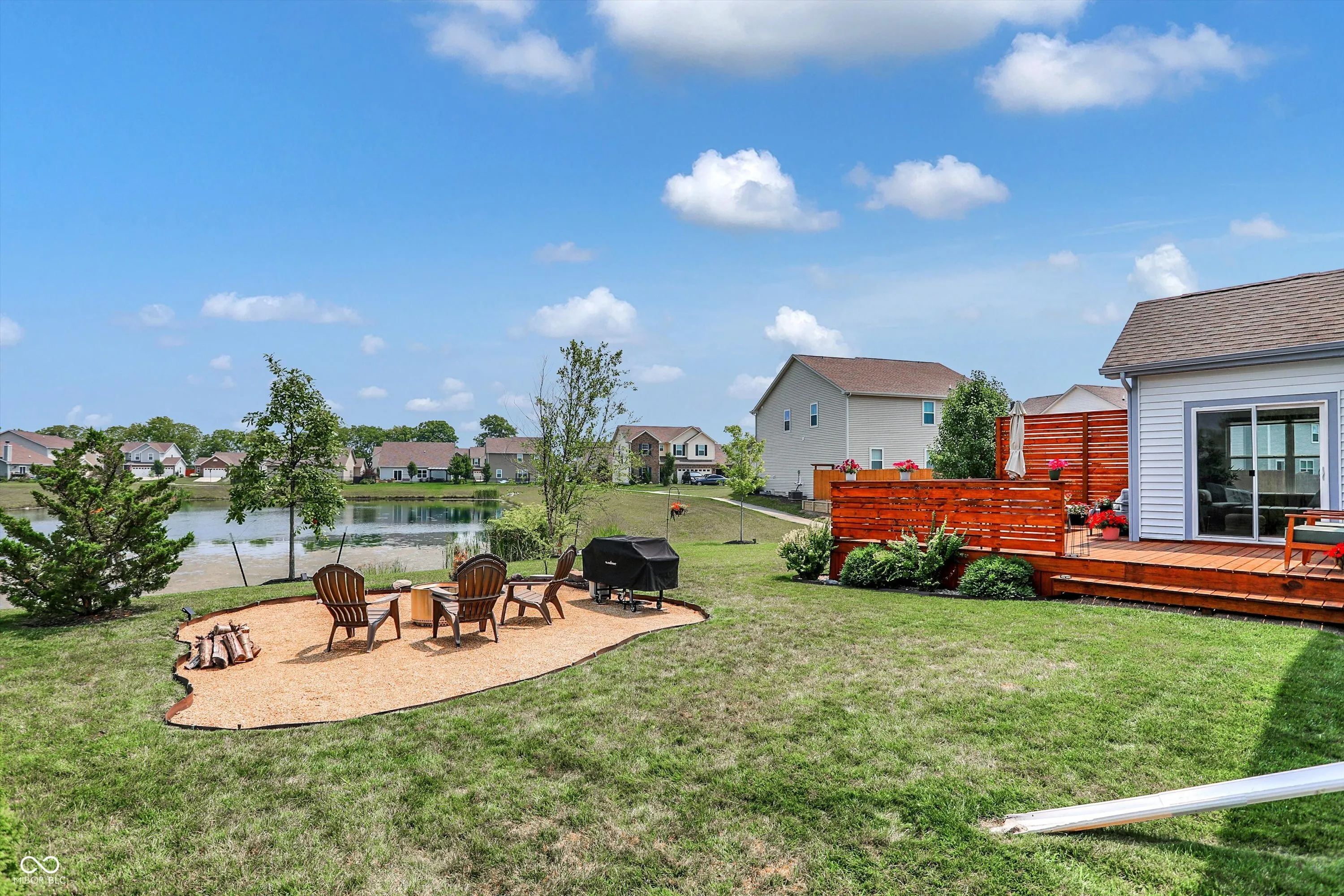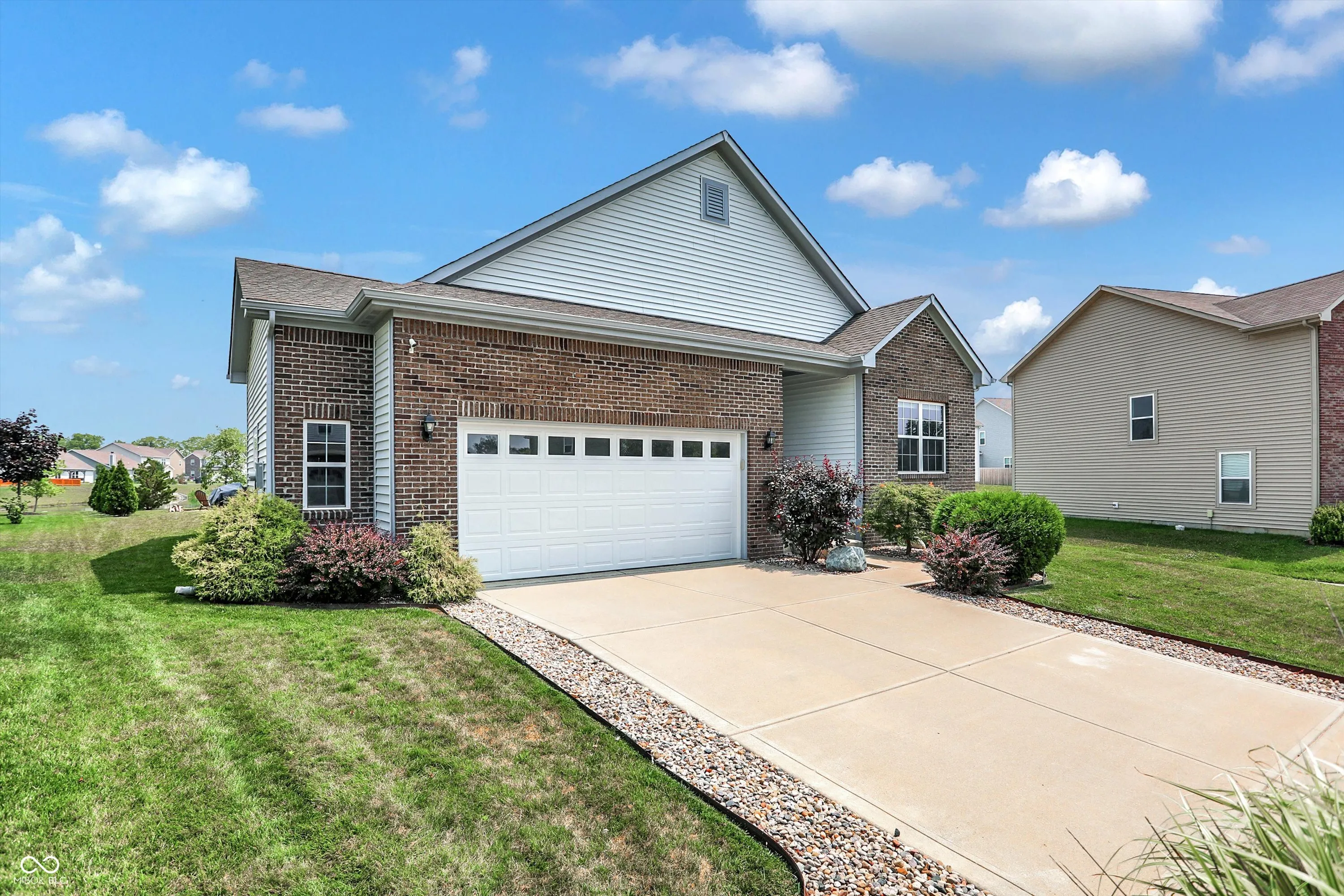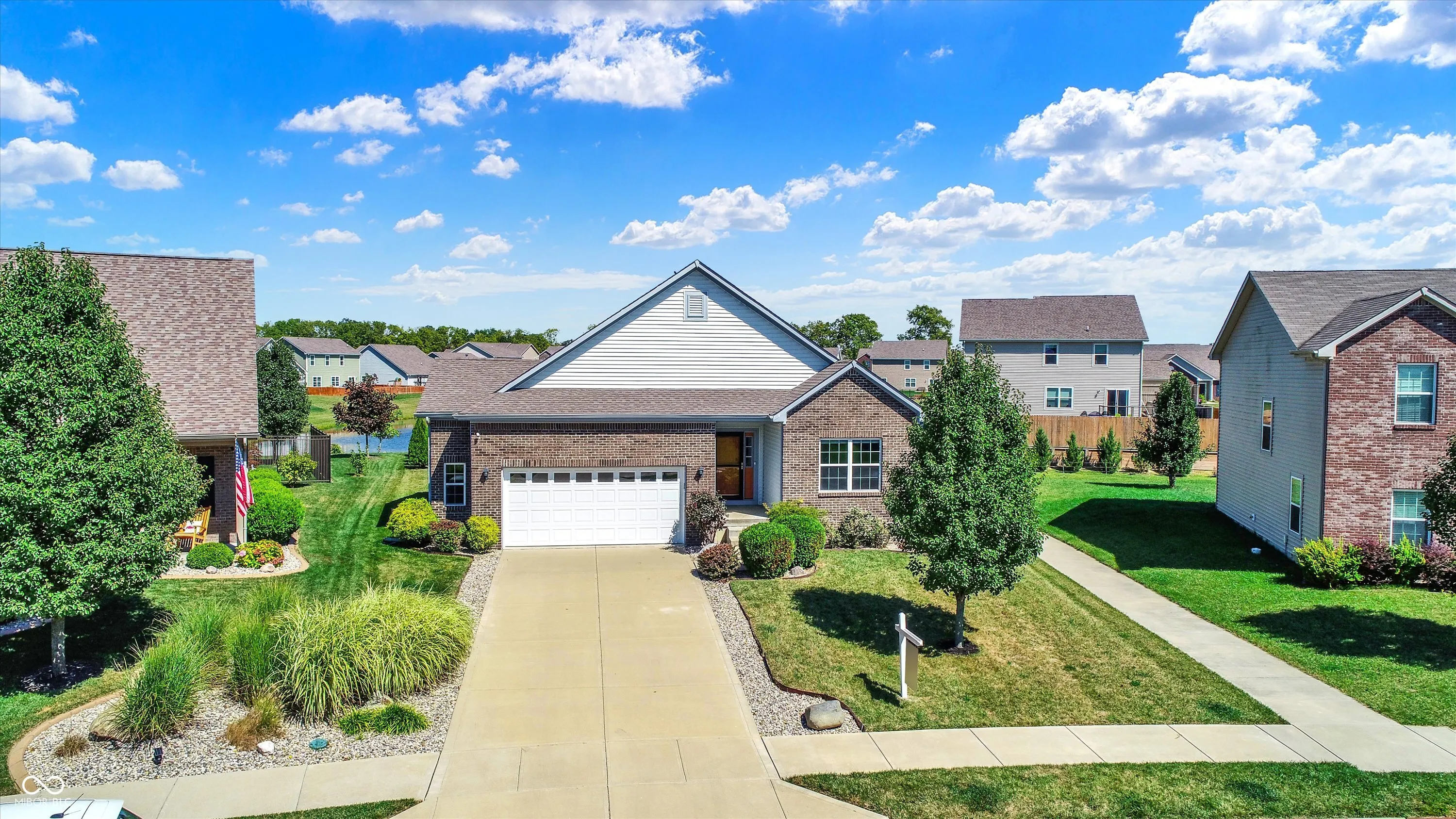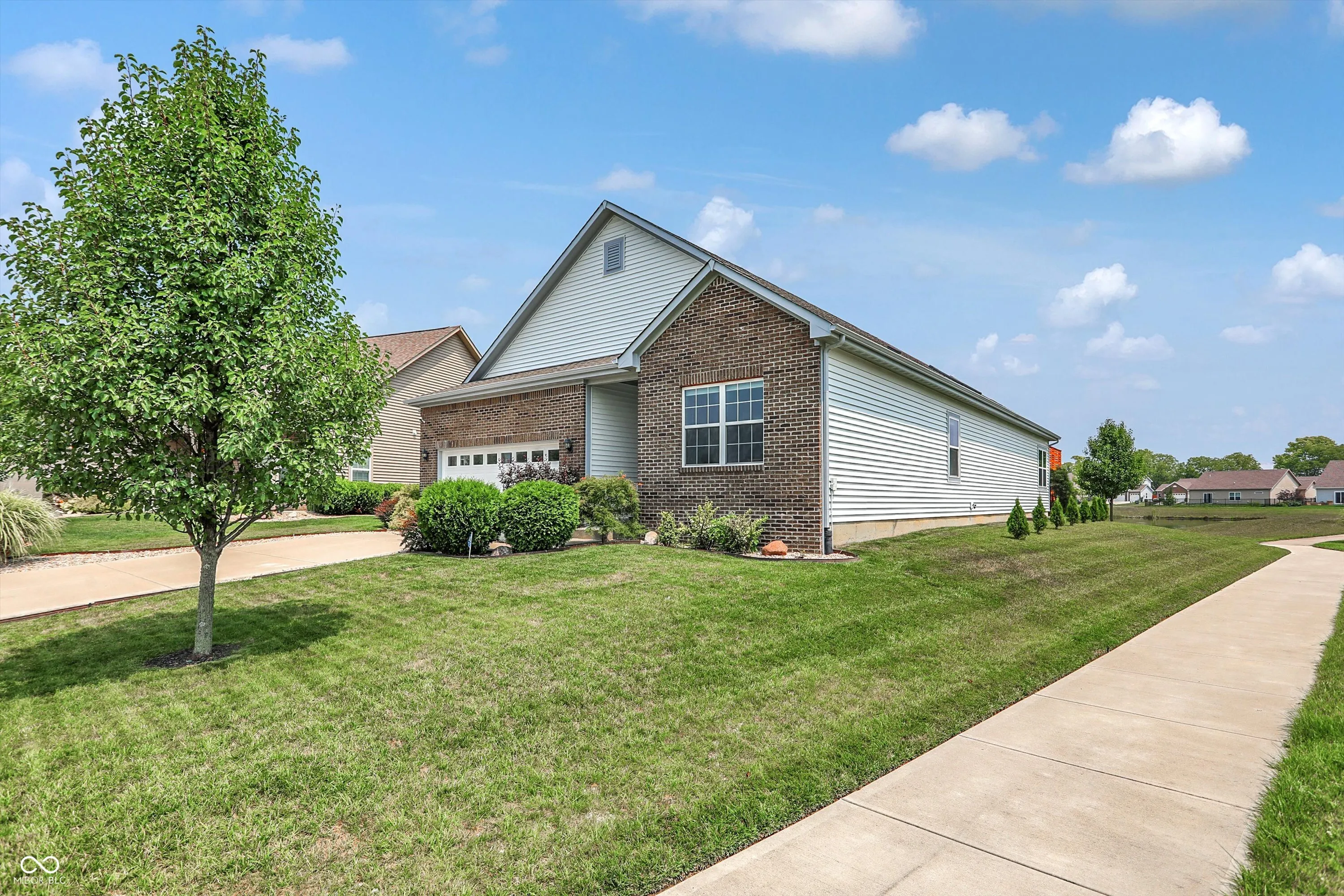 Immaculate ranch home with over 3,800 square feet on stunning water lot with great curb appeal in popular Spring Orchard! Wonderful open concept layout with vaulted ceilings features a split bedroom floorplan and an abundance of windows allowing for plenty of natural light throughout. Several upgrades including gorgeous Bamboo floors 2021, fresh exterior paint 2023, NEW carpet 2023 and 2 skylights 2020. Showstopper eat-in Kitchen features expansive center island/breakfast bar, NEW quartz counters and Blanco granite composite sink 2020, subway tile backsplash, SS appliances, built-in corner cabinet and walk-in pantry. Additional seating at high top bar. Enjoy the amazing views while relaxing in the bright, cozy sunroom. Primary luxurious ensuite includes generous walk-in closet, dual vanities, NEW quartz counters 2020 and walk-in shower. Unfinished full lower level is quite spacious and includes 9’ceilings, 2 egress windows and partially finished bath. Oversized 2 car garage has extra bump out for ample storage and built-in workspace. Additional highlights include a NEW Washer/Dryer 2023, NEW Water Softener 2022 and NEW Water Heater 2020. Enjoy entertaining on the sprawling deck with custom privacy screens and firepit overlooking incredible backyard with lush landscaping and beautiful pond. It’s the perfect blend of convenience, comfort and charm in a peaceful, serene setting!