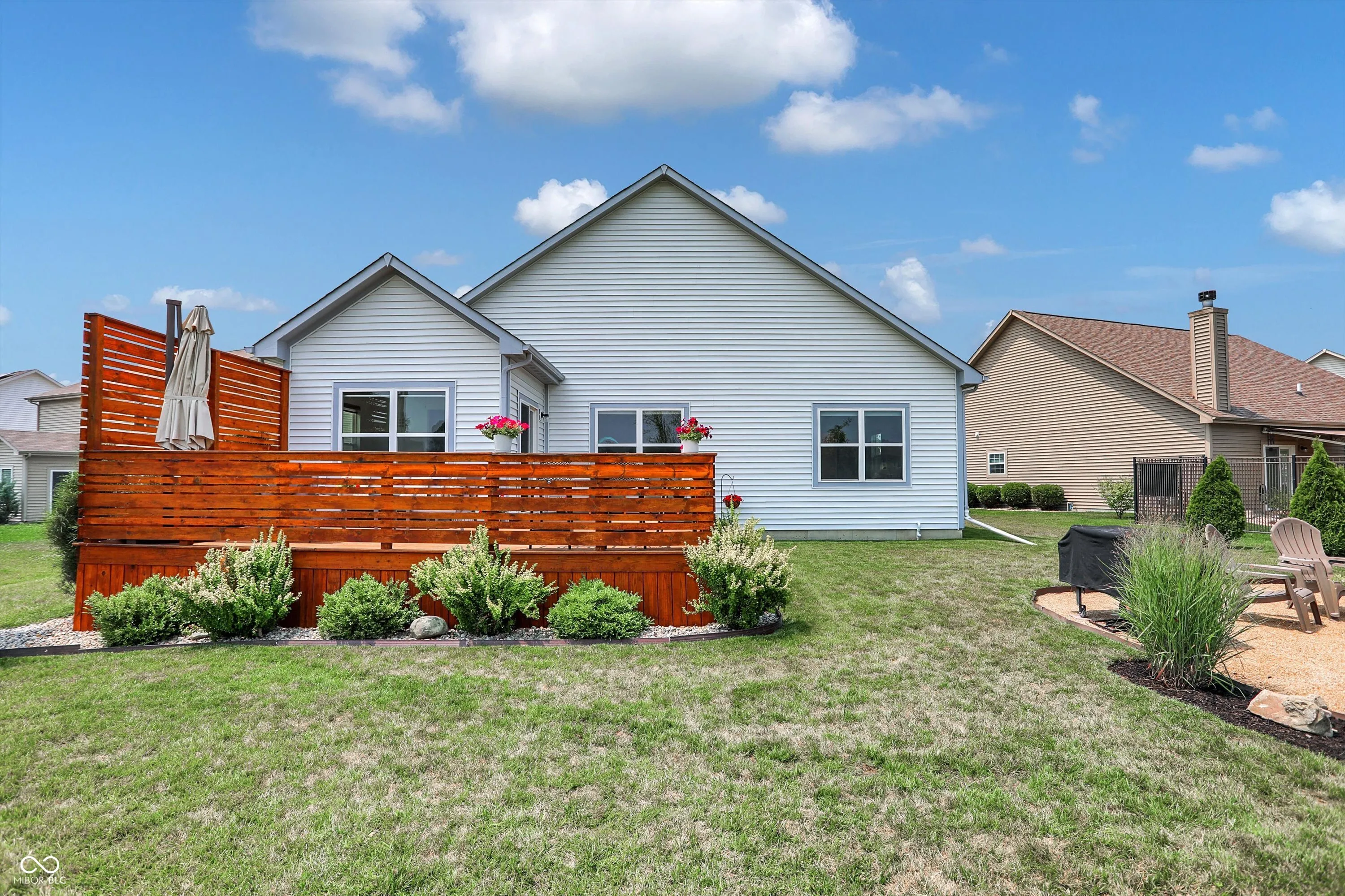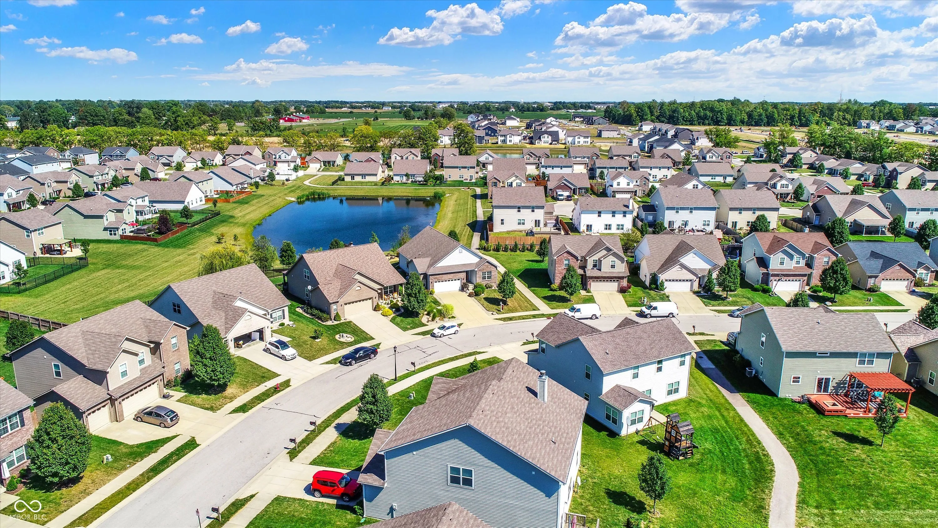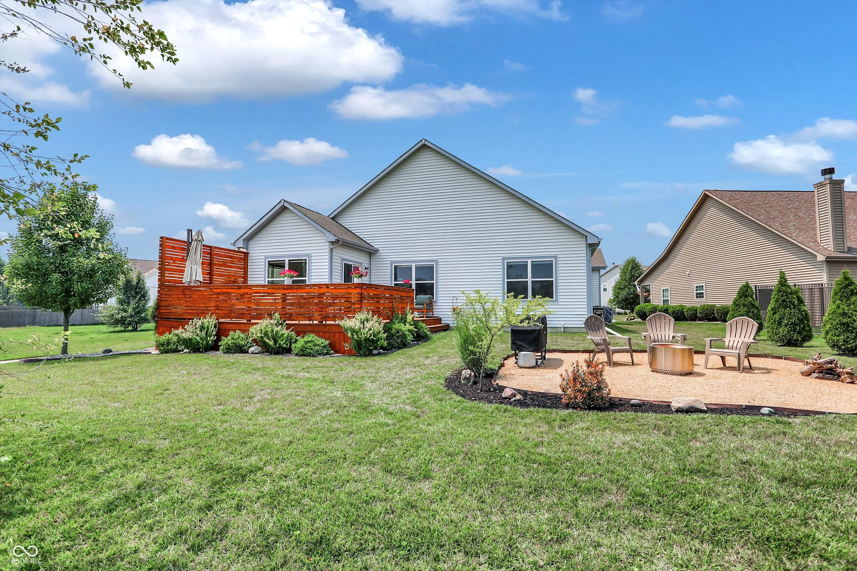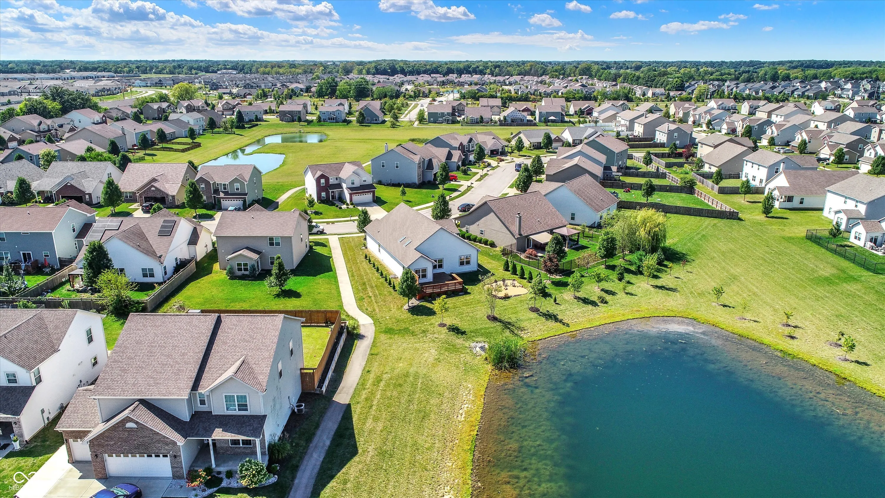 Immaculate ranch home with over 3,800 square feet on stunning water lot with great curb appeal in popular Spring Orchard! Wonderful open concept layout with vaulted ceilings features a split bedroom floorplan and an abundance of windows allowing for plenty of natural light throughout. Several upgrades including gorgeous Bamboo floors 2021, fresh exterior paint 2023, NEW carpet 2023 and 2 skylights 2020. Showstopper eat-in Kitchen features expansive center island/breakfast bar, NEW quartz counters and Blanco granite composite sink 2020, subway tile backsplash, SS appliances, built-in corner cabinet and walk-in pantry. Additional seating at high top bar. Enjoy the amazing views while relaxing in the bright, cozy sunroom. Primary luxurious ensuite includes generous walk-in closet, dual vanities, NEW quartz counters 2020 and walk-in shower. Unfinished full lower level is quite spacious and includes 9’ceilings, 2 egress windows and partially finished bath. Oversized 2 car garage has extra bump out for ample storage and built-in workspace. Additional highlights include a NEW Washer/Dryer 2023, NEW Water Softener 2022 and NEW Water Heater 2020. Enjoy entertaining on the sprawling deck with custom privacy screens and firepit overlooking incredible backyard with lush landscaping and beautiful pond. It’s the perfect blend of convenience, comfort and charm in a peaceful, serene setting!
