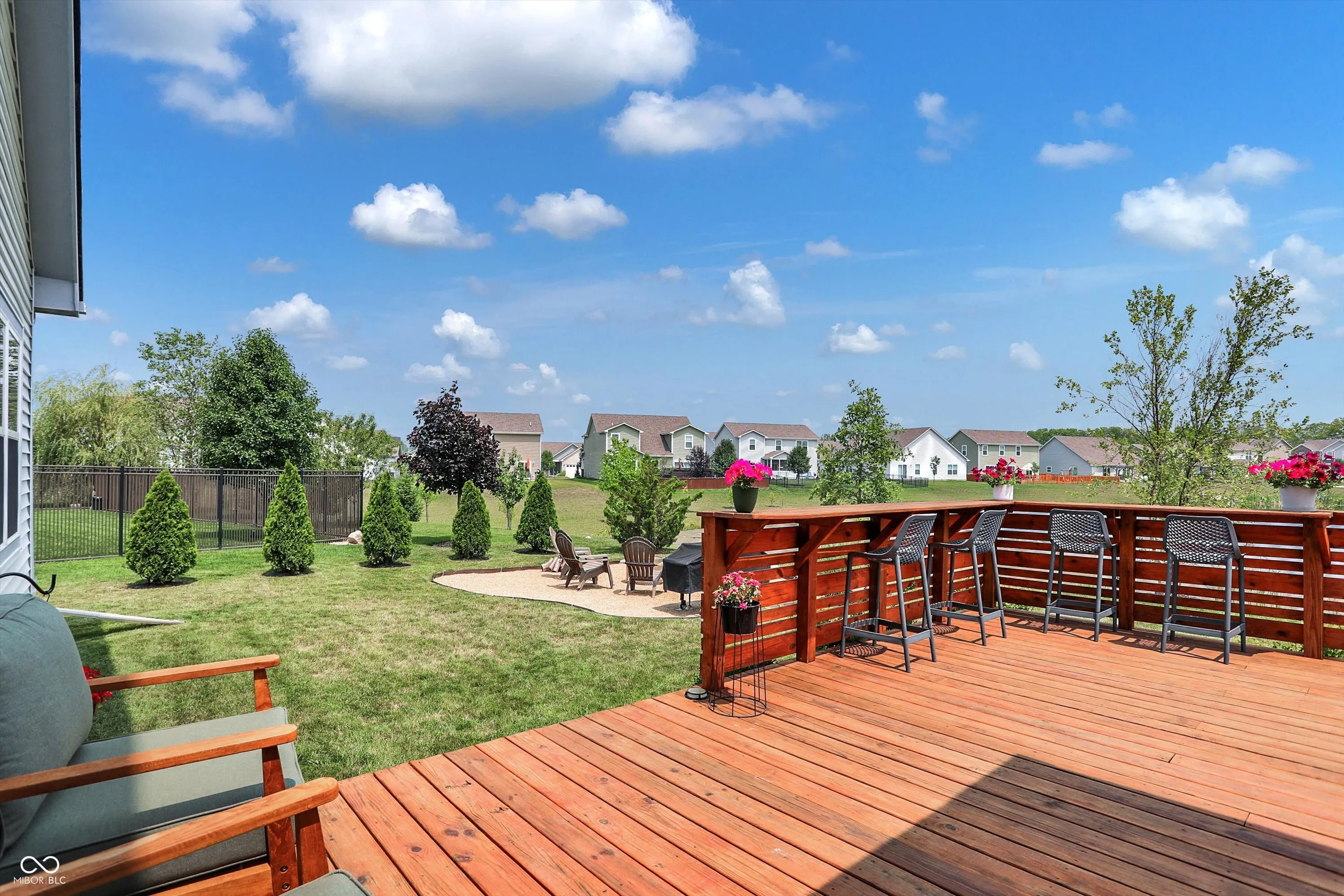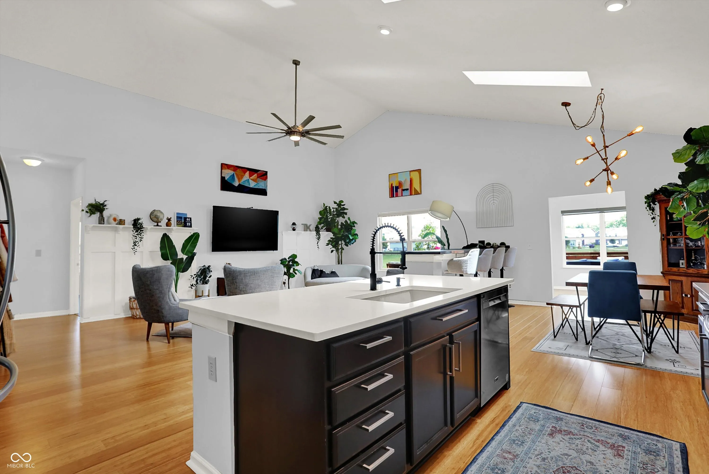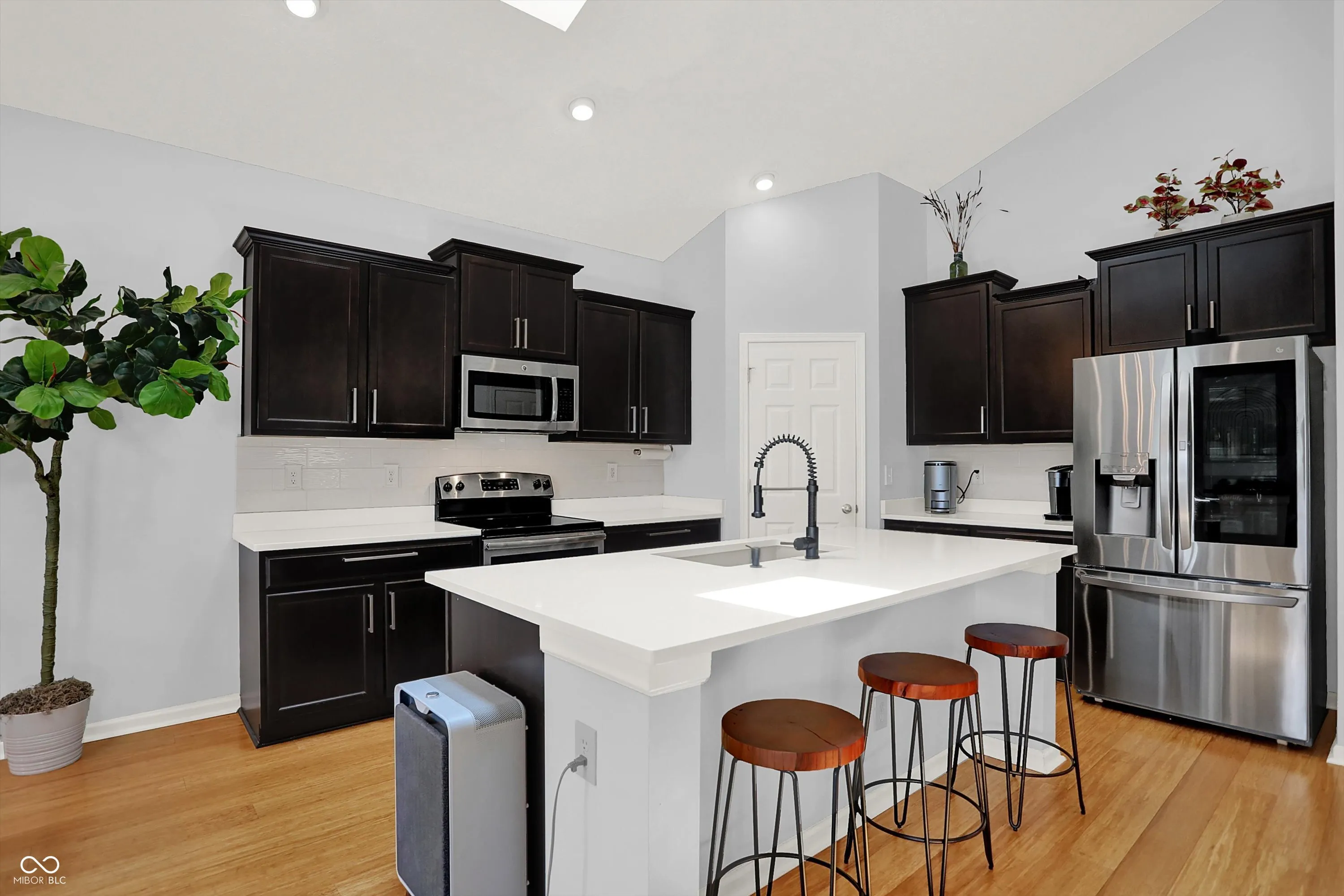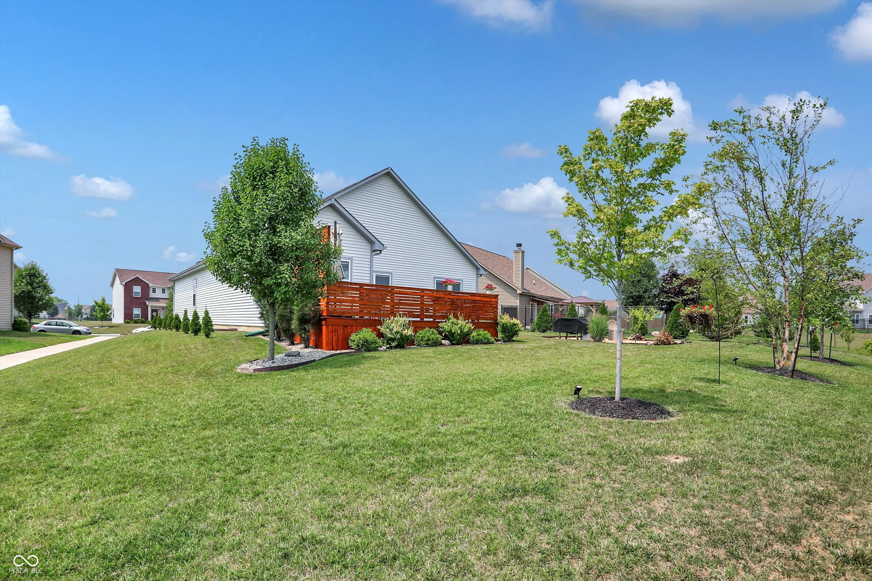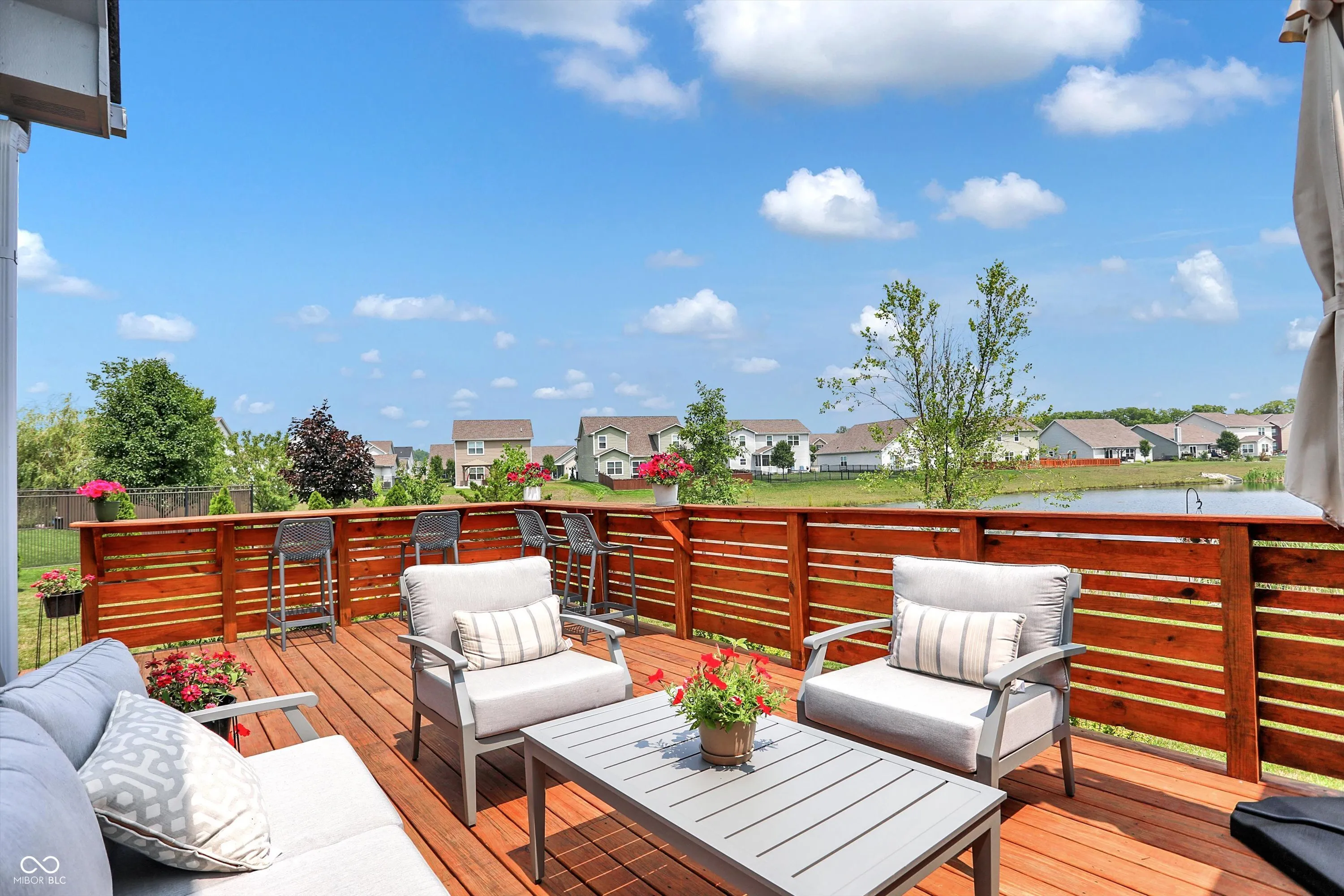 Immaculate ranch home with over 3,800 square feet on stunning water lot with great curb appeal in popular Spring Orchard! Wonderful open concept layout with vaulted ceilings features a split bedroom floorplan and an abundance of windows allowing for plenty of natural light throughout. Several upgrades including gorgeous Bamboo floors 2021, fresh exterior paint 2023, NEW carpet 2023 and 2 skylights 2020. Showstopper eat-in Kitchen features expansive center island/breakfast bar, NEW quartz counters and Blanco granite composite sink 2020, subway tile backsplash, SS appliances, built-in corner cabinet and walk-in pantry. Additional seating at high top bar. Enjoy the amazing views while relaxing in the bright, cozy sunroom. Primary luxurious ensuite includes generous walk-in closet, dual vanities, NEW quartz counters 2020 and walk-in shower. Unfinished full lower level is quite spacious and includes 9’ceilings, 2 egress windows and partially finished bath. Oversized 2 car garage has extra bump out for ample storage and built-in workspace. Additional highlights include a NEW Washer/Dryer 2023, NEW Water Softener 2022 and NEW Water Heater 2020. Enjoy entertaining on the sprawling deck with custom privacy screens and firepit overlooking incredible backyard with lush landscaping and beautiful pond. It’s the perfect blend of convenience, comfort and charm in a peaceful, serene setting!