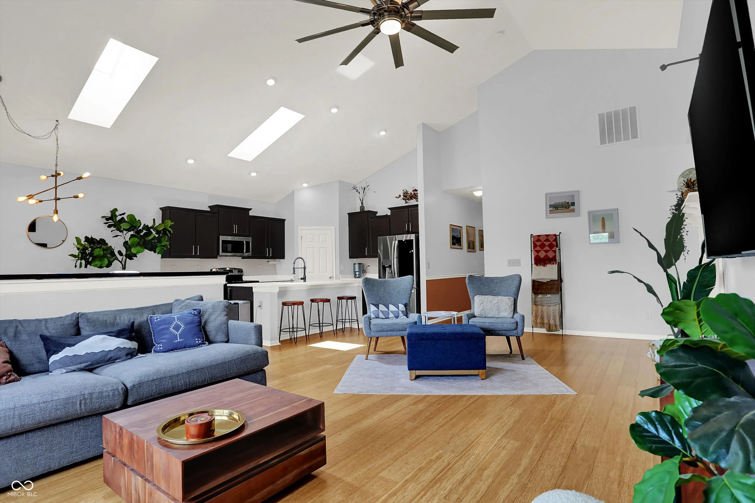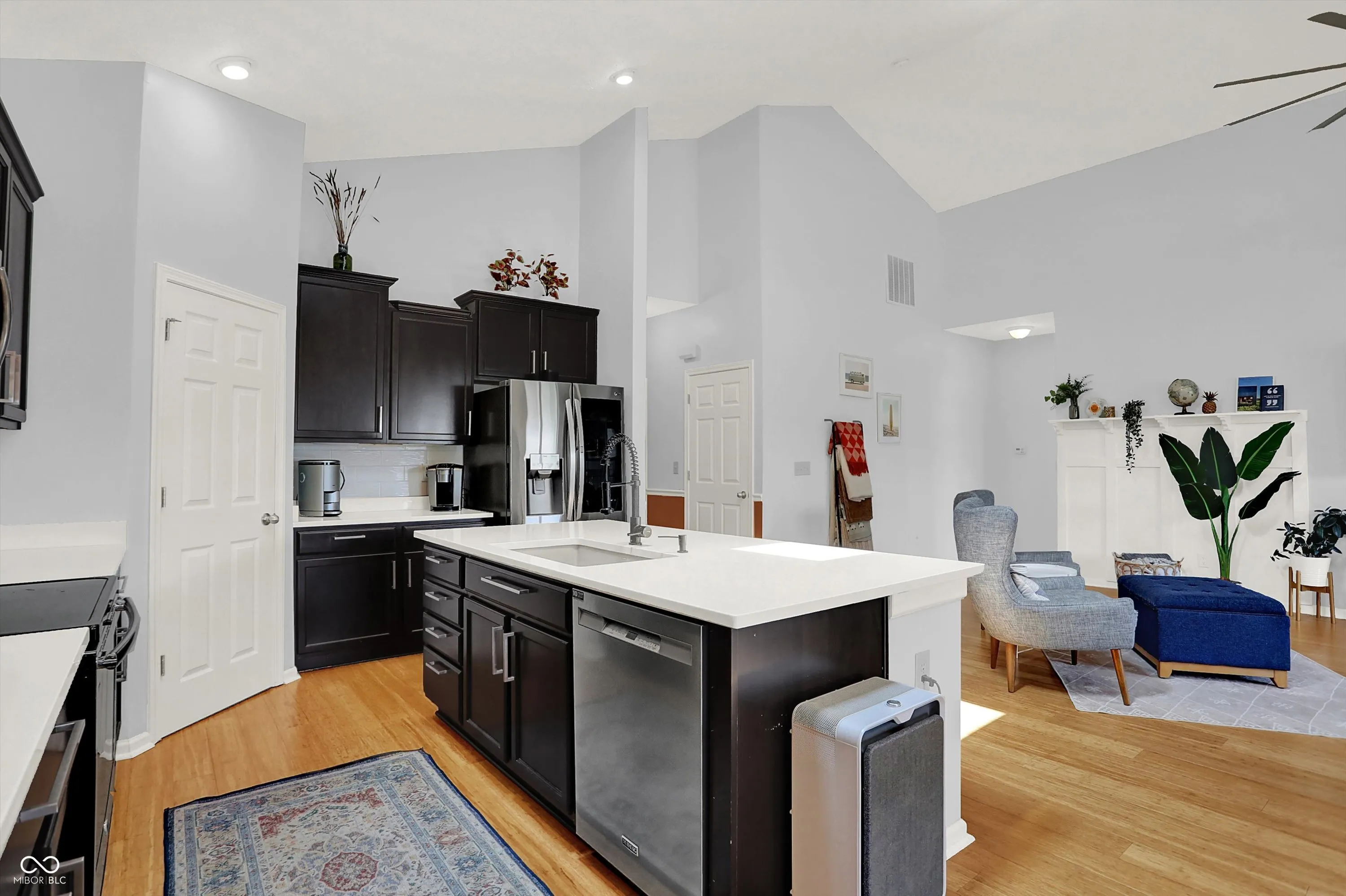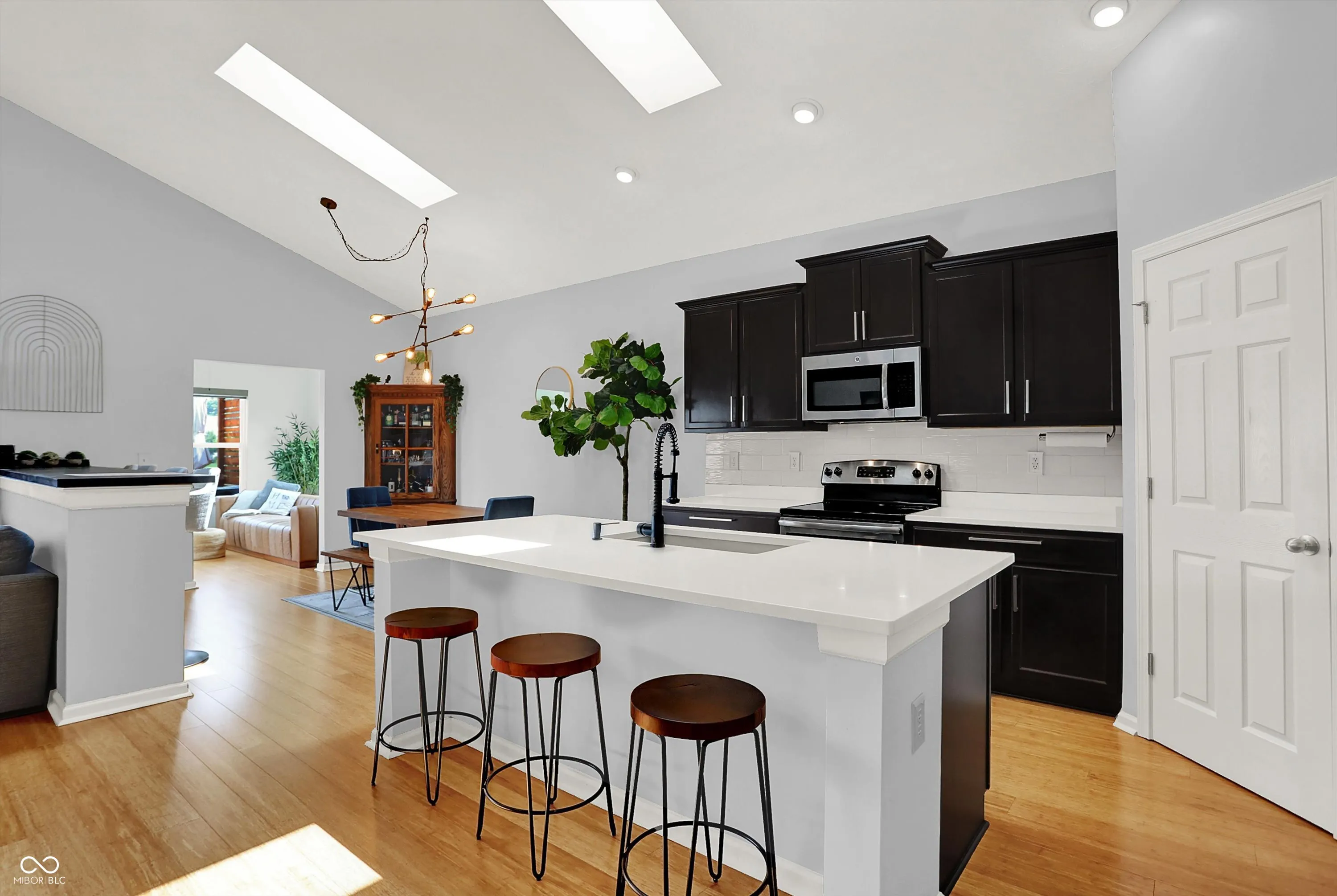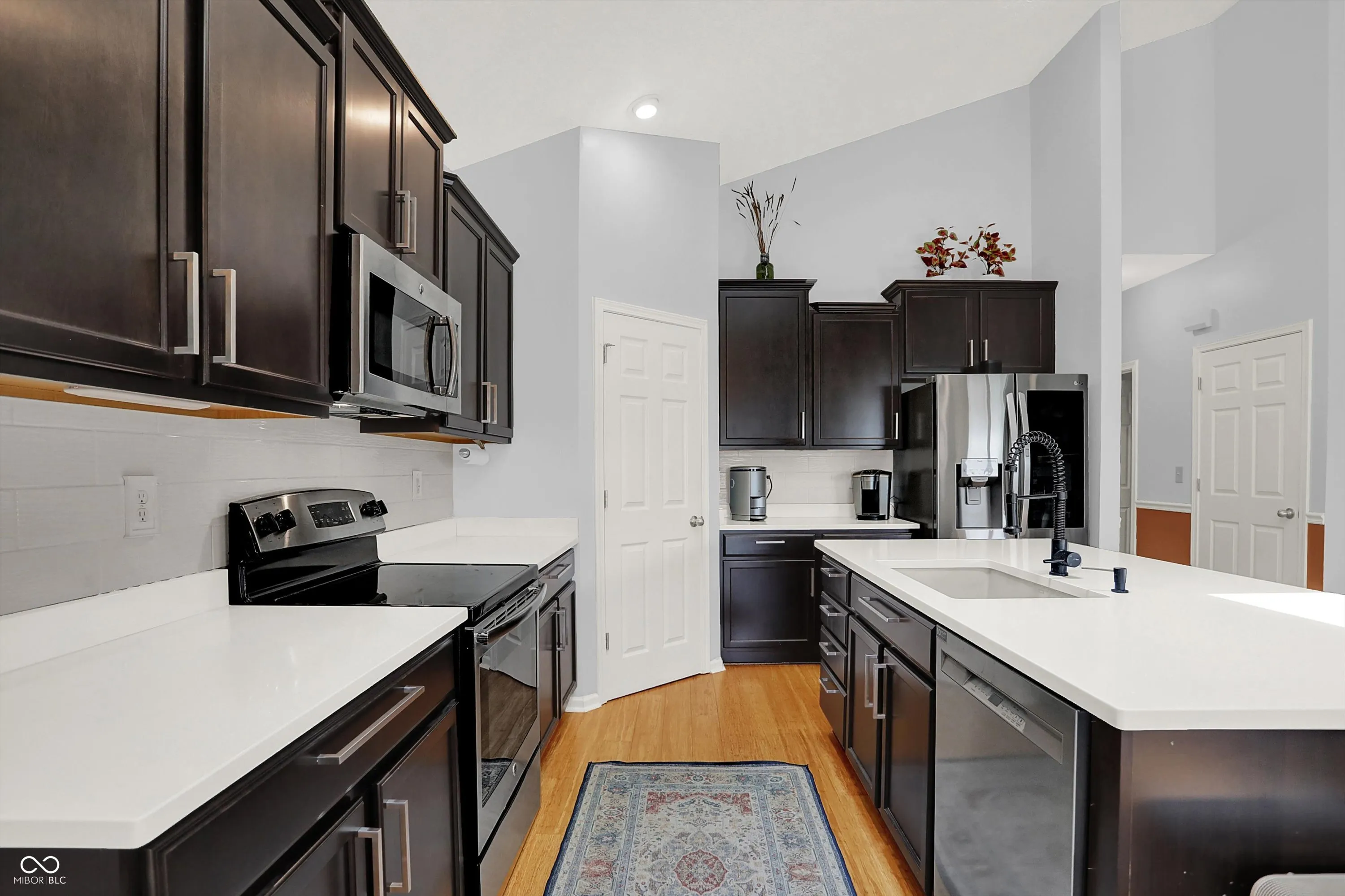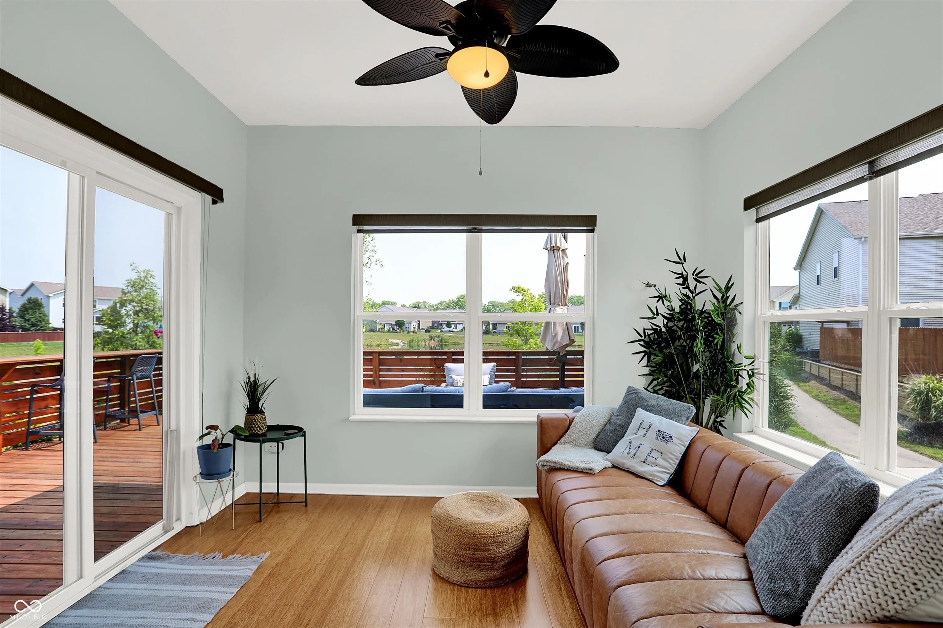 Immaculate ranch home with over 3,800 square feet on stunning water lot with great curb appeal in popular Spring Orchard! Wonderful open concept layout with vaulted ceilings features a split bedroom floorplan and an abundance of windows allowing for plenty of natural light throughout. Several upgrades including gorgeous Bamboo floors 2021, fresh exterior paint 2023, NEW carpet 2023 and 2 skylights 2020. Showstopper eat-in Kitchen features expansive center island/breakfast bar, NEW quartz counters and Blanco granite composite sink 2020, subway tile backsplash, SS appliances, built-in corner cabinet and walk-in pantry. Additional seating at high top bar. Enjoy the amazing views while relaxing in the bright, cozy sunroom. Primary luxurious ensuite includes generous walk-in closet, dual vanities, NEW quartz counters 2020 and walk-in shower. Unfinished full lower level is quite spacious and includes 9’ceilings, 2 egress windows and partially finished bath. Oversized 2 car garage has extra bump out for ample storage and built-in workspace. Additional highlights include a NEW Washer/Dryer 2023, NEW Water Softener 2022 and NEW Water Heater 2020. Enjoy entertaining on the sprawling deck with custom privacy screens and firepit overlooking incredible backyard with lush landscaping and beautiful pond. It’s the perfect blend of convenience, comfort and charm in a peaceful, serene setting!