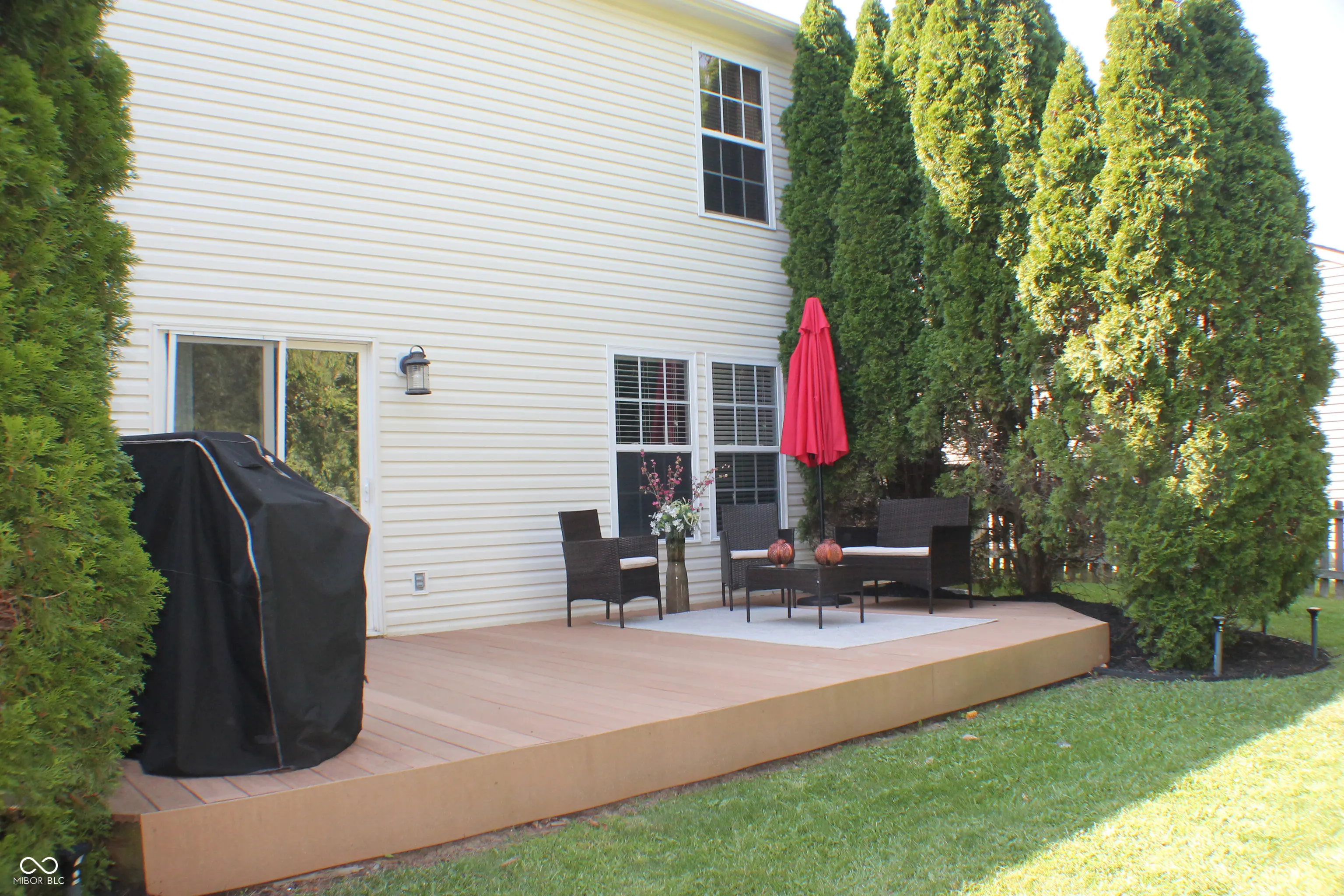 Beautiful two story home located in popular Pendleton schools. The main level is an open concept plan that can be used in multiple ways. The sellers are currently using the front room as a dining room but it could easily be a separate living space. The back part of the downstairs is a family room that flows right into the kitchen with a center island. Enjoy a spacious kitchen with newly painted cabinets and all new stainless steel appliances. Just off of the kitchen is a utility room that doubles as a pantry. Outside through the patio door is your composite deck that is surrounded by awesome pine trees that block the view from the side, and since there are no neighbors behind the house, you truly have a private sanctuary. Upstairs you will find the primary bedroom with a full bath with double sinks and a walk-in closet. Rather than having a loft, the space is spread out to give two more generous bedrooms, each with walk-in closets that share another full bath. The laundry room is conveniently located with the bedrooms. You will be hard pressed to find another neighborhood with as many amenities as are offered here. Take advantage of 2 playgrounds, swimming pool, clubhouse, tennis court and basketball court. There are also several ponds in the neighborhood that allow non-motorized boating and fishing. Come take a look today, you will not be disappointed!