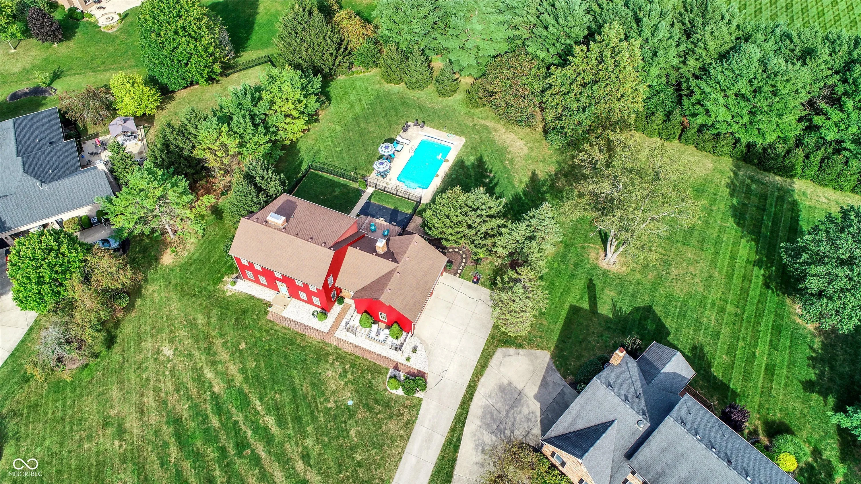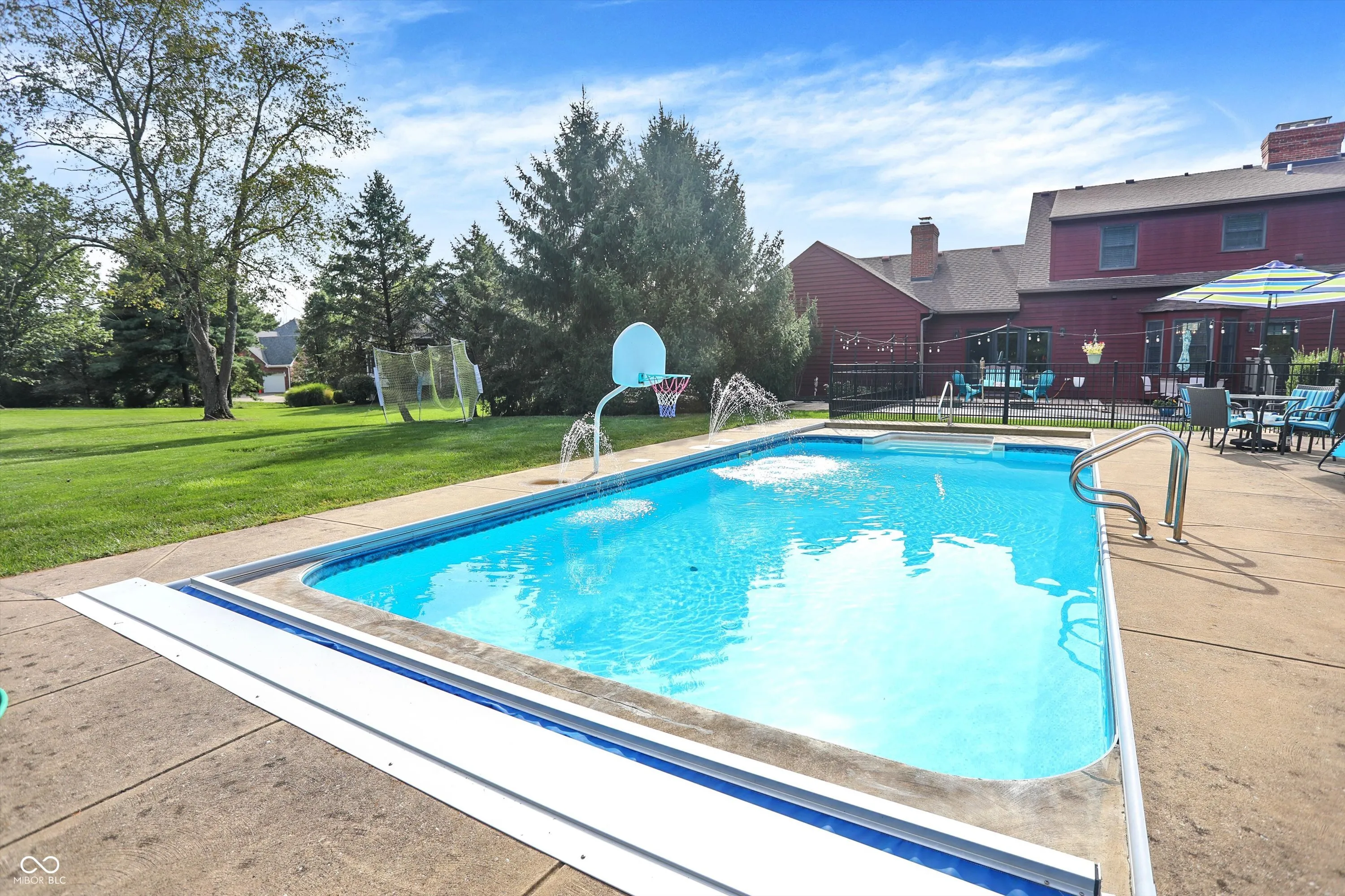 Welcome to your dream home nestled in the heart of Zionsville! This stunning property boasts a sprawling 1-acre lot in a serene cul-de-sac, offering both privacy and space. The lush, wooded surroundings provide a picturesque backdrop for your new residence. At the heart of outdoor enjoyment is a luxurious inground saltwater pool, recently upgraded with a new pool cover, motor, and sand filter. Whether you’re hosting a summer soiree or enjoying a peaceful swim, this pool area is a true sanctuary. Step inside to discover a brand-new kitchen, thoughtfully updated in 2024 to combine modern aesthetics with farmhouse charm. This culinary haven is perfect for both everyday meals and festive gatherings. The finished basement is a standout feature, complete with a stylish bar that sets the stage for memorable entertaining. Whether it’s a casual get-together or a more formal event, this space is designed to impress