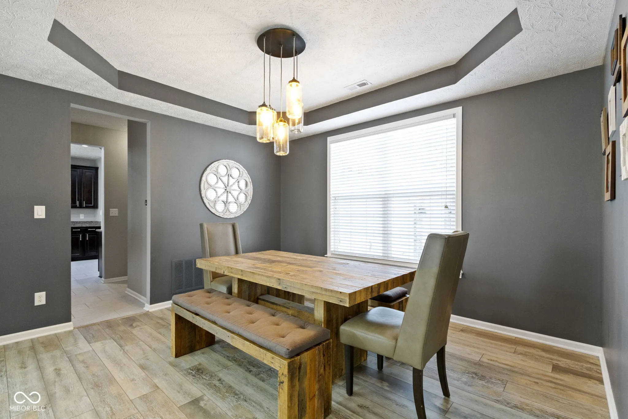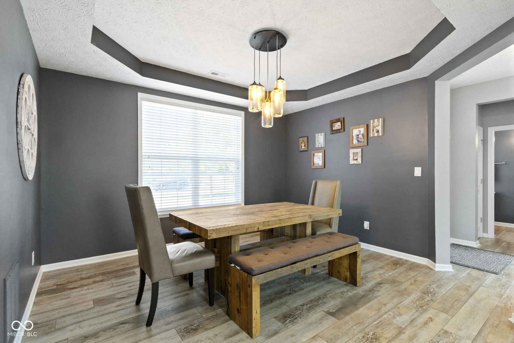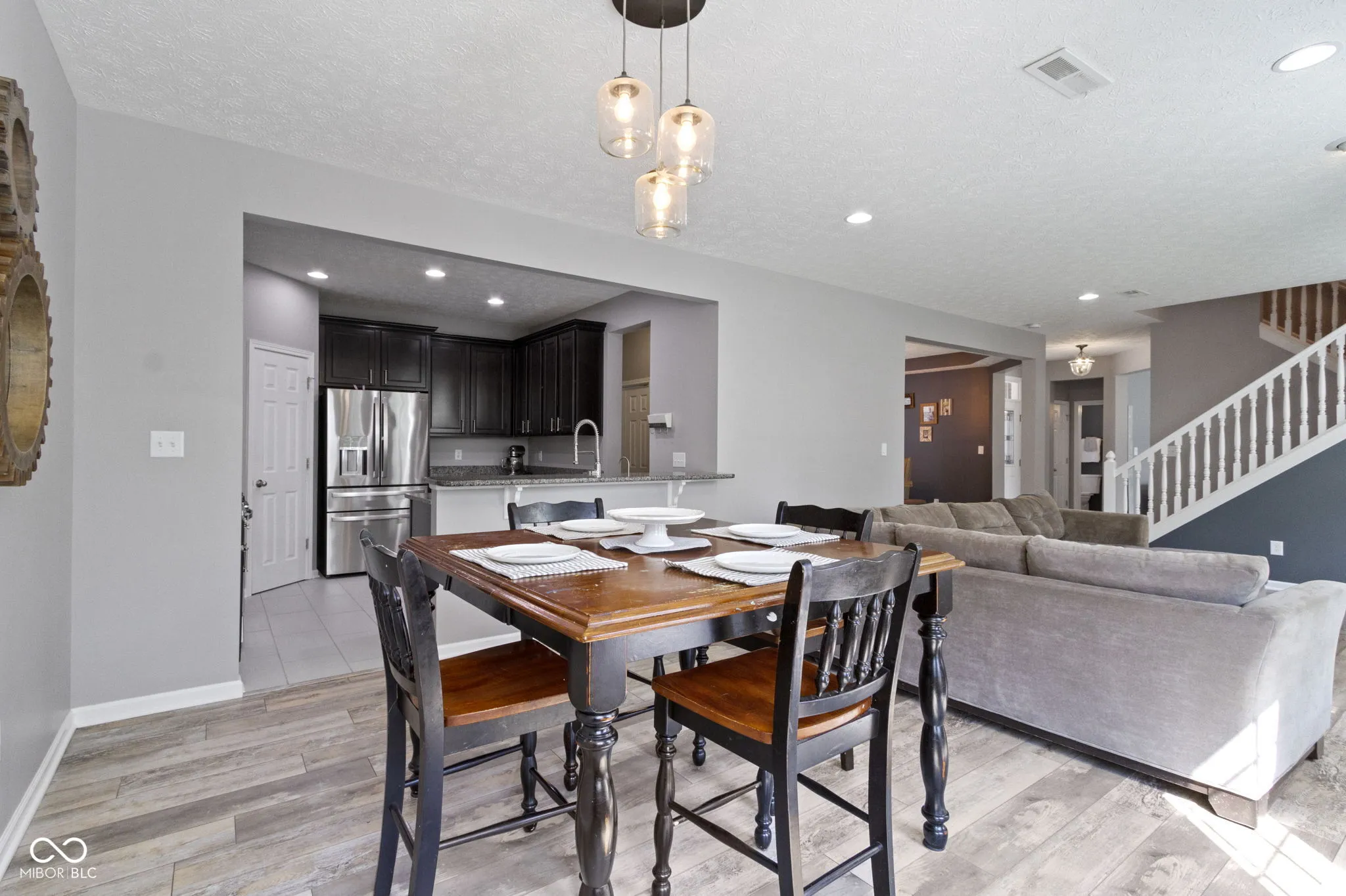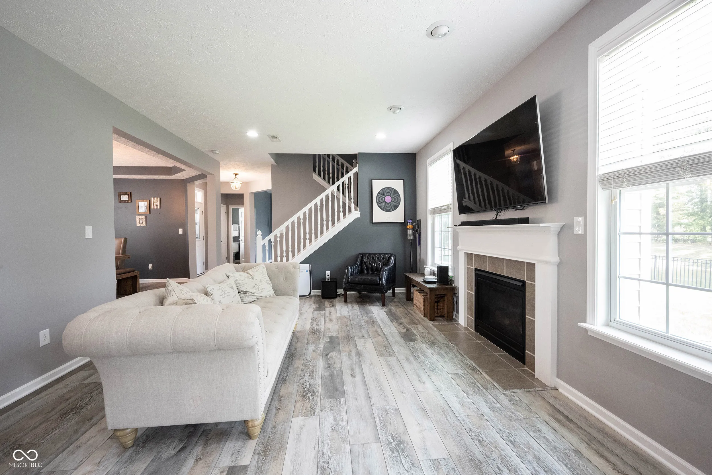 Welcome home to South Avalon, highly upgraded home located on a premium homesite with water and a lush tree line! Upon arrival you are greeted by the 3 car courtyard garage, and charming covered front porch, upscale landscaping with stone landscape beds providing low maintenance! Open the door to over 3,500 sq ft, loaded w/custom details throughout! Home office/den tucked off the rear of the home away from the main living areas for privacy. LVP flooring runs seamlessly throughout the first floor. Generous sized greatroom with cozy gas fireplace and views of your tranquil backyard. Breakfast room and kitchen open to the greatroom, offering the perfect setup for entertaining! Kitchen features 42″ richly stained cabinets, granite counters, SS appliances, 24×20 tile floors, and a breakfast bar. Dining room and butler’s pantry complete the first floor. Upstairs you will find 4 large bedrooms, including the owner’s suite with updates. Luxury WI shower, dual sink vanity and vaulted ceilings. 3 bedrooms with spacious closets, and upstairs laundry convenient to all of the bedrooms! Custom finished basement with all the bells and whistles! Including ambient lighting in the theater area, cabinets with beverage cooler, and game area! Perfect set up for entertaining and hosting for game day! A 5th bedroom with upscale full bath complete with trending finishes complete this space! Neighborhood amenities include, park, playground, walking trails, unique opportunity to be within walking distance to the schools! Ask Laura for details on how to take advantage of an interest rate or 3.375%!