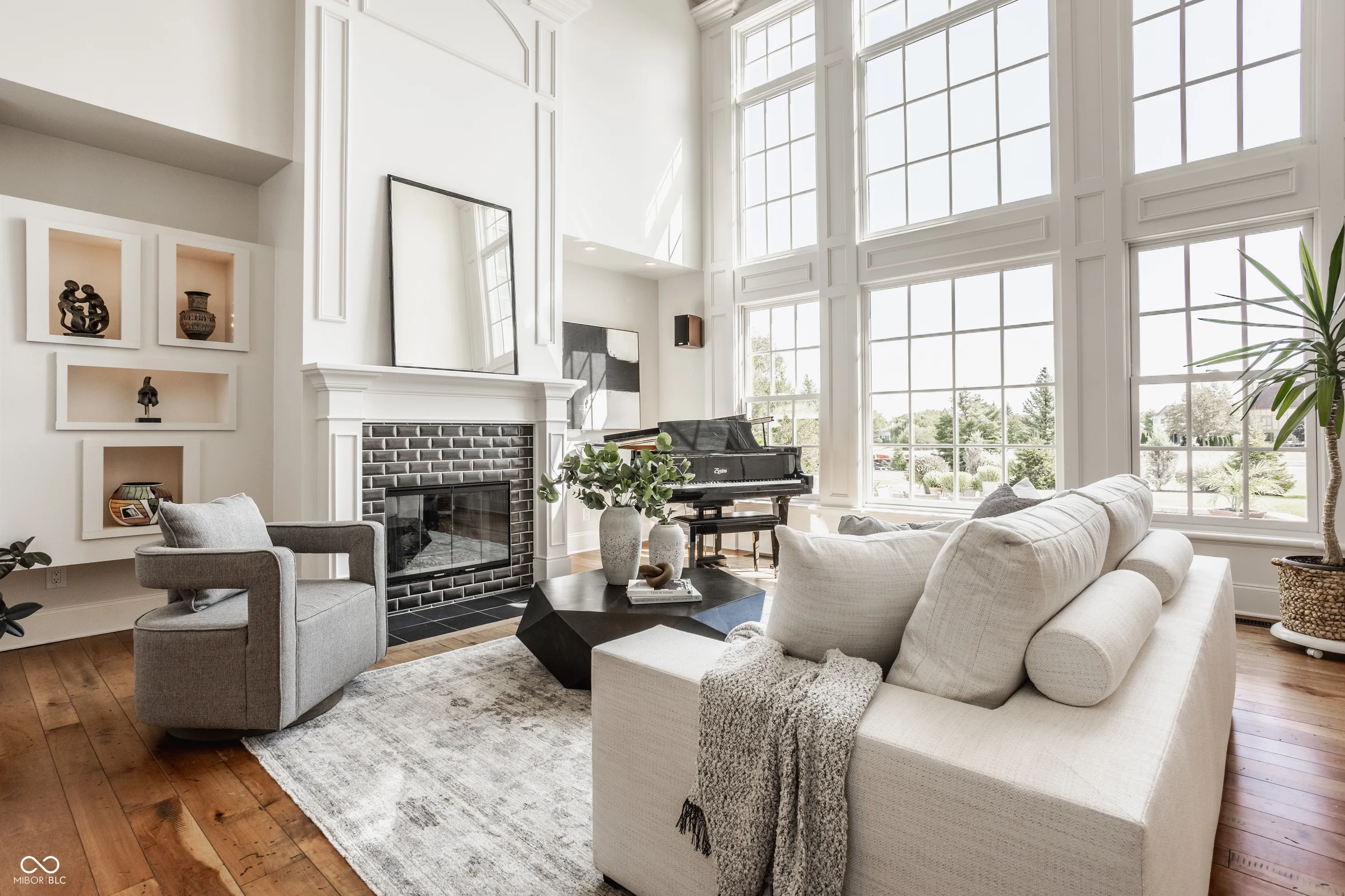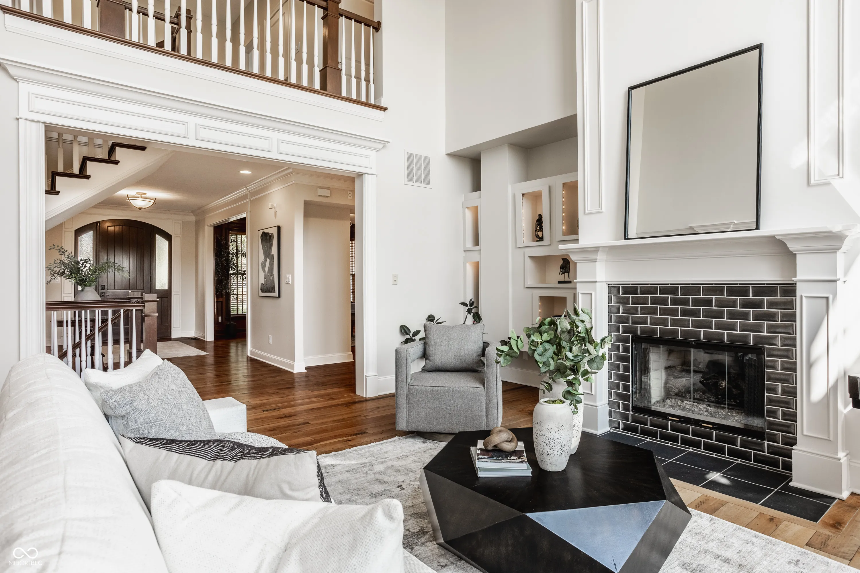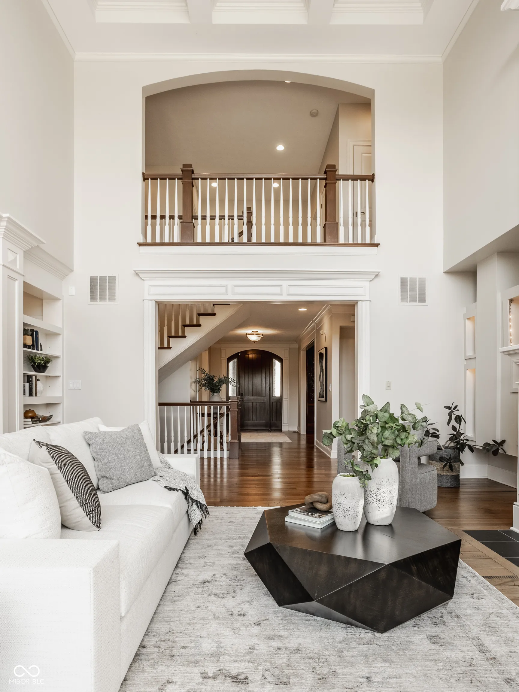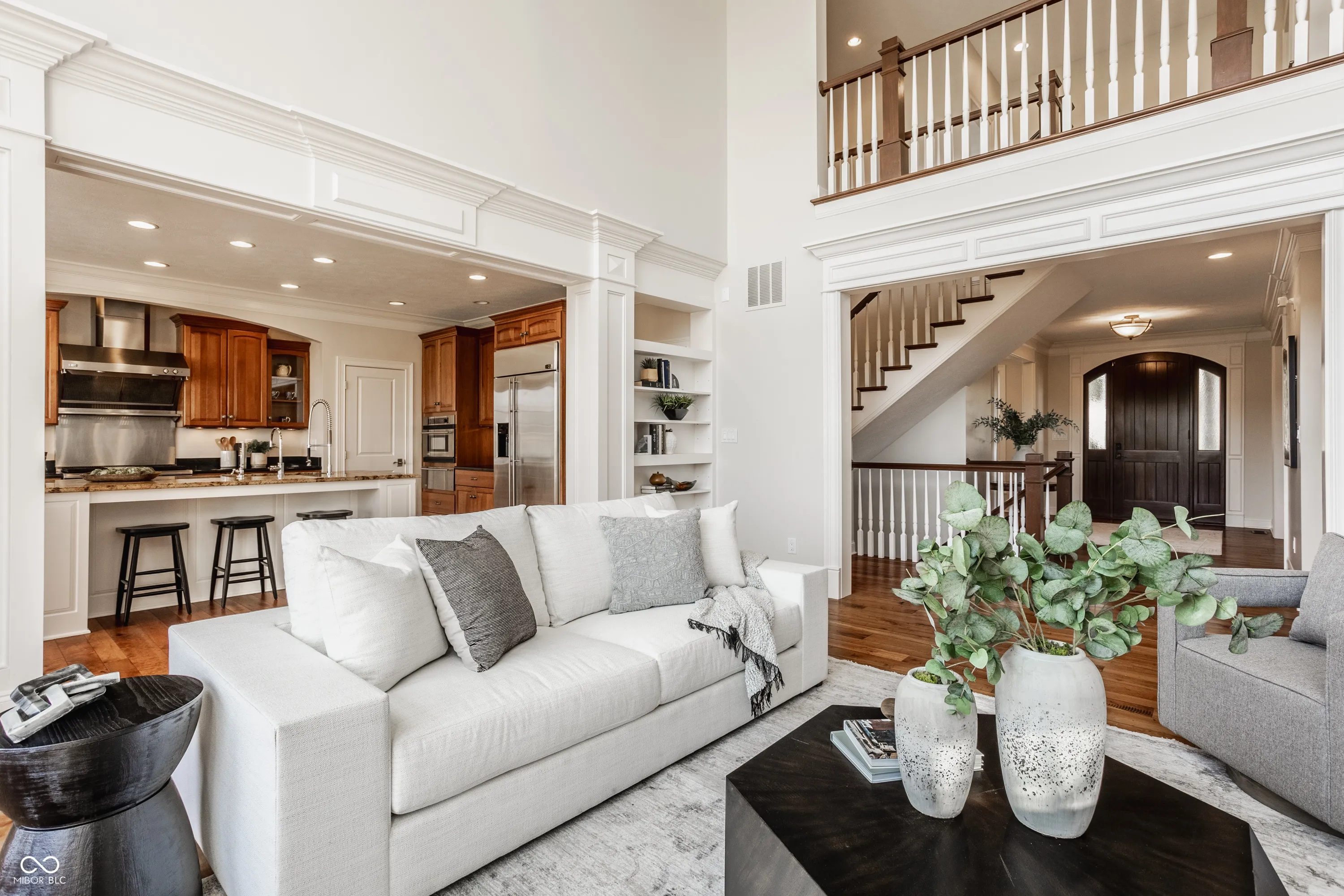 Welcome to this stunning, original-owner home built by renowned builder Will Wright, located in the highly sought-after Village of West Clay, one of a small number of Will Wright estate lot homes in the community. Situated on a sprawling estate lot just under half an acre, this majestic residence boasts timeless traditional Regency style architecture with undeniable curb appeal. The exterior showcases antiqued brick with eifs surround oversized windows and a charming custom iron balcony, creating a grand yet inviting entrance. Step inside and be greeted by soaring cathedral ceilings and expansive floor-to-ceiling windows in the great room, all accentuated by intricate coffered ceilings and custom woodwork, a hallmark of this home’s exceptional craftsmanship. The attention to detail continues throughout, with beautifully detailed trim and custom millwork that make this home truly one of a kind, elevating each room with a unique touch not commonly found in today’s market. The chef’s kitchen, complete with new appliances included in the sale, offers plenty of space for preparing gourmet meals and flows seamlessly into the bright and airy eat-in kitchen area. The mudroom and breezeway entrance add convenience, while the elegant wood front door serves as a striking focal point. The home’s custom woodwork extends into the library, creating a sophisticated and functional workspace. Offering a total of 6 bedrooms and 4.5 baths across 7,200 total square feet, this home is designed for both comfort and style. The upper level features a large primary ensuite offering complete luxury and respite, along with 3 additional bedrooms and 2 bathrooms. The lower level offers abundant storage, a spacious recreation area, and 2 additional bedrooms connected by a Jack and Jill bath. Outside, enjoy the expansive paver patio surrounded by lush landscaping, overlooking the large estate lot -perfect for entertaining or simply relaxing in your own private oasis.