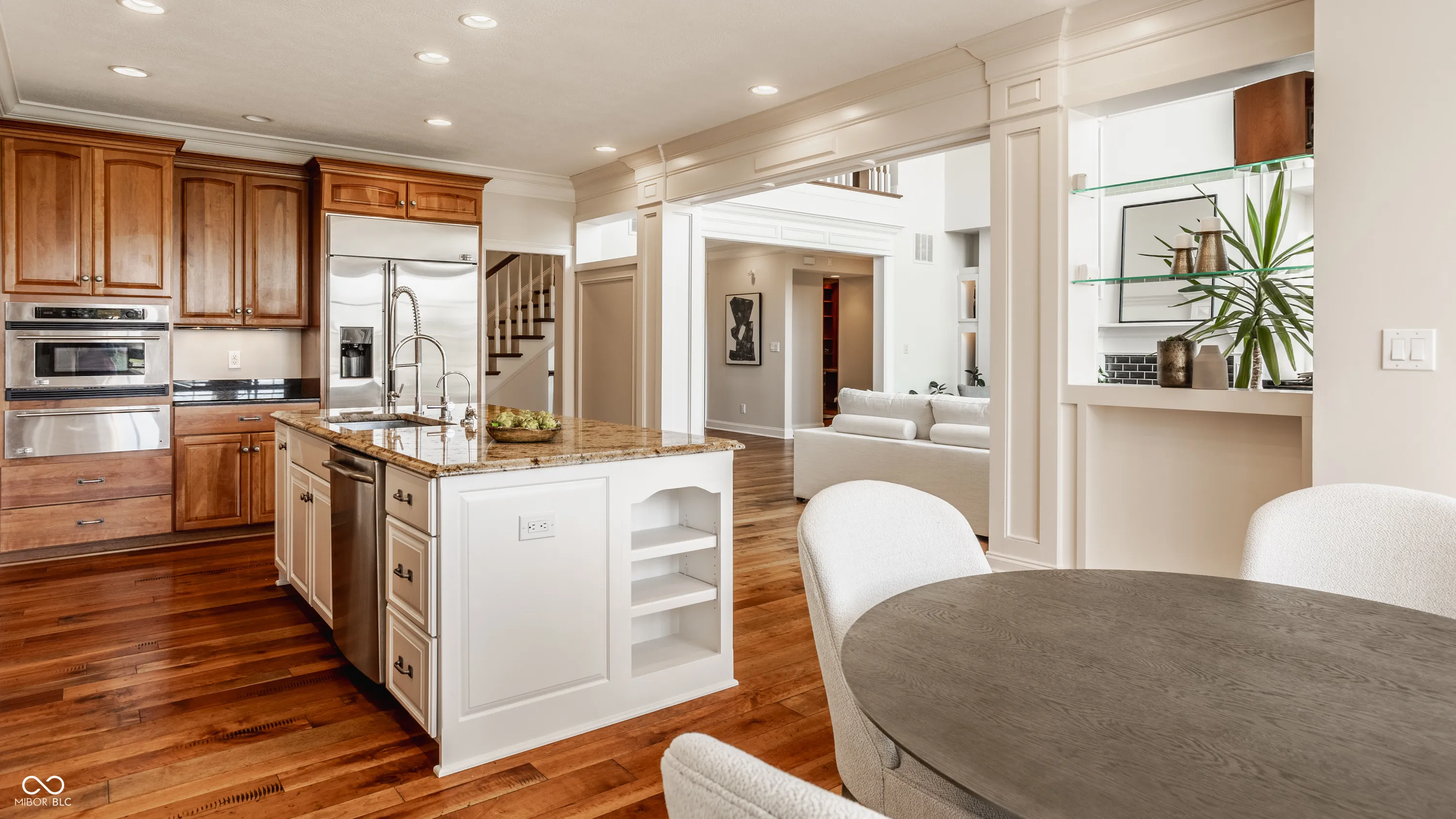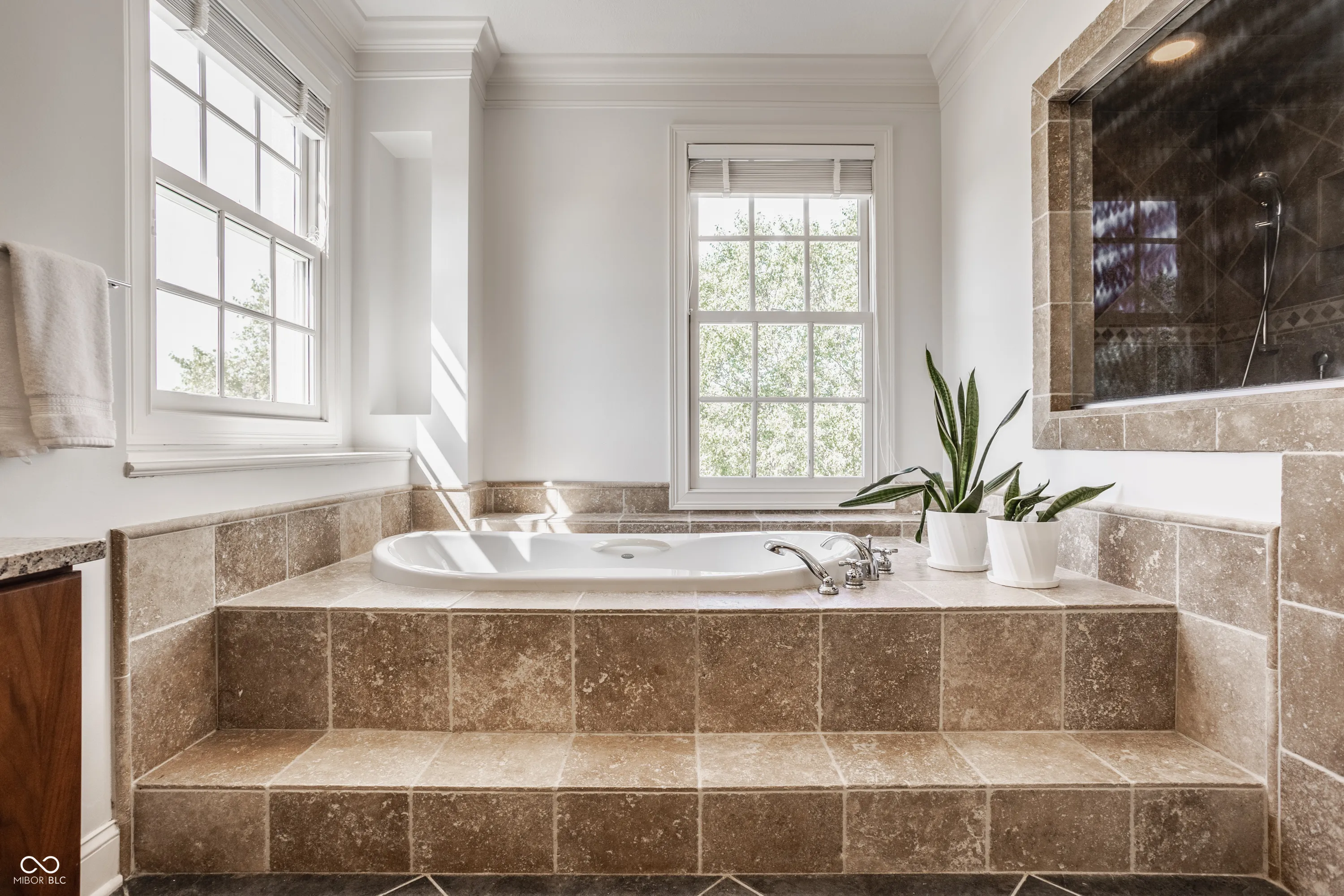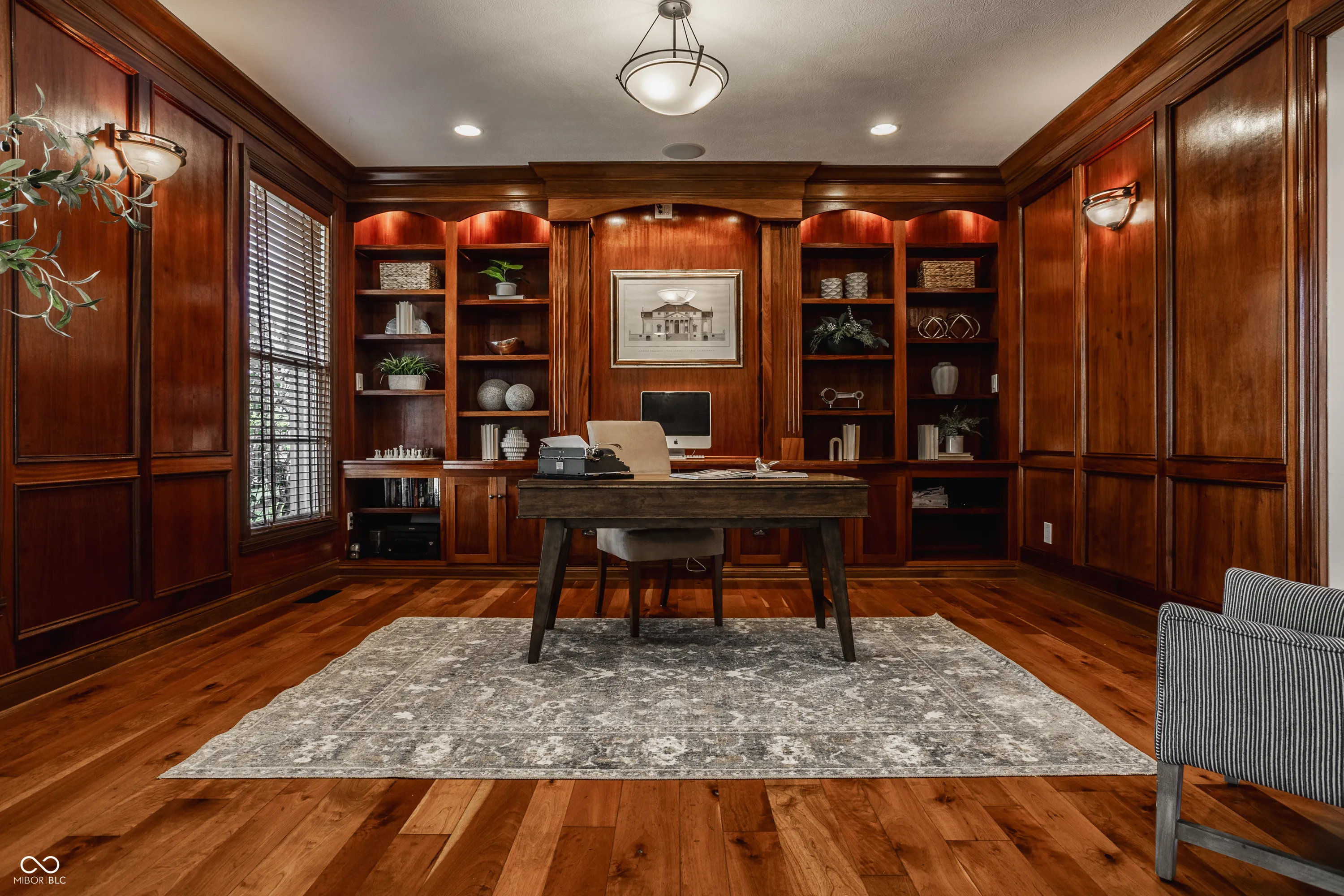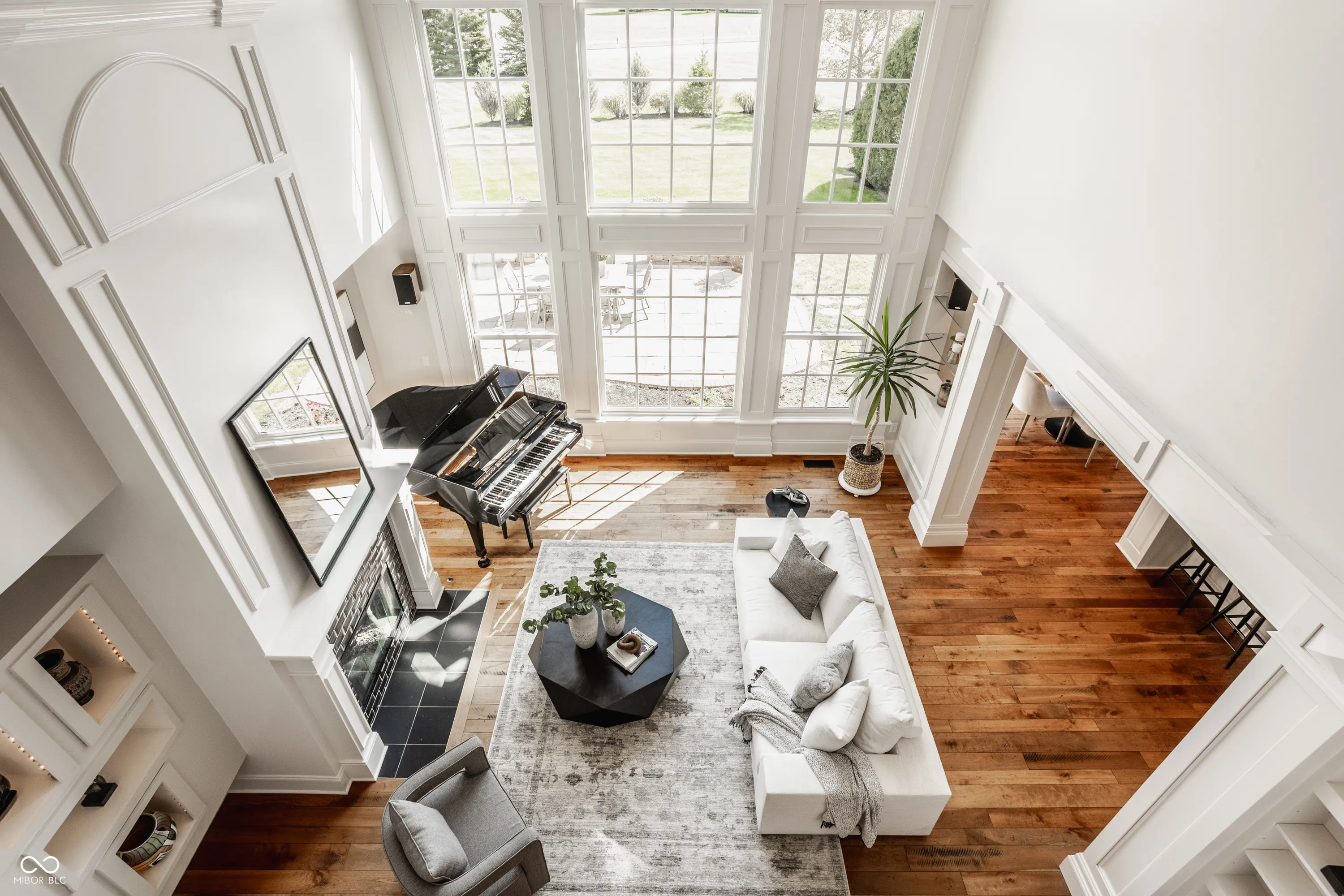 Welcome to this stunning, original-owner home built by renowned builder Will Wright, located in the highly sought-after Village of West Clay, one of a small number of Will Wright estate lot homes in the community. Situated on a sprawling estate lot just under half an acre, this majestic residence boasts timeless traditional Regency style architecture with undeniable curb appeal. The exterior showcases antiqued brick with eifs surround oversized windows and a charming custom iron balcony, creating a grand yet inviting entrance. Step inside and be greeted by soaring cathedral ceilings and expansive floor-to-ceiling windows in the great room, all accentuated by intricate coffered ceilings and custom woodwork, a hallmark of this home’s exceptional craftsmanship. The attention to detail continues throughout, with beautifully detailed trim and custom millwork that make this home truly one of a kind, elevating each room with a unique touch not commonly found in today’s market. The chef’s kitchen, complete with new appliances included in the sale, offers plenty of space for preparing gourmet meals and flows seamlessly into the bright and airy eat-in kitchen area. The mudroom and breezeway entrance add convenience, while the elegant wood front door serves as a striking focal point. The home’s custom woodwork extends into the library, creating a sophisticated and functional workspace. Offering a total of 6 bedrooms and 4.5 baths across 7,200 total square feet, this home is designed for both comfort and style. The upper level features a large primary ensuite offering complete luxury and respite, along with 3 additional bedrooms and 2 bathrooms. The lower level offers abundant storage, a spacious recreation area, and 2 additional bedrooms connected by a Jack and Jill bath. Outside, enjoy the expansive paver patio surrounded by lush landscaping, overlooking the large estate lot -perfect for entertaining or simply relaxing in your own private oasis.