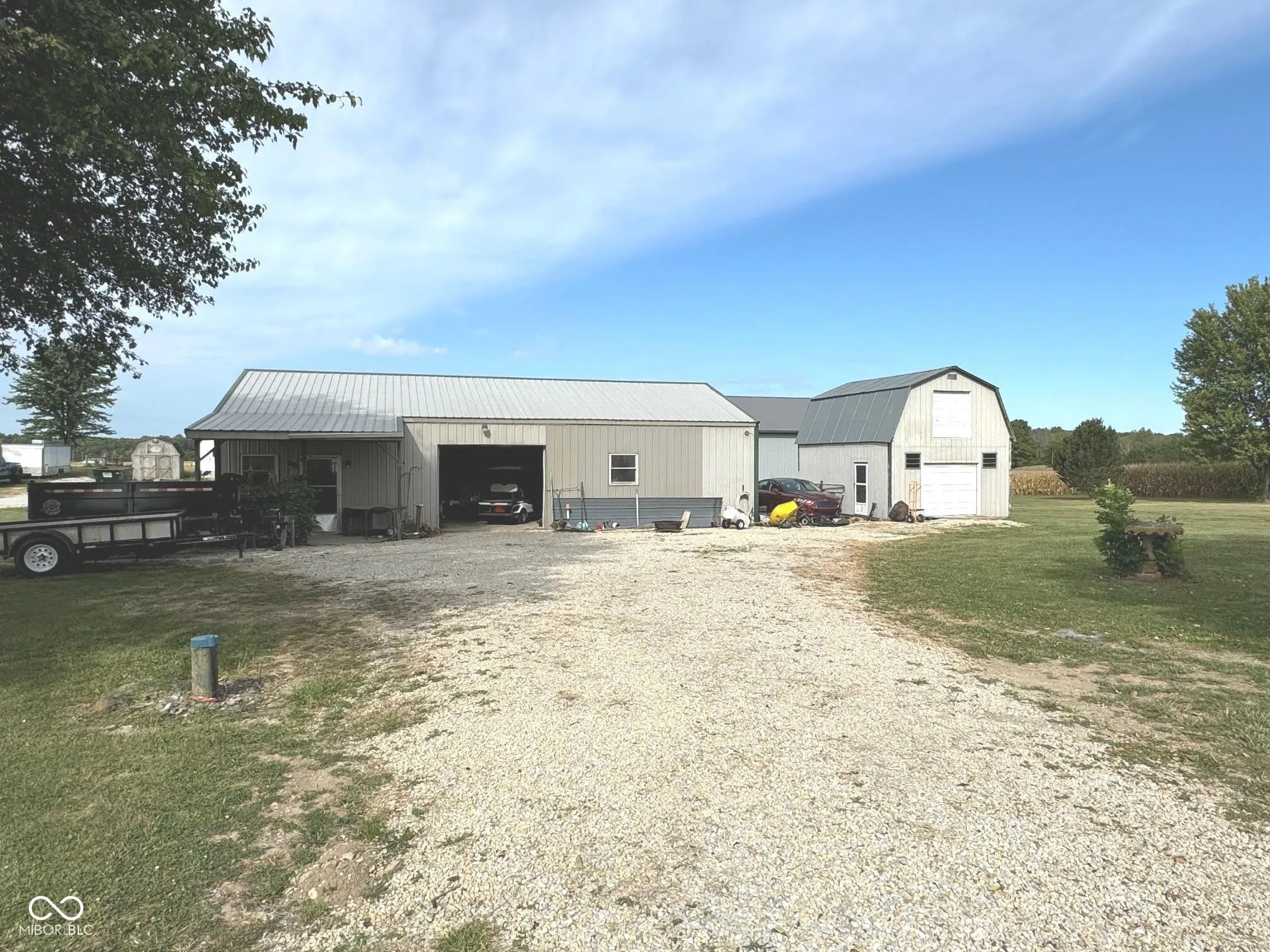 Centrally located between Greensburg and Rushville, this charming 3 bedroom / 2.5 bath home sets on 1.67 acres and has so much to offer. The first floor of the home offers a large living room, kitchen and dining area. Kitchen has beautiful solid surface counter tops, SS appliances, cabinetry and a large island! Laundry room is tucked away by the garage door with the washer and dryer staying! Also on the first floor is the primary bedroom / bathroom with walk in closets and ample room for an owner’s suite. Upstairs you will find a loft area separating 2 nice size bedrooms and a full bath. Enjoy the outdoors on the covered front porch or large covered back deck. If there is not enough space in the 2-car attached garage you will find additional space in the 30×50 heated pole building with service door, overhead garage door, an office area, and a large half bathroom. The additional storage shed remains as well! Many recent updates include foam insulation in the house, updated vinyl windows, and vinyl flooring. Property has a well and 2 septic systems – one for house and barn. Call this one your home today!