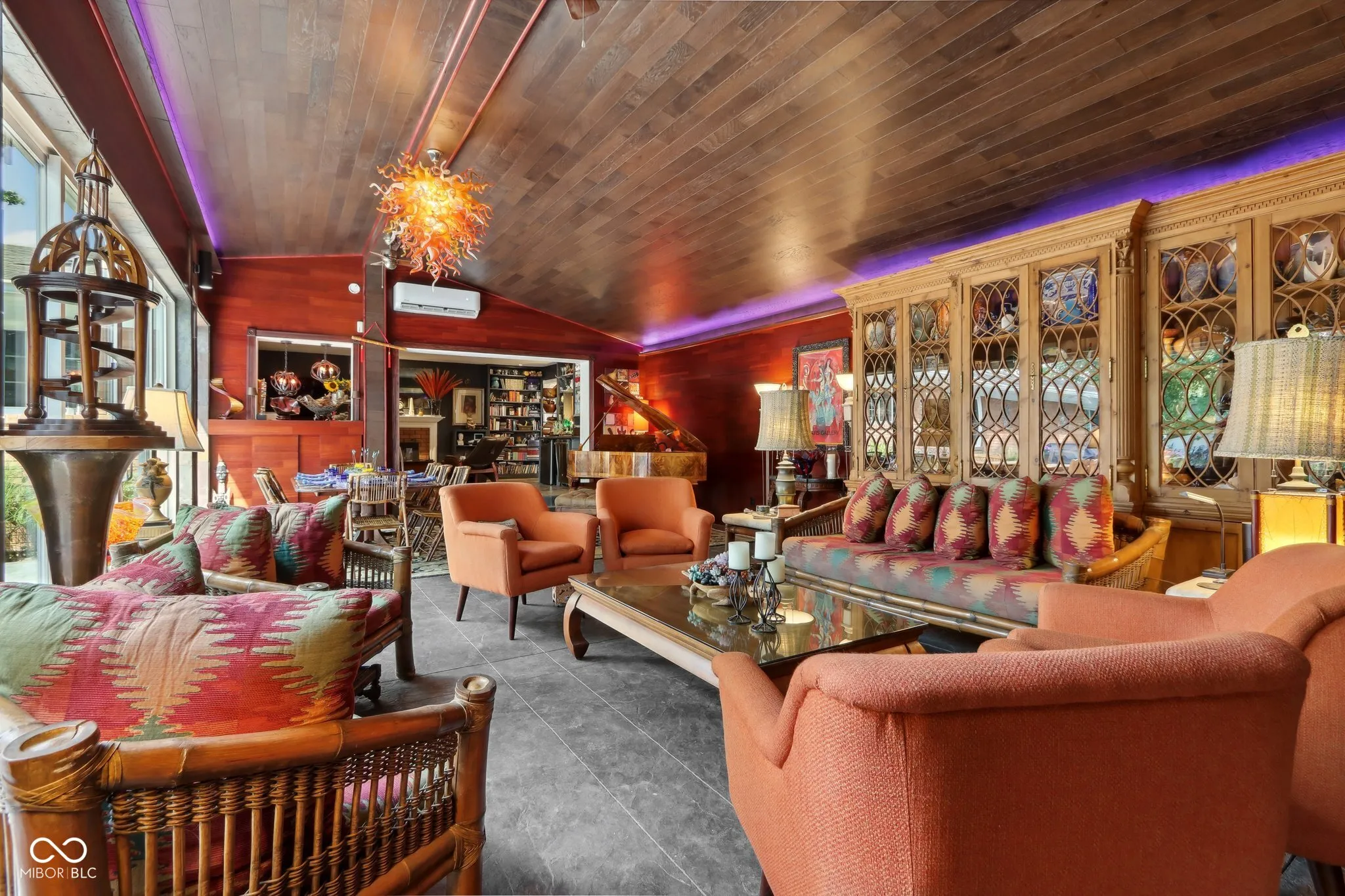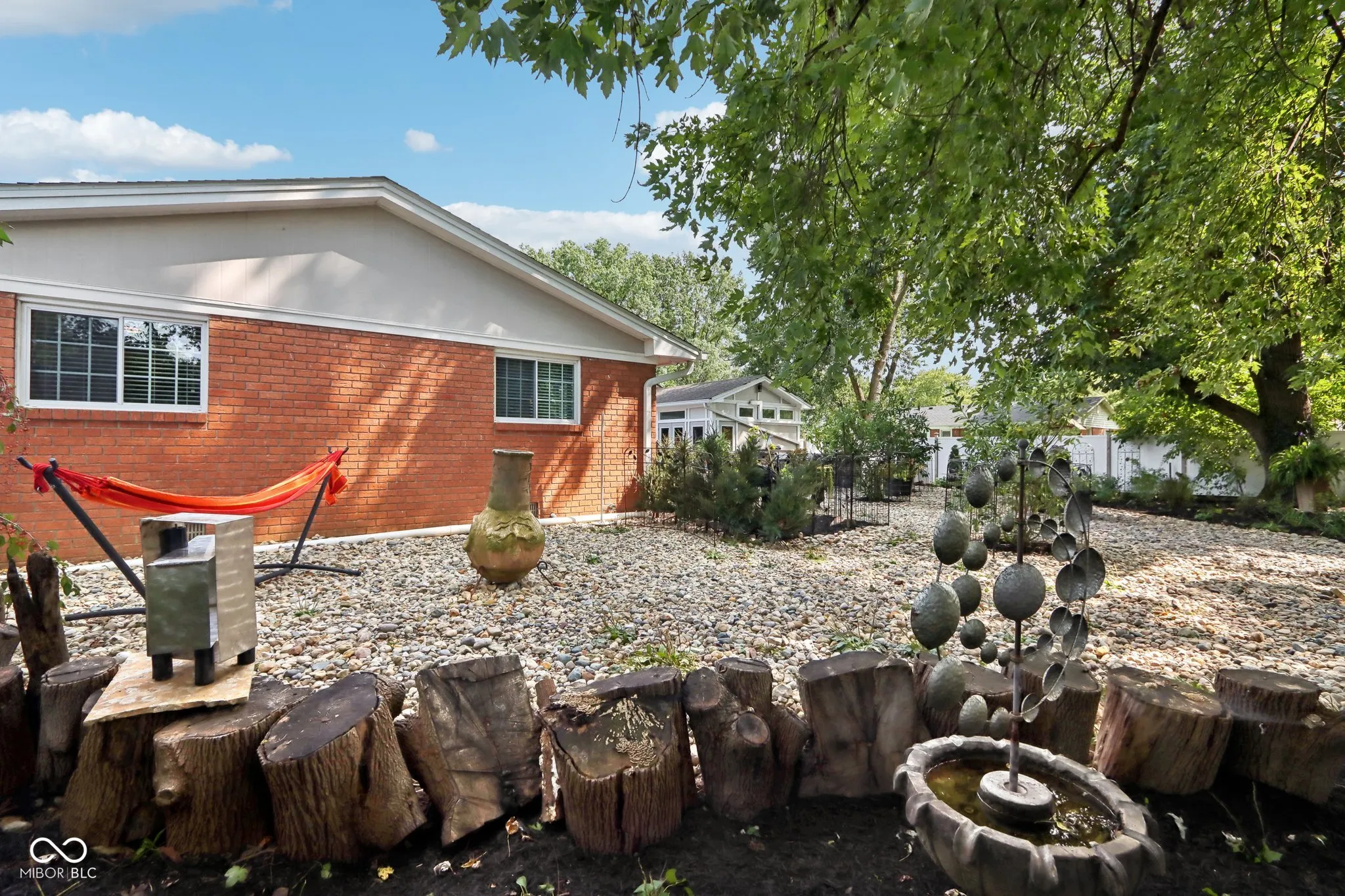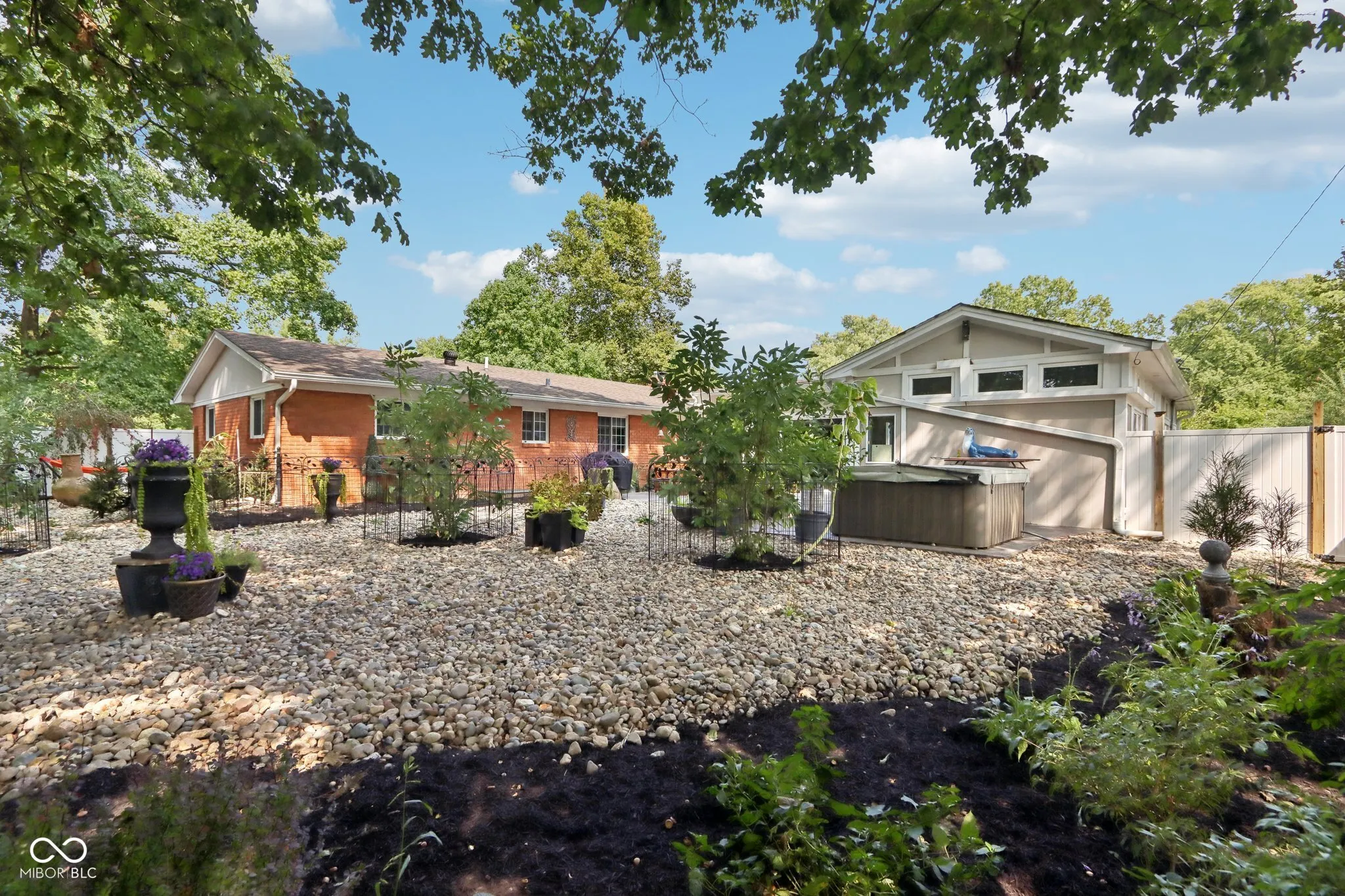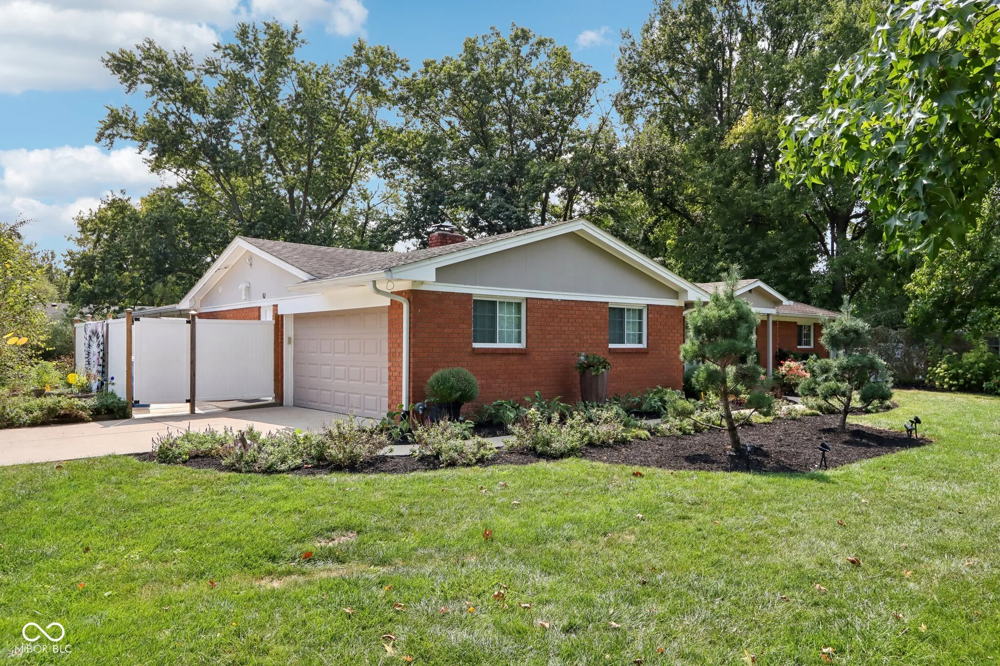 Experience the magic of this extraordinary mid-century home, set on a beautifully landscaped half-acre lot in the sought-after Tanglewood neighborhood. Custom night lighting transforms the property into a private, enchanting retreat, while the fully enclosed backyard, complete with a bubbling fountain and hot tub offers a serene oasis for relaxation. Step inside to a seamless blend of mid-century charm and modern elegance, highlighted by a significant addition and renovation by an architect renown for mid-century detail. The expansive layout includes stunning design choices, all on a single level. Multiple spaces provide comfort and relaxation, including a cozy hearth room, a vaulted great room ideal for entertaining, and a lovely solarium where you can enjoy nature in comfort year-round. Other updated features include granite tile bathrooms, a towel warmer in the primary bath, a chef-designed kitchen, an outdoor shower, a tankless water heater. Conveniently located near some of the best shopping and dining in Indianapolis, this home also offers easy interstate access for maximum convenience. Washington Township schools. The heated garage has polyaspartic flooring, washer & dryer, utility sink and an ice machine. Pet owners will appreciate the thoughtful inclusion of an electronic pet door, adding to the many well-designed features of this exquisite home. This rare gem combines architectural excellence, modern luxury, and a prime location-an opportunity not to be missed!