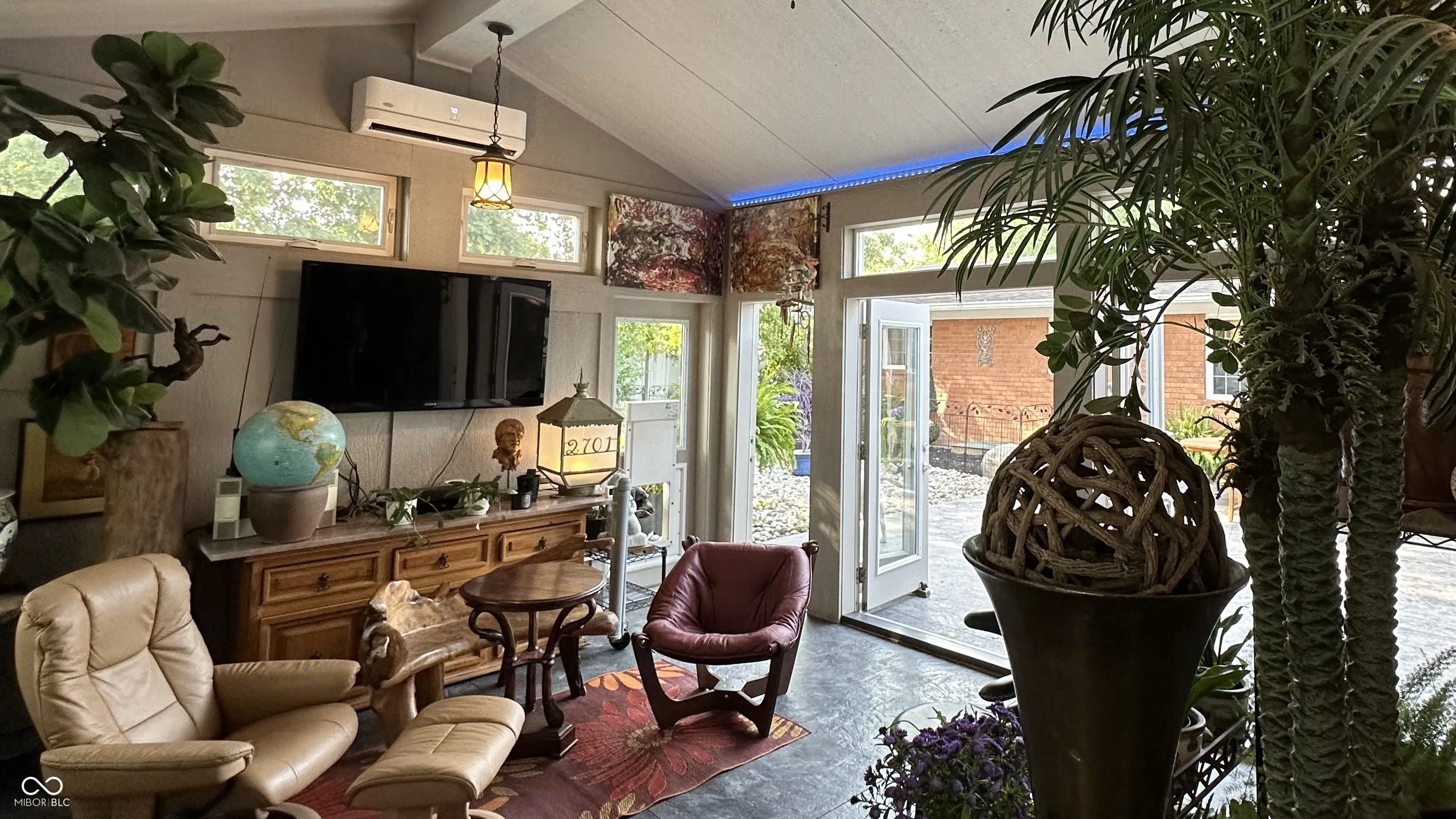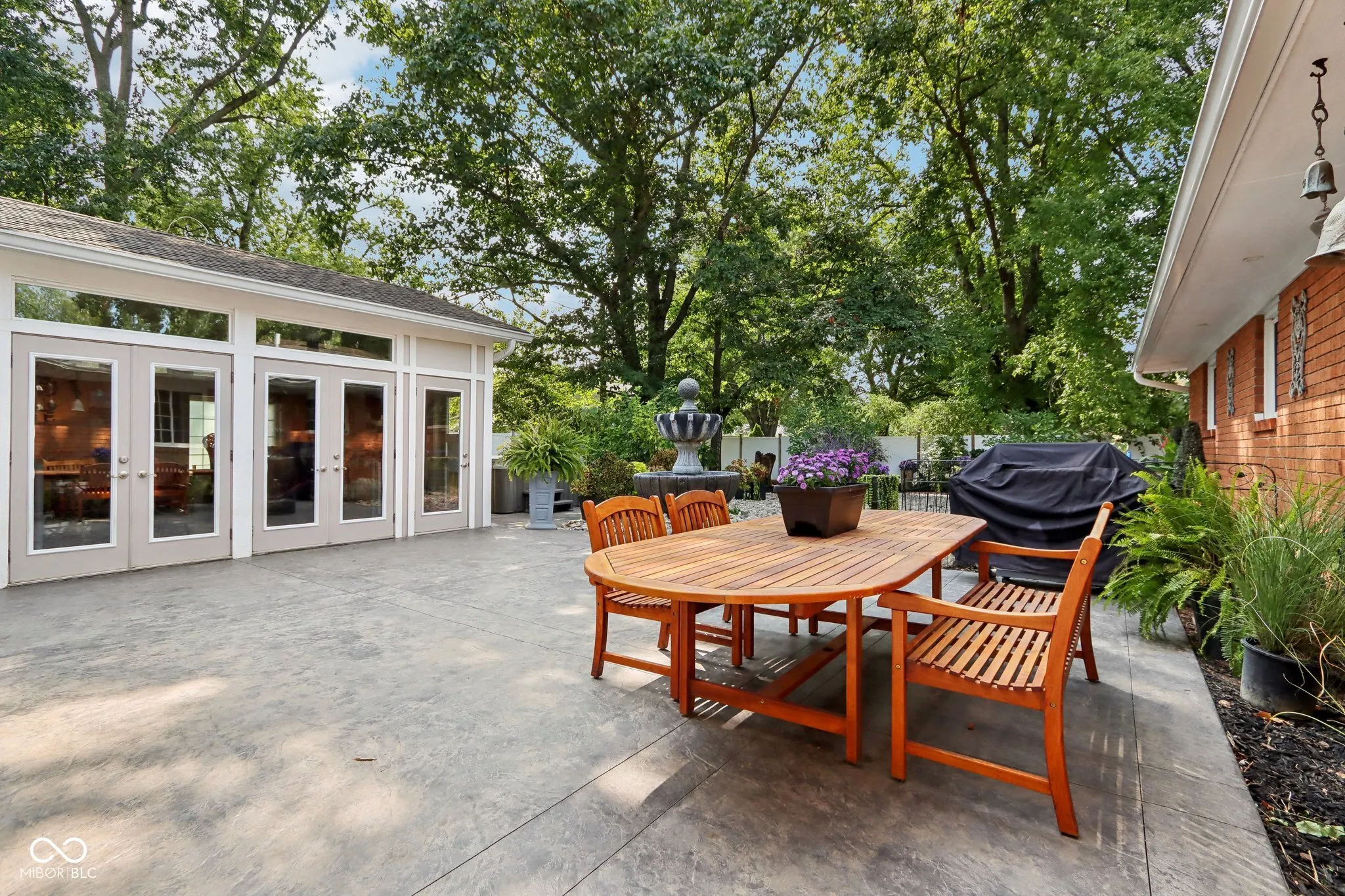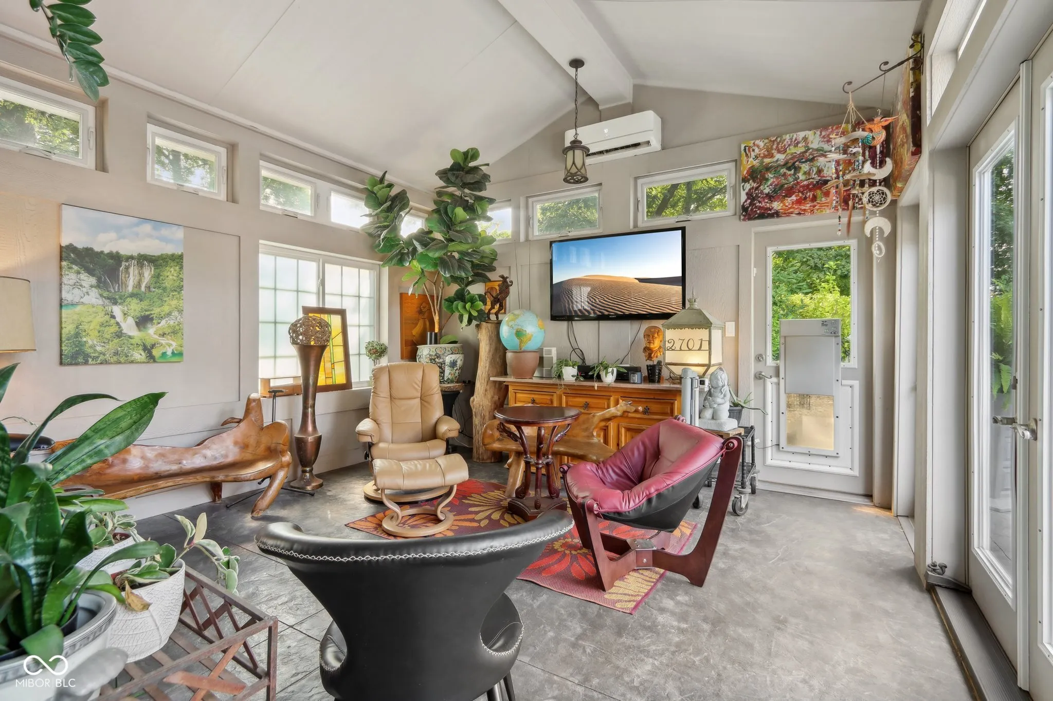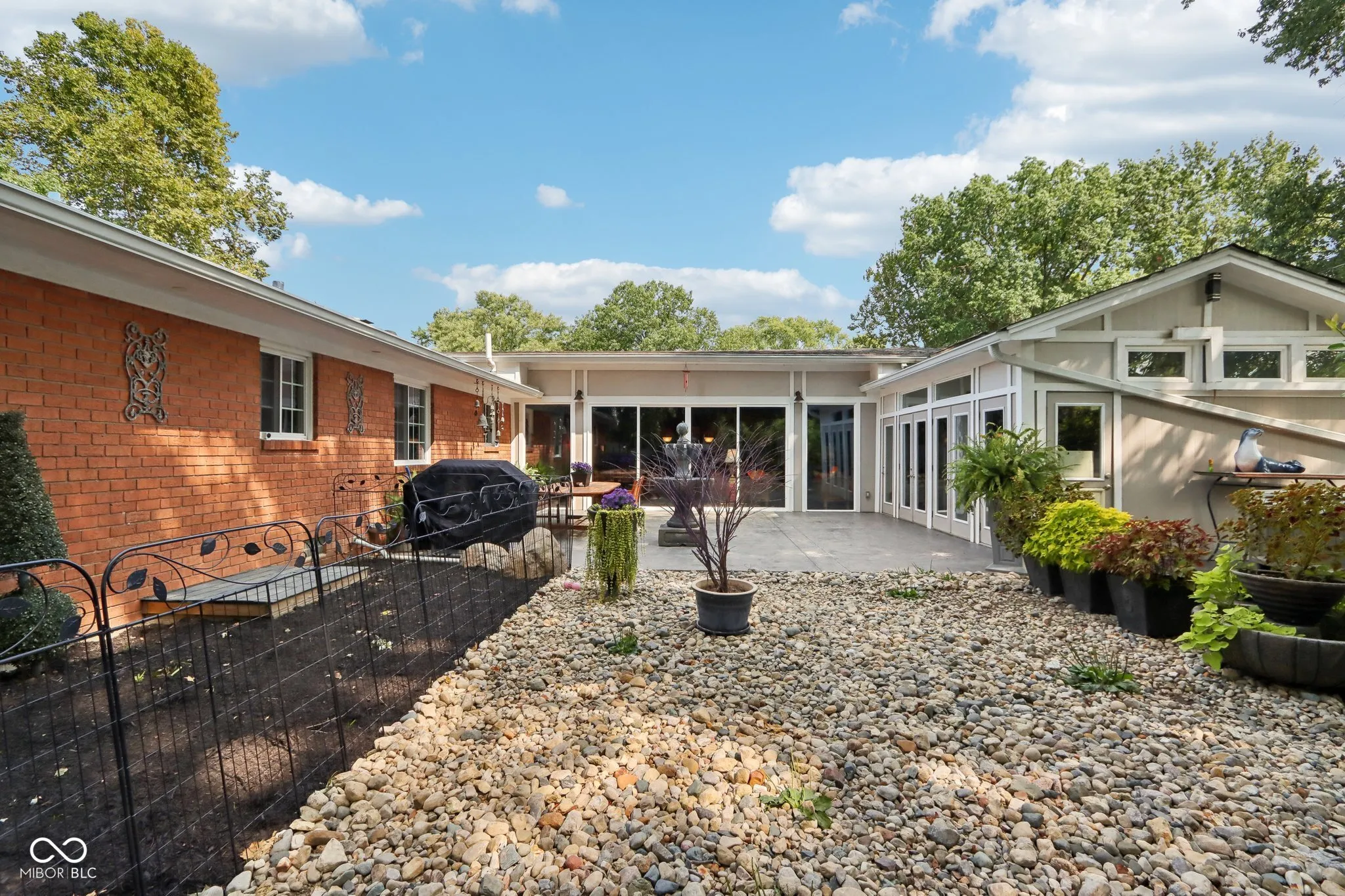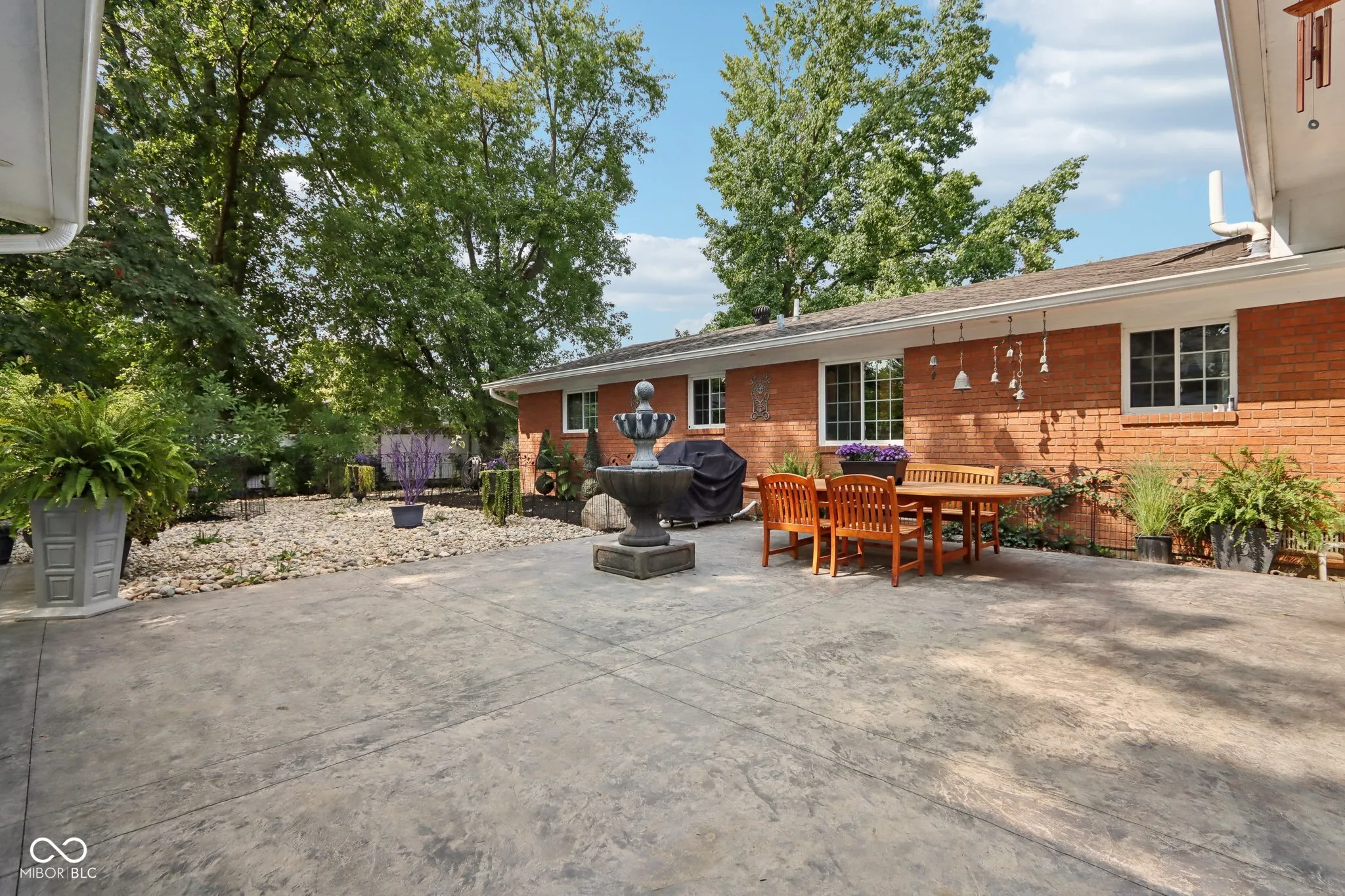Experience the magic of this extraordinary mid-century home, set on a beautifully landscaped half-acre lot in the sought-after Tanglewood neighborhood. Custom night lighting transforms the property into a private, enchanting retreat, while the fully enclosed backyard, complete with a bubbling fountain and hot tub offers a serene oasis for relaxation. Step inside to a seamless blend of mid-century charm and modern elegance, highlighted by a significant addition and renovation by an architect renown for mid-century detail. The expansive layout includes stunning design choices, all on a single level. Multiple spaces provide comfort and relaxation, including a cozy hearth room, a vaulted great room ideal for entertaining, and a lovely solarium where you can enjoy nature in comfort year-round. Other updated features include granite tile bathrooms, a towel warmer in the primary bath, a chef-designed kitchen, an outdoor shower, a tankless water heater. Conveniently located near some of the best shopping and dining in Indianapolis, this home also offers easy interstate access for maximum convenience. Washington Township schools. The heated garage has polyaspartic flooring, washer & dryer, utility sink and an ice machine. Pet owners will appreciate the thoughtful inclusion of an electronic pet door, adding to the many well-designed features of this exquisite home. This rare gem combines architectural excellence, modern luxury, and a prime location-an opportunity not to be missed!