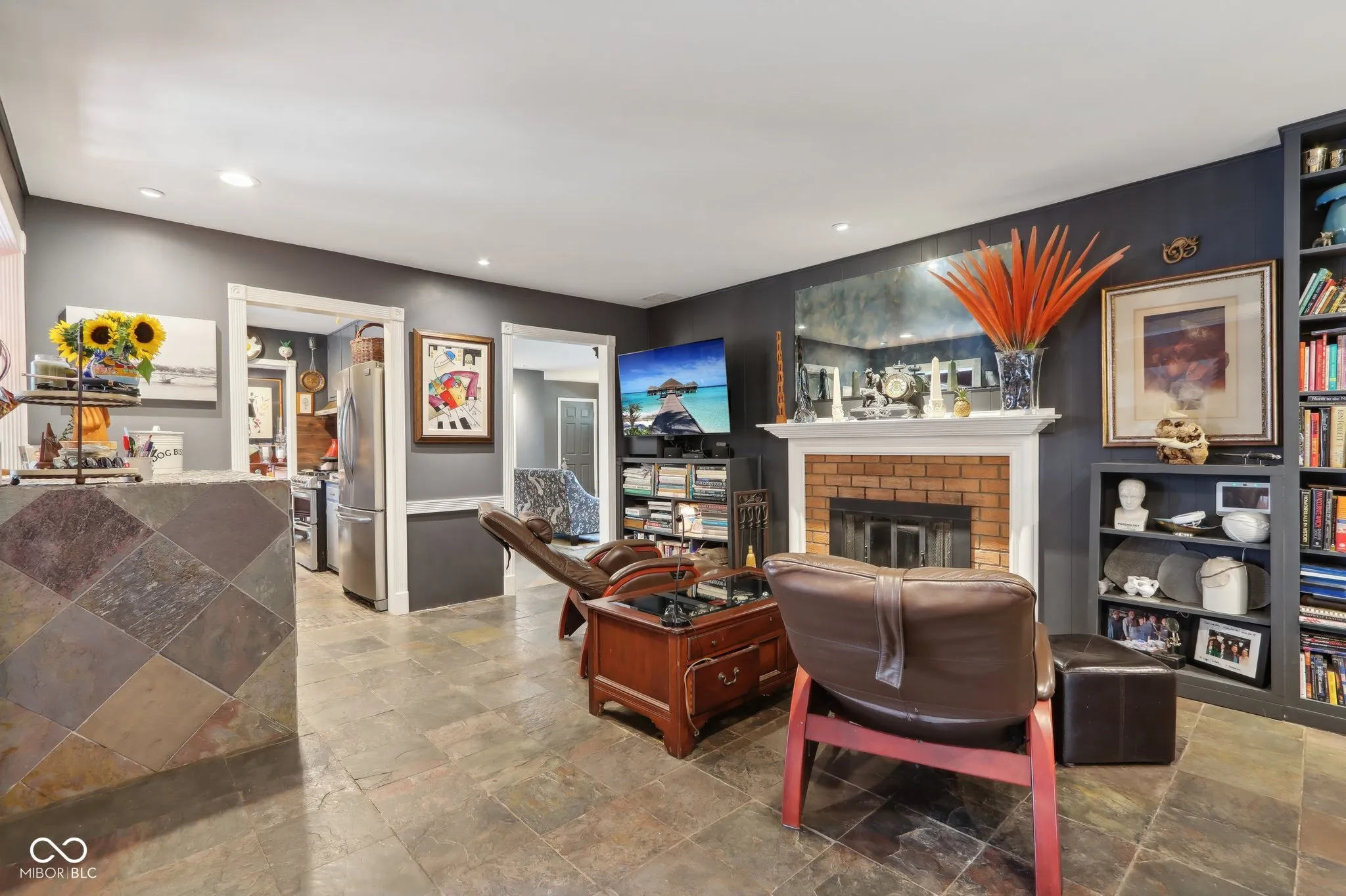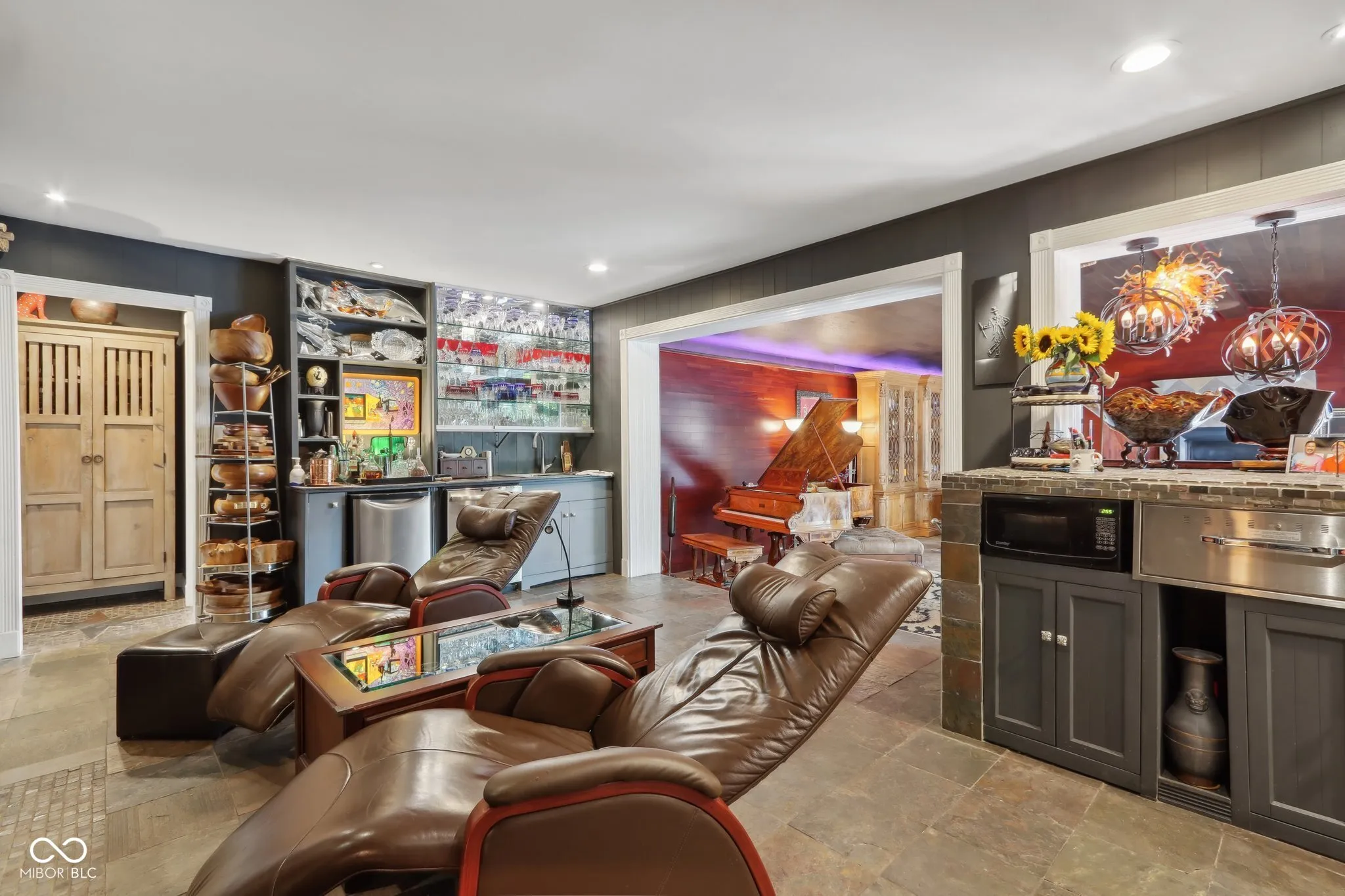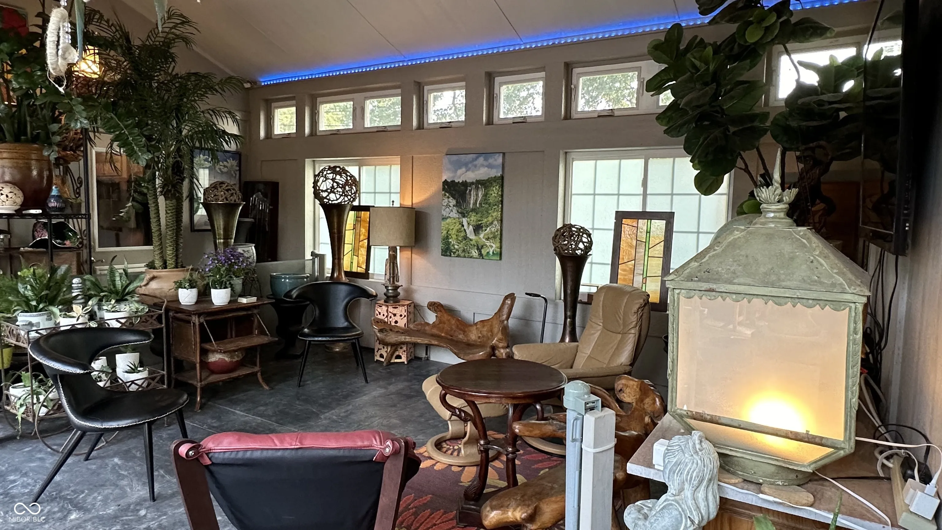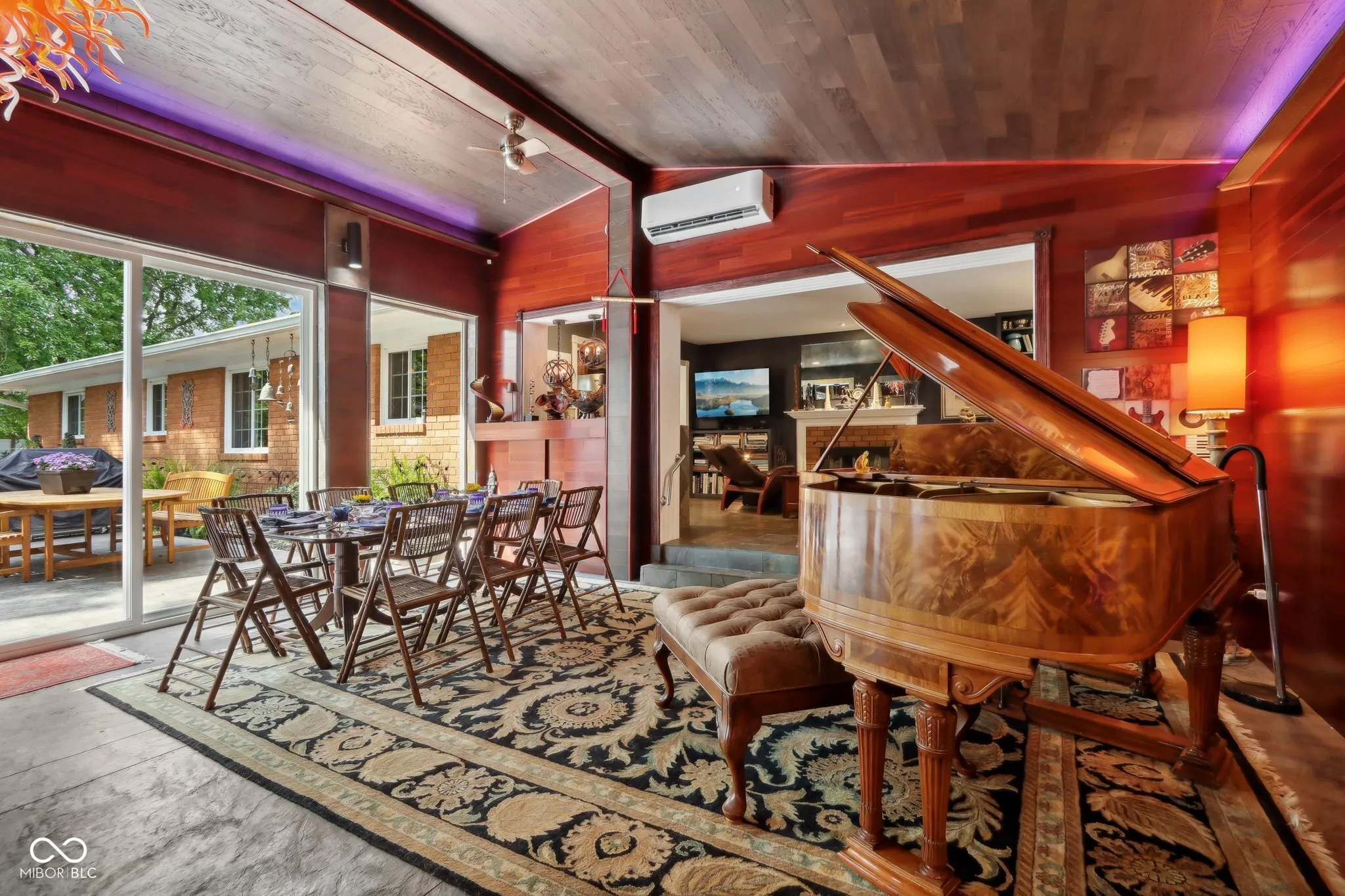 Experience the magic of this extraordinary mid-century home, set on a beautifully landscaped half-acre lot in the sought-after Tanglewood neighborhood. Custom night lighting transforms the property into a private, enchanting retreat, while the fully enclosed backyard, complete with a bubbling fountain and hot tub offers a serene oasis for relaxation. Step inside to a seamless blend of mid-century charm and modern elegance, highlighted by a significant addition and renovation by an architect renown for mid-century detail. The expansive layout includes stunning design choices, all on a single level. Multiple spaces provide comfort and relaxation, including a cozy hearth room, a vaulted great room ideal for entertaining, and a lovely solarium where you can enjoy nature in comfort year-round. Other updated features include granite tile bathrooms, a towel warmer in the primary bath, a chef-designed kitchen, an outdoor shower, a tankless water heater. Conveniently located near some of the best shopping and dining in Indianapolis, this home also offers easy interstate access for maximum convenience. Washington Township schools. The heated garage has polyaspartic flooring, washer & dryer, utility sink and an ice machine. Pet owners will appreciate the thoughtful inclusion of an electronic pet door, adding to the many well-designed features of this exquisite home. This rare gem combines architectural excellence, modern luxury, and a prime location-an opportunity not to be missed!