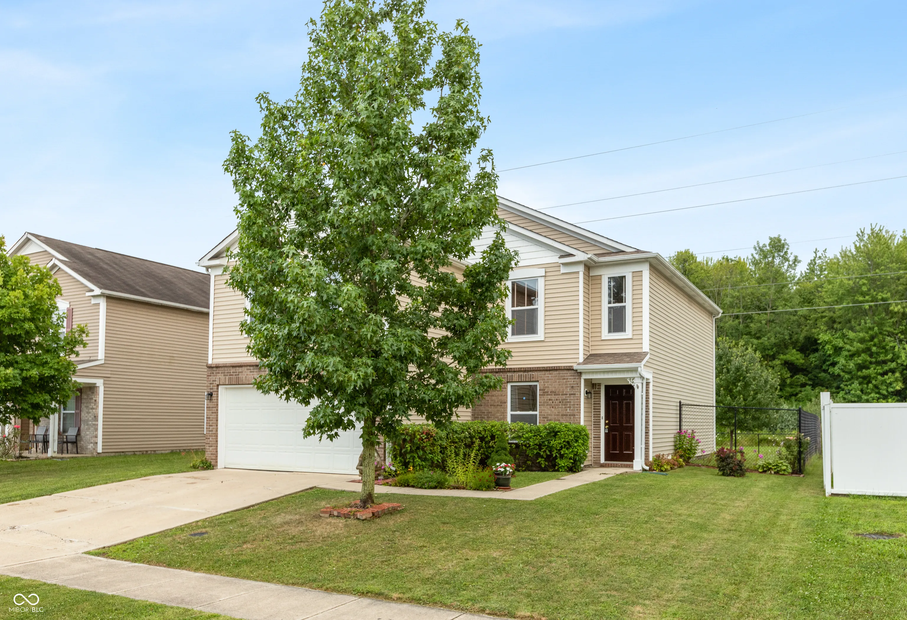 Step into the comfort of this charming 3-bedroom, 2.5-bathroom home in the sought-after Franklin Township school district of Southeast Indy. Built in 2008 and encompassing 2,411 square feet of living space, this two-story residence combines modern amenities with cozy living. As you enter, you’ll be greeted by new vinyl plank flooring that sets the tone for a beautifully maintained home. The open floor plan on the main level seamlessly connects the living room to the kitchen, featuring a large dining area ideal for family gatherings and entertaining guests. The kitchen is equipped with ample storage and prep space, making it a dream to cook in. Upstairs, indulge in the comfort of new carpeting that extends throughout, including into the expansive loft. This versatile space offers potential for conversion into a fourth bedroom or can be used as a home office, playroom, or additional living area, adapting to your lifestyle needs. The attached 2-car garage provides convenient access and additional storage solutions. Notably, the home boasts a new heat pump and a roof that’s only 7 years old, ensuring peace of mind for years to come. One of the home’s most enchanting features is its private backyard, which backs onto a lush common area filled with mature trees, ensuring privacy and serene views – no backyard neighbors in sight! Located in a community known for its excellent schools and family-friendly atmosphere, this home is perfect for those looking to plant roots in a vibrant neighborhood. Don’t miss the chance to make this house your home!