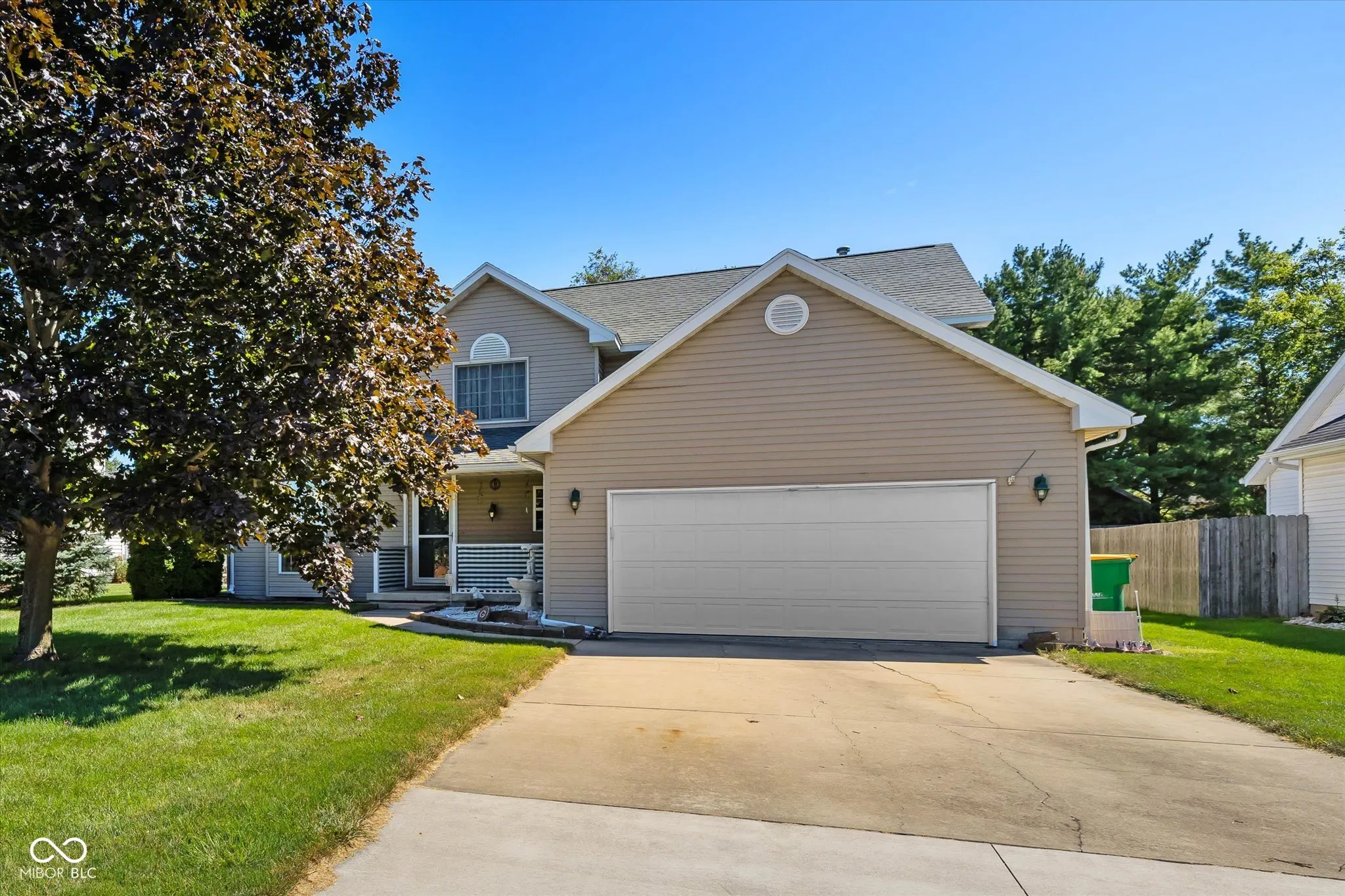 Welcome to your dream home! This stunning two-story residence (1,821 sq. ft) offers 3 bedrooms, 3.5 bathrooms, and is conveniently located across from the local middle school and high school. Connected to city water and city sewer, buyers will enjoy the views of the school tennis courts from their covered front porch. Inside this loving home, the expansive living room with vaulted ceilings and the extra-large kitchen (painted 2024) with backyard views are perfect for hosting and entertaining. The main floor contains a flex room with a glass sliding door leading to the freshly painted back deck (2024) adorned with a pergola (stays with property) and overlooking the low-maintenance green lawn with a magnificent Weeping Willow tree. Upstairs, the primary bedroom has a large walk-in closet and an attached bathroom with a jacuzzi tub and spacious shower. Each additional bedroom boasts its own full bathroom, ensuring privacy and comfort for all. Storage is a priority for this home with an extra deep 2 car garage (nearly 500 sq. ft) with 10-foot ceilings and a workspace. Also, a large attic and an outdoor storage shed (10′ x 11′). This well-maintained home comes equipped with a water softener, washer and dryer, refrigerator/freezer, plus a pre-paid 1-Year Home Warranty covering the home and its major systems, for the buyer’s peace of mind. On the market for the first time in 28 years. Average Estimated Utilities: Duke Energy: $103.79 Nipsco Gas: $50.29
