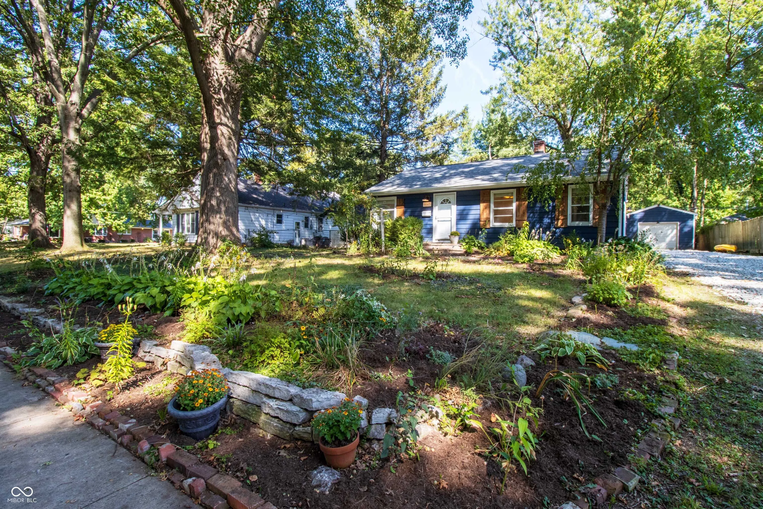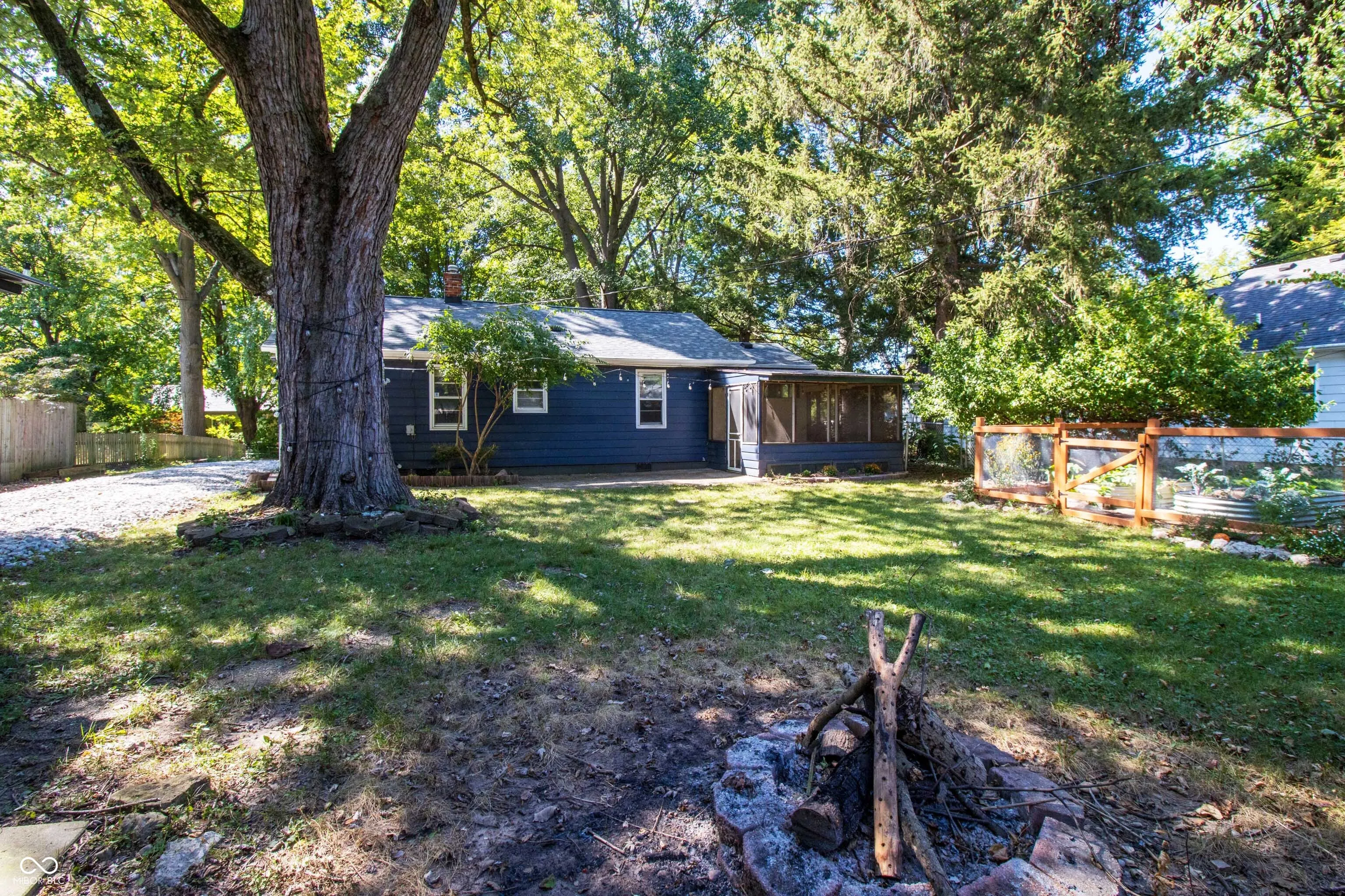 This charming home, set in a vibrant area of Indianapolis, features 2 bedrooms, 1 full bath, and a versatile flex space that can easily be converted into an additional bedroom or office. Recent updates include: a beautifully remodeled kitchen with custom blue herringbone tile, butcher block countertop and stainless steel appliances; a refreshed bathroom with new sink vanity, shower fixtures, cabinet and shelving; and a newer roof and gutters with guards (September 2022). In addition, original hardwood floors were refinished and the home has updated lighting fixtures throughout. Outside, enjoy a screened-in porch, a large paved patio, and a fenced-in raised garden bed.The yard, a designated wildlife retreat, boasts over 1,000 blooming bulbs, fruit trees, and more. Located near Canterbury Park and the Monon Trail, the home is also just a few miles from Broad Ripple Avenue’s dining and entertainment options, blending nature and convenience.