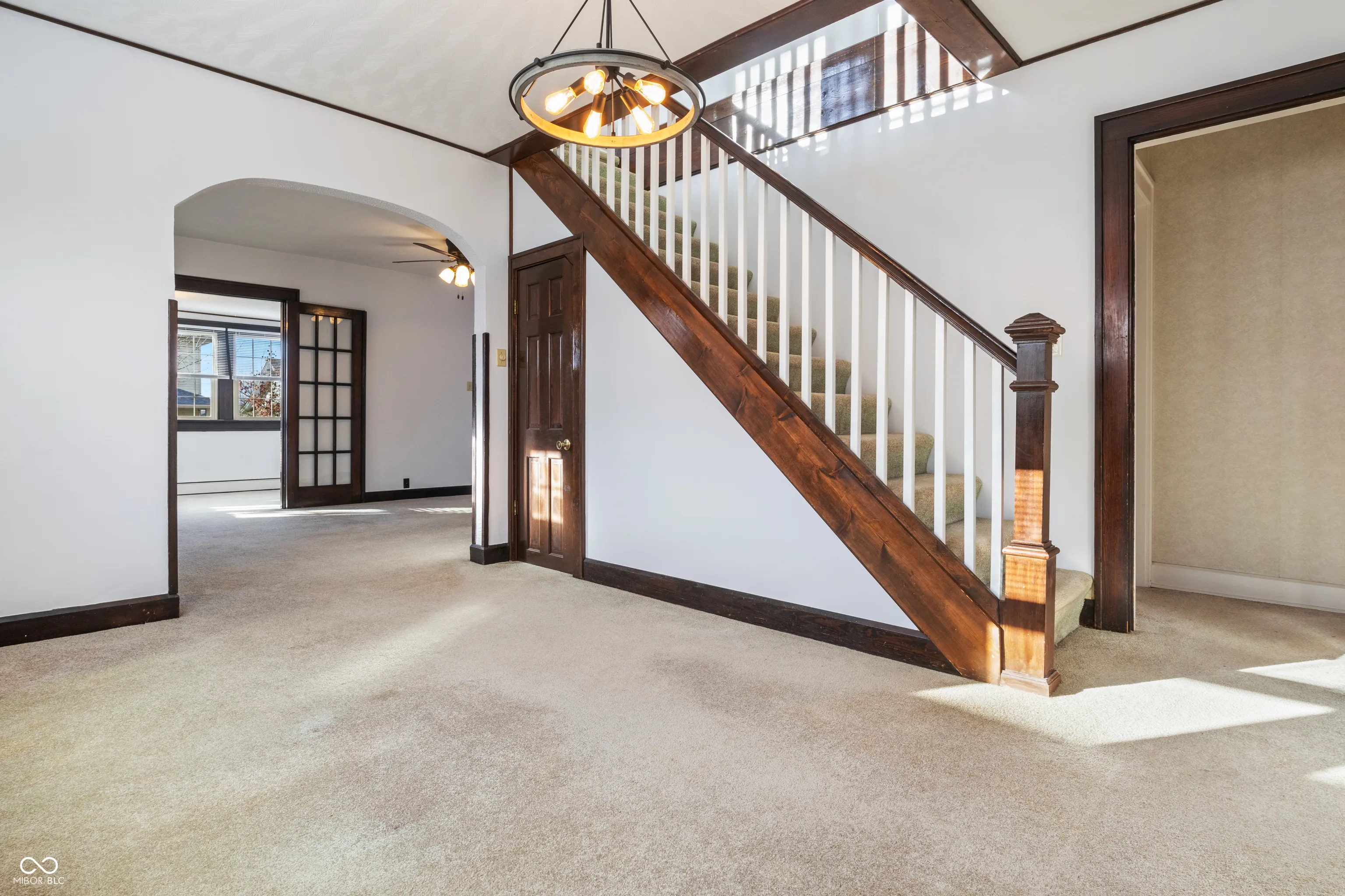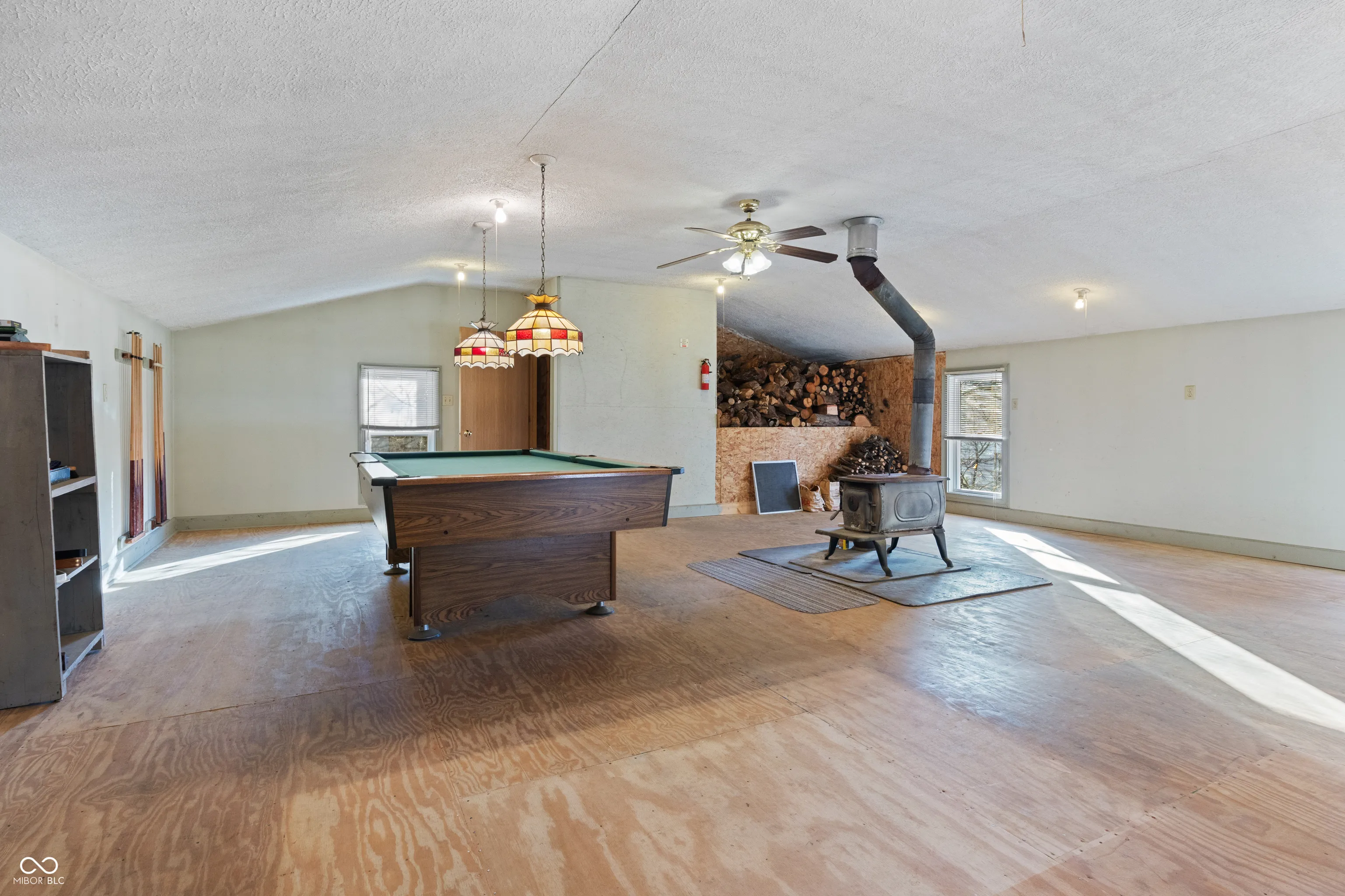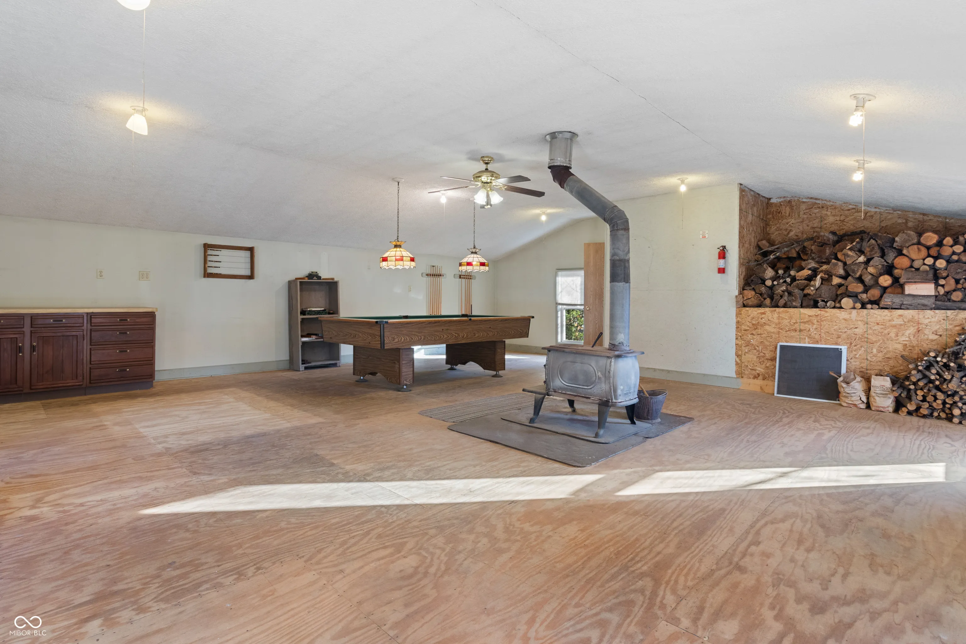 Welcome to this charming 3-bedroom, 2-bath home with a thoughtful floor plan, offering plenty of space for comfort and relaxation. Nestled just east of downtown Indianapolis, you’ll enjoy a quiet neighborhood with friendly neighbors. The backyard is perfect for unwinding or starting your garden. The oversized 2.5-car garage features a second-floor rec room, complete with a wood-burning fireplace and lots of natural light. The layout of the home provides great separation, with the large second-floor owner’s suite offering privacy away from the two bedrooms and shared bath on the main level. You’ll love the open yet distinct dining and living areas, which flow into a sun-filled sunroom with French doors-ideal for a home office. The kitchen shines with new flooring and updated Samsung appliances. Don’t forget about the basement, which offers lots of built-in shelving and vented glass block windows, plus a new washer and dryer to complete the package. This home has it, all-convenience, character, and a welcoming atmosphere.