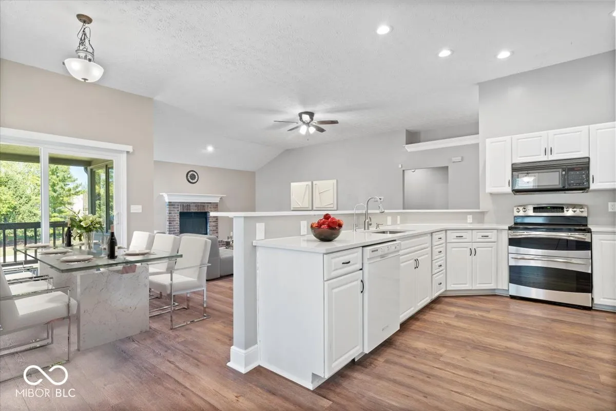 You’ll love this beautifully updated home in one of the best locations in Fishers. It offers an inviting blend of modern amenities and timeless charm. With 3 bedrooms, 3 full bathrooms, and a spacious 2,920 square feet of living space, this home is designed for comfort and style. Step inside and be greeted by the stunning living room, featuring new luxury vinyl wood plank flooring, a masonry wood-burning fireplace, and high ceilings that create an airy, open ambiance. The main floor boasts an open floor plan, seamlessly connecting the living room to the gorgeous kitchen. The kitchen is a chef’s dream, with a massive breakfast bar, ample cabinet space, stainless steel appliances, and a convenient pantry. You will love the views from the main level deck. The primary suite is a true retreat on the main floor, featuring vaulted ceilings, an en-suite bath, and a massive walk-in closet with custom built-in shelving. Two additional generously sized bedrooms on the main floor offer plenty of space for your family, guests, or a home office. Head downstairs to the expansive lower-level basement, perfect for a secondary living area or recreation space. The basement includes two bonus rooms for guest bedrooms, a full bath, and a storage room. Enjoy direct access to the covered patio from the lower level, ideal for outdoor entertaining or simply relaxing by the large backyard.