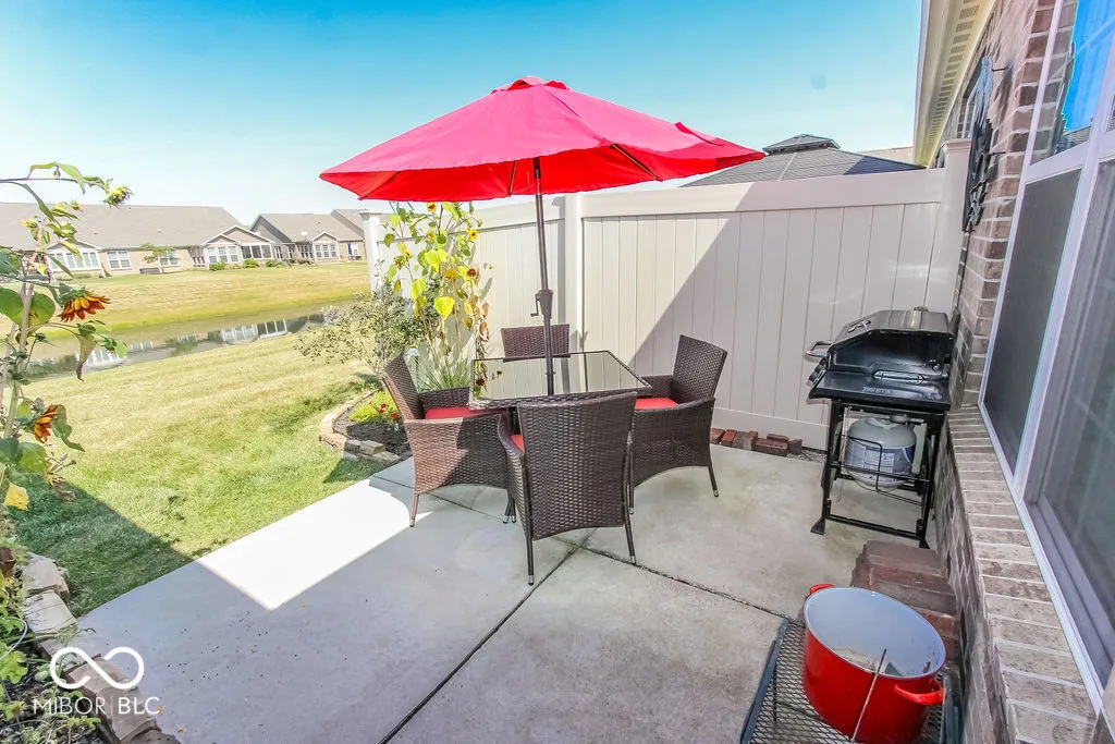 You’ll fall in love with this beautiful 2 Bedroom+Den+Sunroom home, one of the largest in the neighborhood! Gorgeous wide-plank laminate floors welcome you, and are throughout the Living area. Lots of marvelous open space to entertain family and friends with the Kitchen (featuring gas range, stainless appliances and granite counters) that flows to the Living and Dining room. There is also a charming Breakfast Room off of the Kitchen. The Master Suite enjoys a tranquil water view and features a spa-like tiled shower and spacious walk-in closet. The lovely Sunroom is filled with natural light and has not one…but TWO patios, all with a water view! One of the patios has been wired for a hot tub. Relax with a book or enjoy a glass of wine with friends, appreciate the birds and nature right outside your door. No need for a lawnmower or snow shovel, that is taken care of for you, giving you more time to do the things you want to do and the freedom to travel without the worries of your yard and snow. House is pre-wired for alarm. Flag pole in back of home and heater & wall cabinets in garage stay. Excluded: Washer & Dryer, Work Bench in Garage, Landscape Lights (6 front, 6 back), Trellis & Poles in Front Yard, Weather Vane and Bird Houses on pole in Back Yard. HOA is $90/month + $270 2x/year