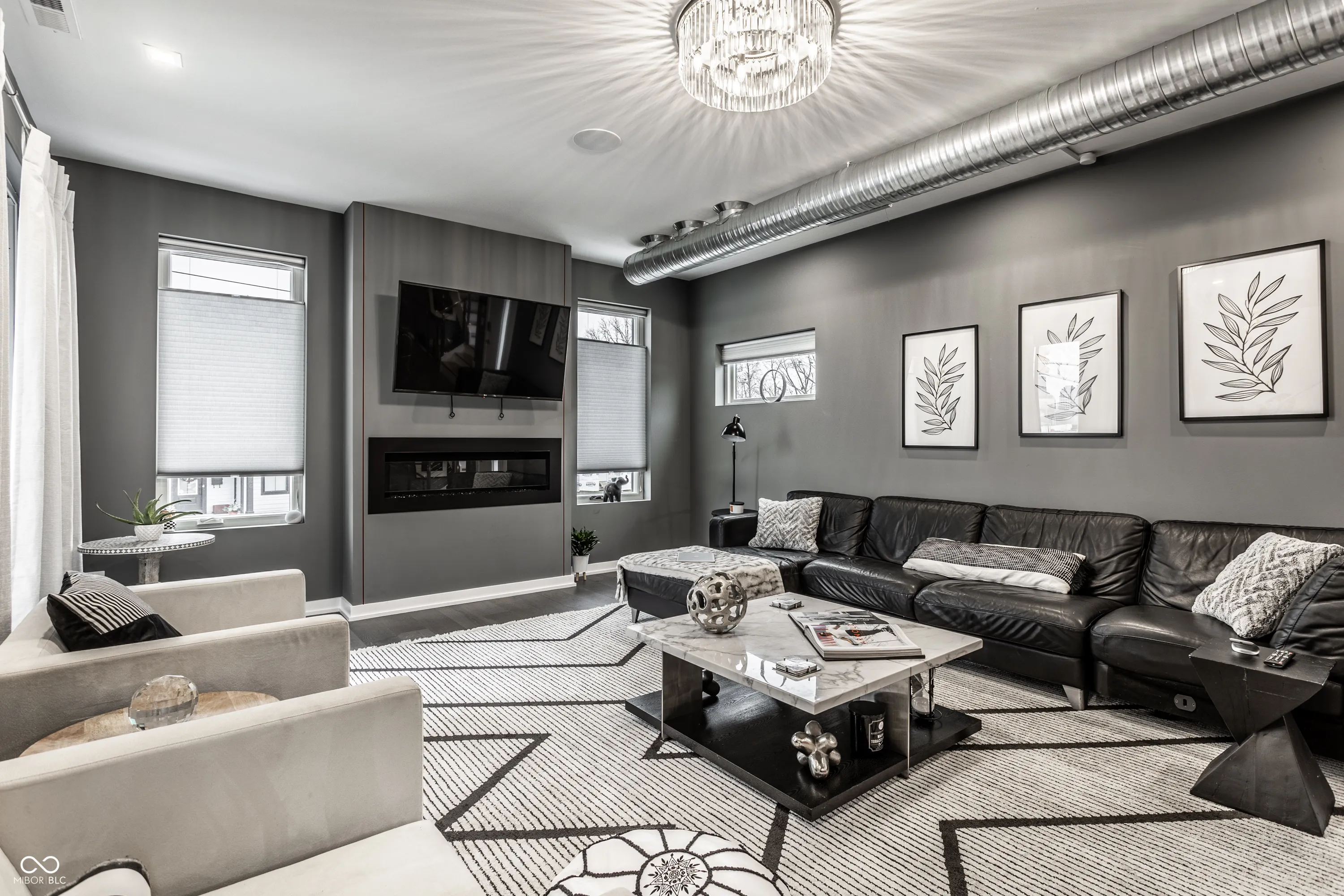 This is a modern one-of-a-kind 4-story home located in prime Fountain Square. This 3 Bedroom, 3.5 bath with 2-car (oversized) garage comes fully furnished with all utilities included. Amenities include two en-suites (one upstairs, one in the 3/4 basement, custom built media center/movie theater in the basement with electric room darkening shades, fenced in private yard, and a private rooftop deck with pergola with an impeccable view of the Downtown skyline. There are two washer and dryer’s included (one in the basement) and one in the upstairs primary closet). Walk 1 block north to Geraldines for some Delmonico steak, wine and live Jazz, or walk a few blocks into Downtown Fountain Square. 5 minute drive to Eli Lilly, Irsay City Way Y, Gainbridge Fieldhouse. Just 8 minute drive or less to Bottleworks. Easy highway access to 65/70. Ask about option to additionally secure the detached carriage space that would grant you an additional studio bed, kitchen, private washer/dryer, and full bath. EV Charge can be installed in the garage if desired.