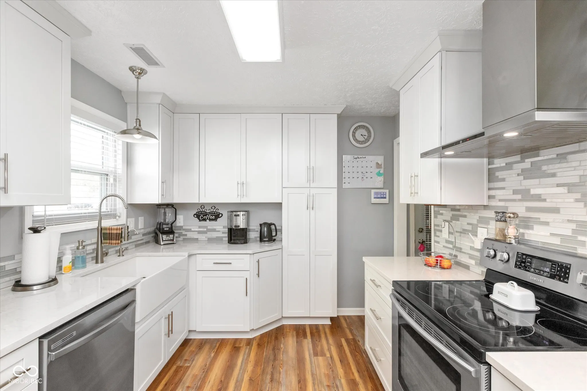 Welcome to this charming, move-in ready ranch home situated on a spacious corner lot in popular River Run. This 3 bedroom, 2 bathroom home boasts a cozy family room with newer LVP flooring, perfect for gathering with loved ones. Discover the spectacular kitchen, beautifully remodeled in 2021, featuring maple wood cabinets, quartz countertops, a tile backsplash, and stainless appliances. The primary suite is a true retreat including an addition with 2 walk-in closets for ample storage space and a luxurious en-suite bath with a double vanity and step-in tiled shower. The property features a finished, insulated garage and a large mini barn, perfect for storing all your outdoor gear. Enjoy the convenience of a water softener, reverse osmosis system, and alarm system already in place. The interior walls have also been insulated! The outdoor space is perfect for entertaining with two back patios already equipped with 220 electrical wiring for a hot tub and a fire pit for those cool evenings, all enclosed with a maintenance free vinyl fence for added privacy. Meticulously maintained, this home is sure to impress even the most discerning buyer. Don’t miss the opportunity to make this your dream home!
