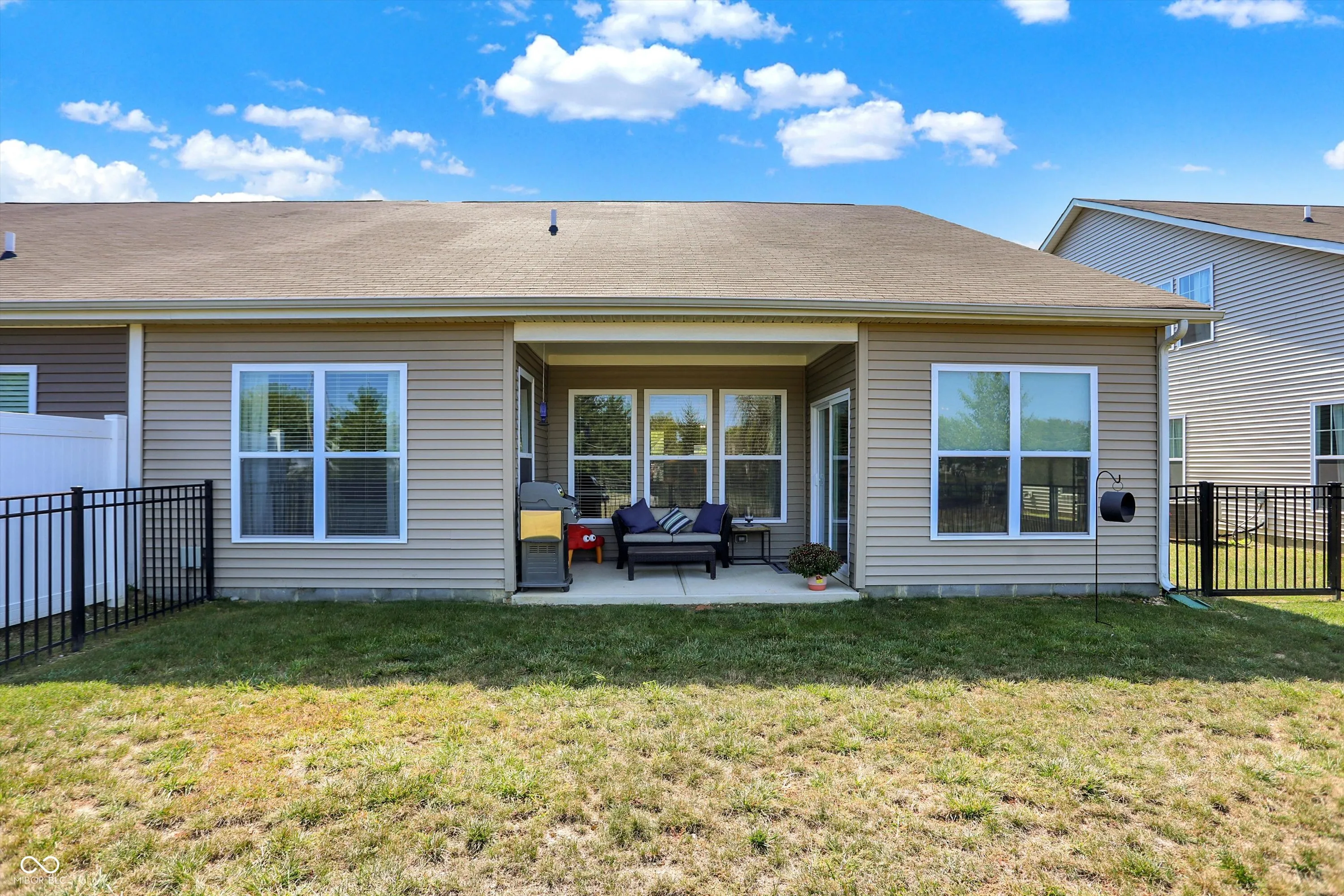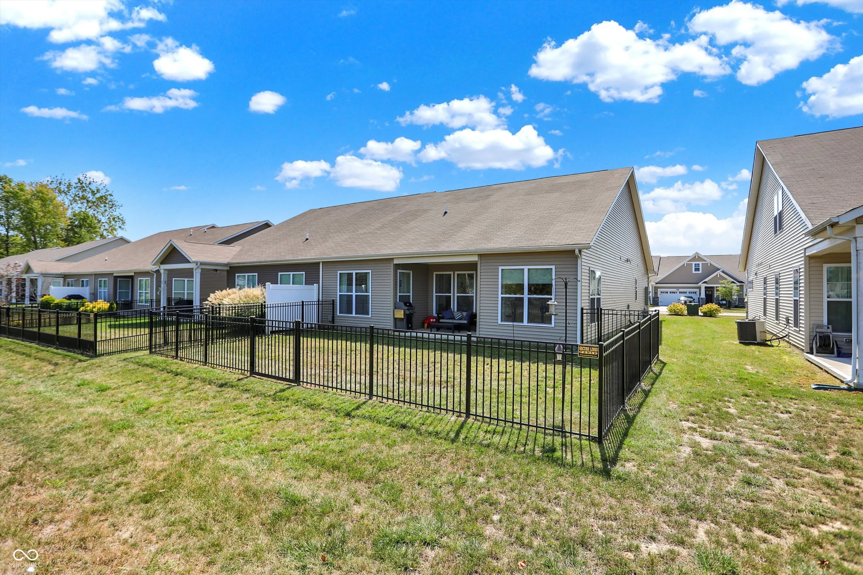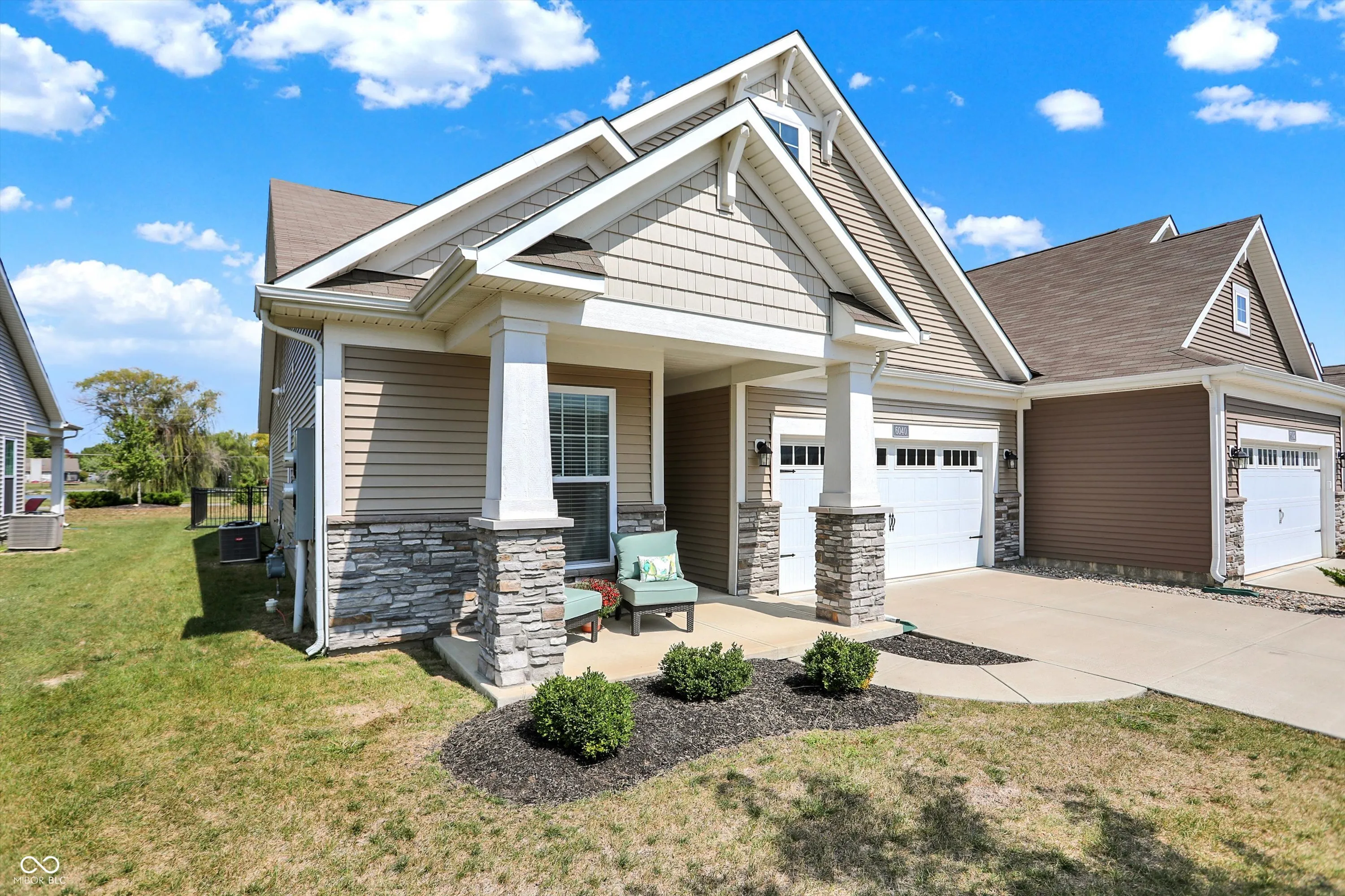 Experience the effortless charm of low-maintenance living at Abbington, featuring the stunning Bella Vista floorplan. As you step onto the welcoming covered front porch, you’ll instantly feel at home, with plenty of space to relax and get to know your neighbors. Inside, the open layout invites you into a spacious great room, highlighted by a cozy linear fireplace, seamlessly flowing into a gourmet kitchen and a sunlit breakfast nook. The kitchen truly serves as the heart of the home, boasting a large island with quartz countertops and seating, elegant staggered cabinets with crown molding, and top-of-the-line stainless steel GE appliances, including a refrigerator, electric cooktop, double oven with wireless controls, micro/hood, and dishwasher. Imagine yourself retreating to the primary suite, your personal sanctuary, featuring a generous walk-in closet with custom built-ins and a luxurious private bathroom complete with an upgraded tiled shower with glass doors and double sinks. The conveniently located laundry room off the primary suite and a huge utility/storage space add to the home’s functionality. The split floor plan ensures ultimate privacy, with a second bedroom and full bathroom near the entrance, making it ideal for guests or a home office. Step outside to your backyard oasis, complete with a covered porch and a newly installed full rear fence, perfect for outdoor entertaining or quiet relaxation. Additional highlights include a spacious two-car garage, more flush mount lighting, new light fixtures, and other thoughtful upgrades. The Abbington community offers fantastic amenities, including a playground and walking trails, and is conveniently located just 25 minutes from Downtown Indy, with easy access to local restaurants and shopping. Envision yourself enjoying this perfect blend of comfort, convenience, and modern luxury, making it the perfect place to call home.