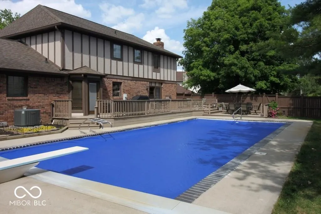Well-maintained Tudor 2-story w/ finished basement and 20’X40′ pool. Deep end of pool is 9-1/2 ft. with diving board. Automatic pool cover new 2020. Pool liner new 2024. Backyard living experience enhanced by 6′ cedar fence and 630 sq. ft. two-level deck. Open concept kitchen to family room. Custom cherry cabinetry. Granite countertops and induction cooktop new 2019. Down-draft exhaust. Movable kitchen island. Master bath and bedroom remodeled 2017. Large home office features double, leaded glass doors. Custom built bar in Basement. HVAC new 2015; new heat exchanger 2024. New sump pump and back-up pump 2024. New water heater 2023. New water softener 2023. New windows 2023. New garage door springs 2024. Irrigation system w/ private well (well is for irrigation only). Garage features 18′ of floor-to-ceiling shelving plus an alcove. 10’X12′ mini-barn has a loft. Quiet cul-de-sac street. Just 1.5 mi from Carmel High School.