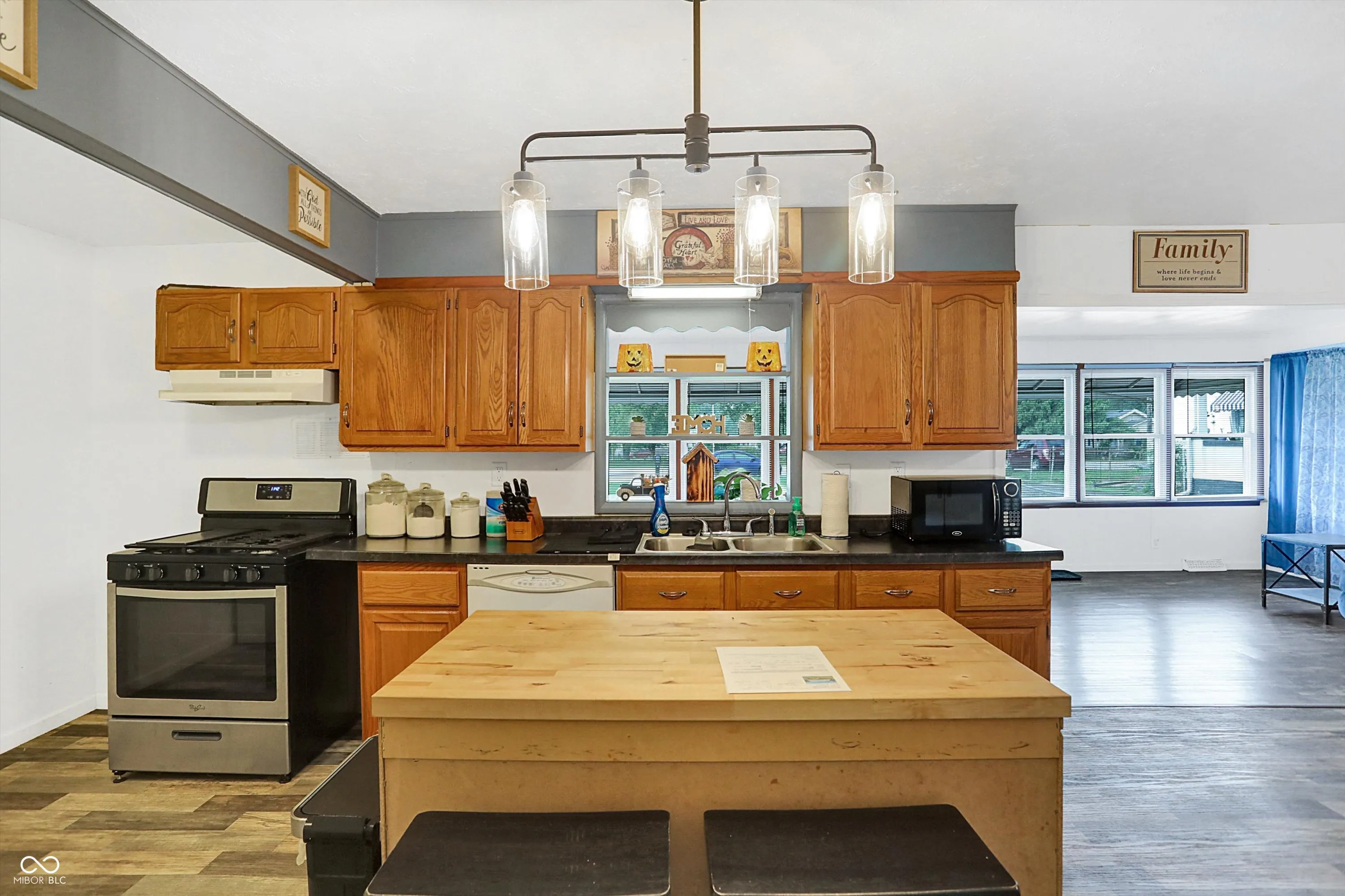 Your new home or investment property (or both!) is Here! Discover this wonderful, Move-In Ready 5BR, 2BA home, complete with a private in-law suite featuring a separate entrance. Step through your new front door to a spacious family room where the walls of windows provide loads of natural light. The open floor plan seamlessly connects the living spaces, creating an ideal environment for entertaining. The spacious kitchen, with abundant cabinet & counter space, features a center island with butcher block and breakfast bar, making meal prep a breeze. Newer laminate flooring throughout adds a contemporary touch. All kitchen appliances, including a brand-new gas stove, are included. New water heater. The separate laundry room comes equipped with a washer and dryer. The massive primary bedroom is a true retreat, offering enough space for the biggest beds and even a cozy sitting area. The attached in-law suite rents for $700 per month, includes a kitchen, bedroom, and bathroom-perfect for extended family, friends, or to help offset monthly expenses. Reconnecting this suite to the main home is easy with the removal of a single wall. Tucked away from the street, this property offers a long driveway and space behind the home for ample parking. Enjoy the outdoors from the charming covered porch or relax with friends on the front patio. Located just minutes from downtown, major highways, shopping, dining, parks, schools, and entertainment, this home offers both convenience and comfort. Don’t miss this incredible opportunity! Ask about zero down options!