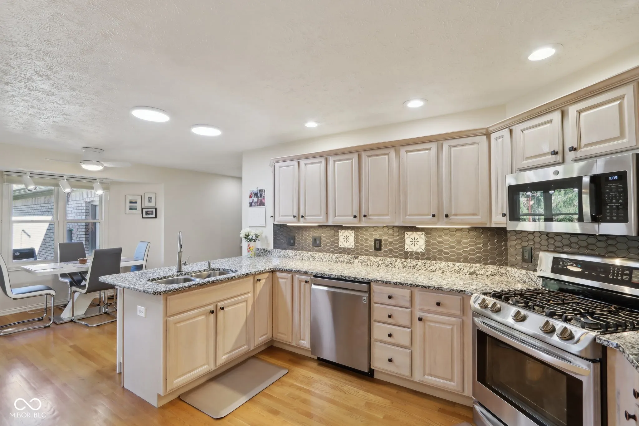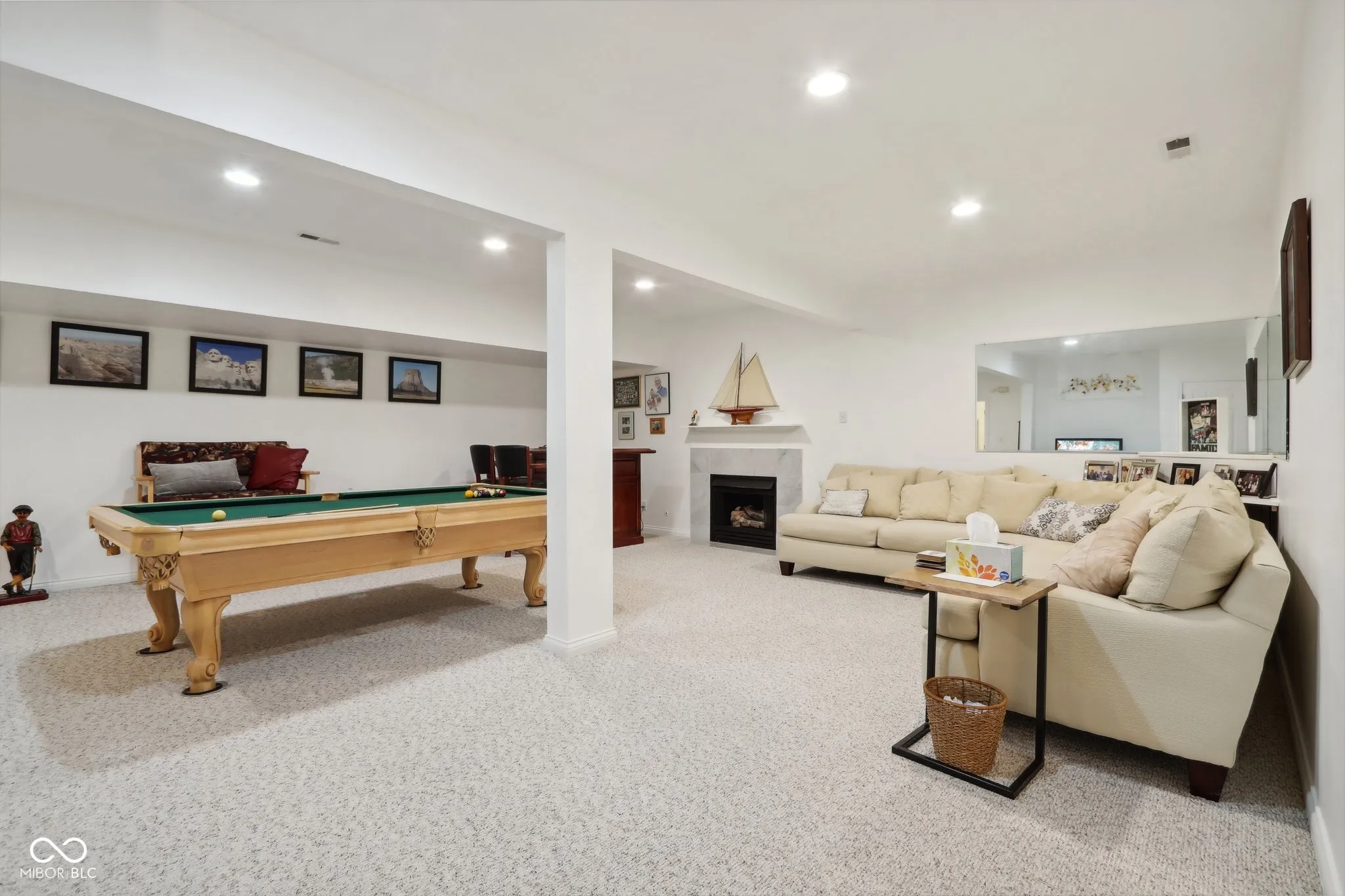 Immaculately updated and maintained, this all-brick home is just steps away from Eagle Creek Park. It features 4 bedrooms, a private main floor office, and 5 bathrooms. The spacious master bedroom offers a large closet and a fully updated bathroom with a luxury shower equipped with dual heads and controls. The other main floor bedrooms share Jack and Jill bathrooms. The main living room boasts soaring ceilings and a full wall of windows that overlook a tastefully appointed outdoor living area with large patio pavers. The windows have remote controls, and the room also includes a roaring fireplace. The updated kitchen opens to a breakfast nook and features updated cabinets with roll-out shelves, oak flooring, granite countertops, and a newer backsplash. The sprawling basement offers endless possibilities, with a full bath and egress windows. It includes plenty of storage, soaring ceilings, multiple rooms, a pool table, a workout room, and a bar. The second-story bedroom has its own bathroom and a great craft area. A convenient mudroom off the three-car garage adds to the storage options. Major recent updates include a new HVAC system in 2021, exterior paint in 2023, new appliances since 2020, updated fixtures throughout the home, extensive landscaping, and more!