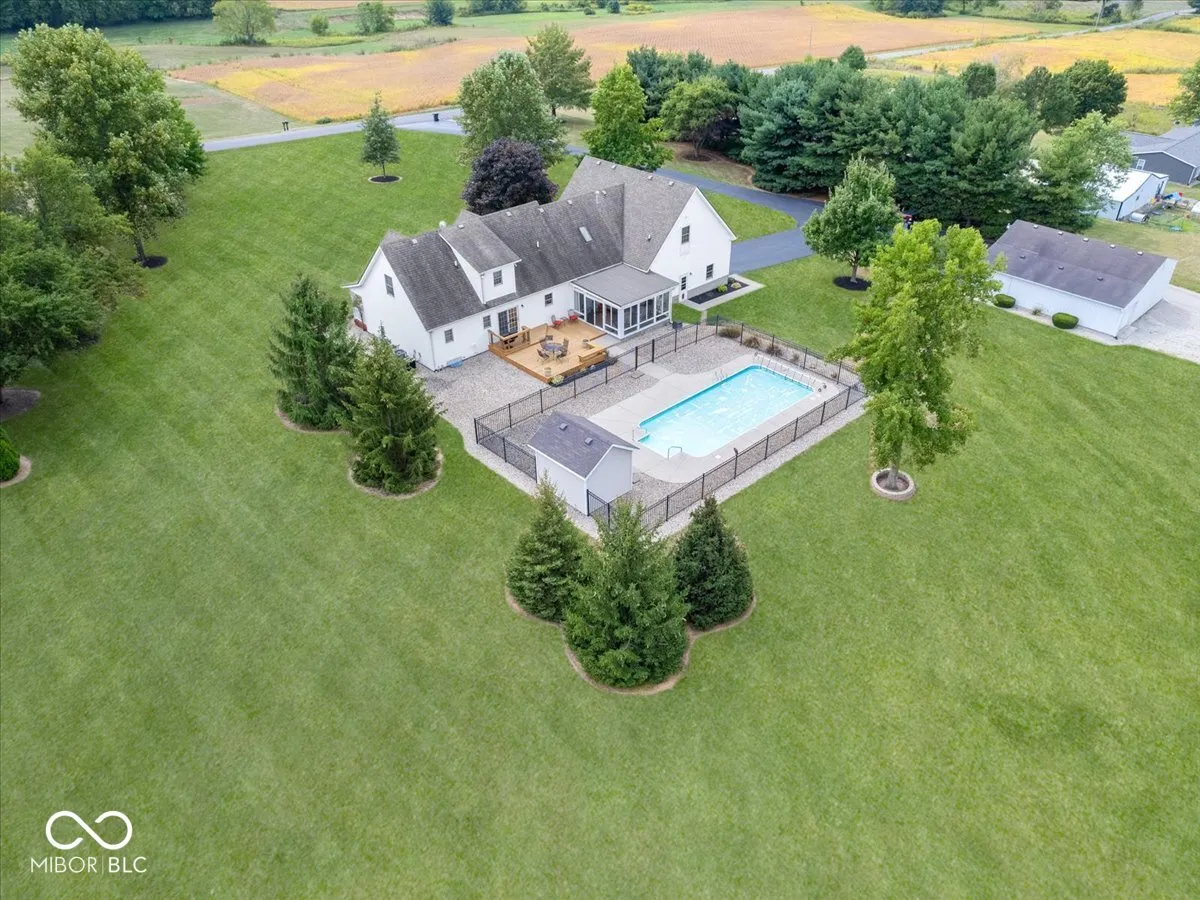 Welcome to this exceptional custom-built home nestled on 3 acres of picturesque countryside, boasting nearly 3,500 square feet of living space including a SPACIOUS In-Law/Guest Wing! The property features manicured lawn, mature trees, in-ground pool and patio/deck area for entertaining. Inside, you’ll discover a delightful floor plan with 3 bedrooms and 3.5 baths. The family room showcases a cathedral ceiling and leads to the sunroom to enjoy the scenery all year round. The primary suite, located on the main level, includes a walk-in closet and a full bath with beauty vanity. The spacious kitchen is equipped with appliances and an eat-in dining area with direct access to the rear deck. The in-law wing, currently used as flex space, is adaptable for various purposes. This space offers over 600 sq ft of living space, full bath, plumbing for kitchenette, and separate access from exterior. Additionally, this home features a designated office/bonus room in the basement. The finished, oversized garage is heated and provides ample storage. Additional plumbed detached garage provides plenty of storage space for vehicles, equipment, or could be transformed into a workshop or studio to suit your needs. Conveniently located to amenities and I-65, this golden property embodies the essence of a forever home, offering a cherished lifestyle for years to come.