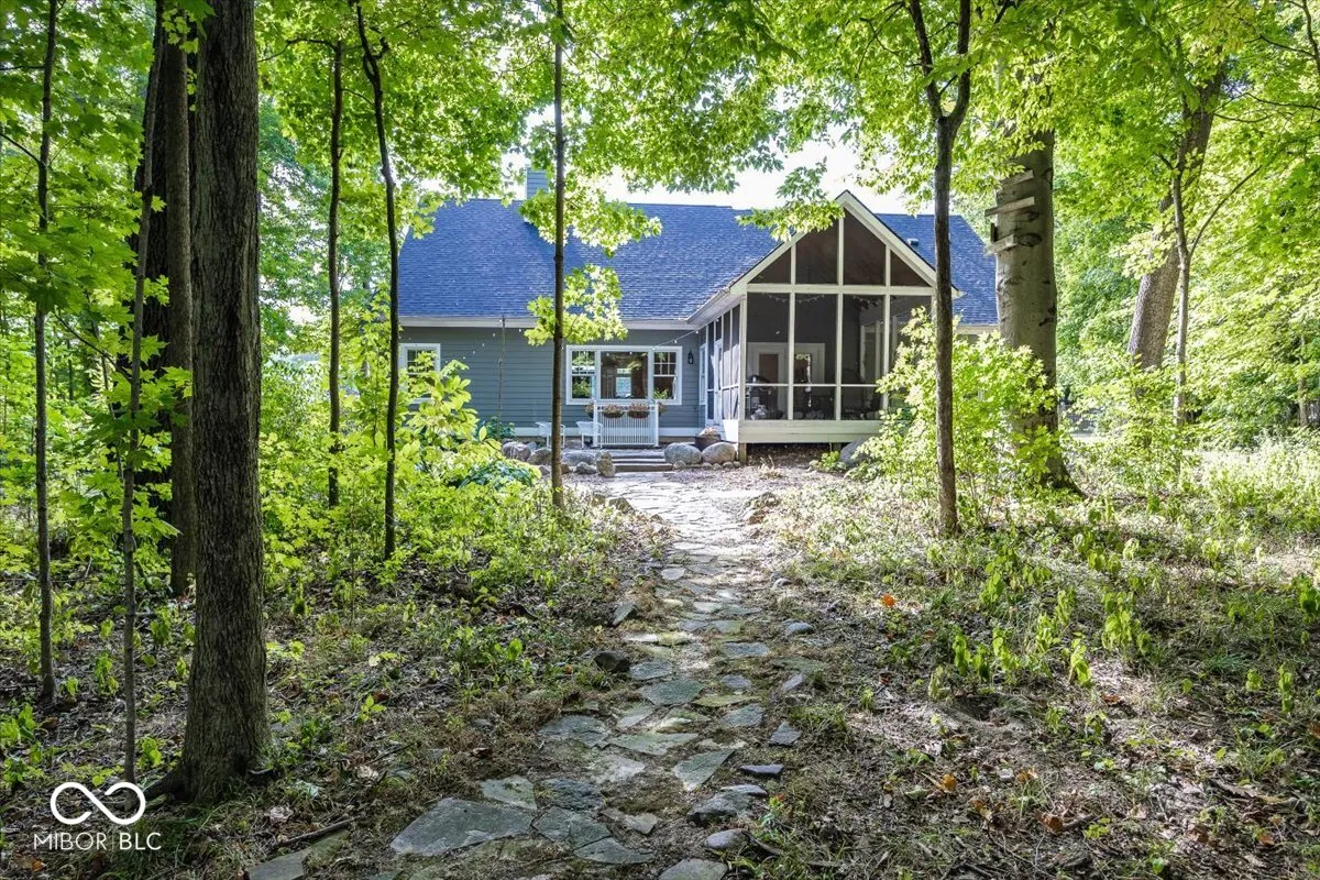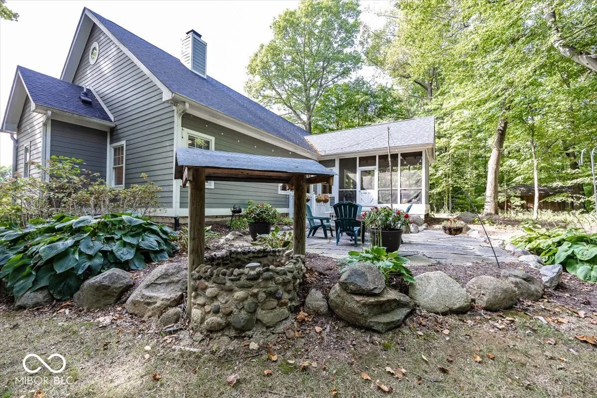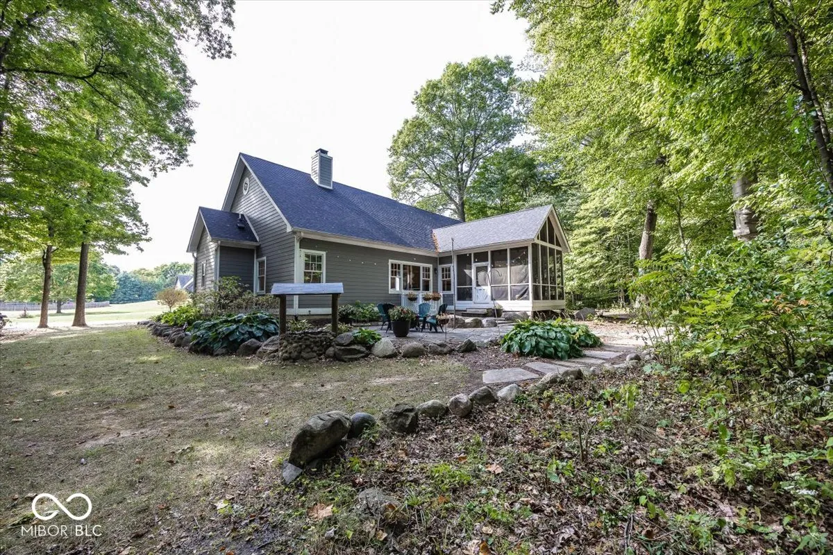Rare opportunity to own this Stylish custom crafted private retreat situated on 1.7 wooded acres overlooking nature preserve and creek in one of Noblesville’s most sought after community of Mill Creek.This Delightful residence boasts a perfect blend of cozy charm and modern convenience.Relax on the expansive covered porch or step inside to discover a warm and inviting atmosphere where natural light dances across the gleaming hardwood floors and soaring ceilings highlighting the open flow of well-designed space.The heart of the home is the stunning great rm/kitchen combo with natural stone wood burning fireplace, center island breakfast bar w/ granite countertops ,custom backsplash and stainless steel appliances cozy dining area all adjacent to private screened porch overlooking multi level stone patios and serene pathways leading you throughout private wooded rear yard .Owners retreat with all the bells & whistles double vanities, Kohler whirlpool tub, full shower & huge walk in closet.Two comfortable bedrooms w/jack & jill bath, plus flex room/office .Lower level features 4th bd rm w/ bath & walk in closet. Family rm w/custom beamed ceiling, barn wood built in with t/v area next to kitchenette/bar area where rough in already exist.Unfinished 5th bedroom/exercise rm with egress window and two other rooms allows for room to grow..Main level staircase leads upstairs to unfinished bonus room and possible bedrooms & bath area designed by owners for future use.New Roof ,New Furnace and fresh paint throughout.This wonderful home is the perfect place for anyone seeking a peaceful retreat.