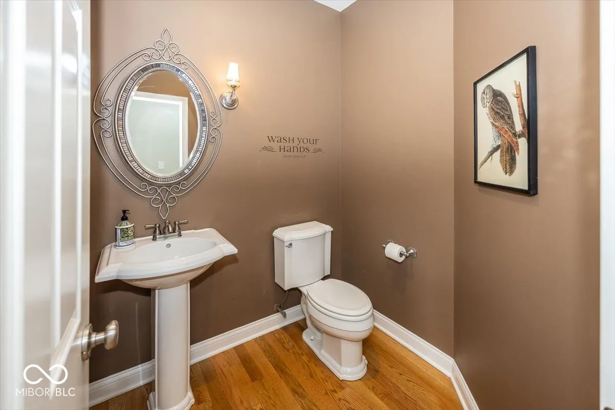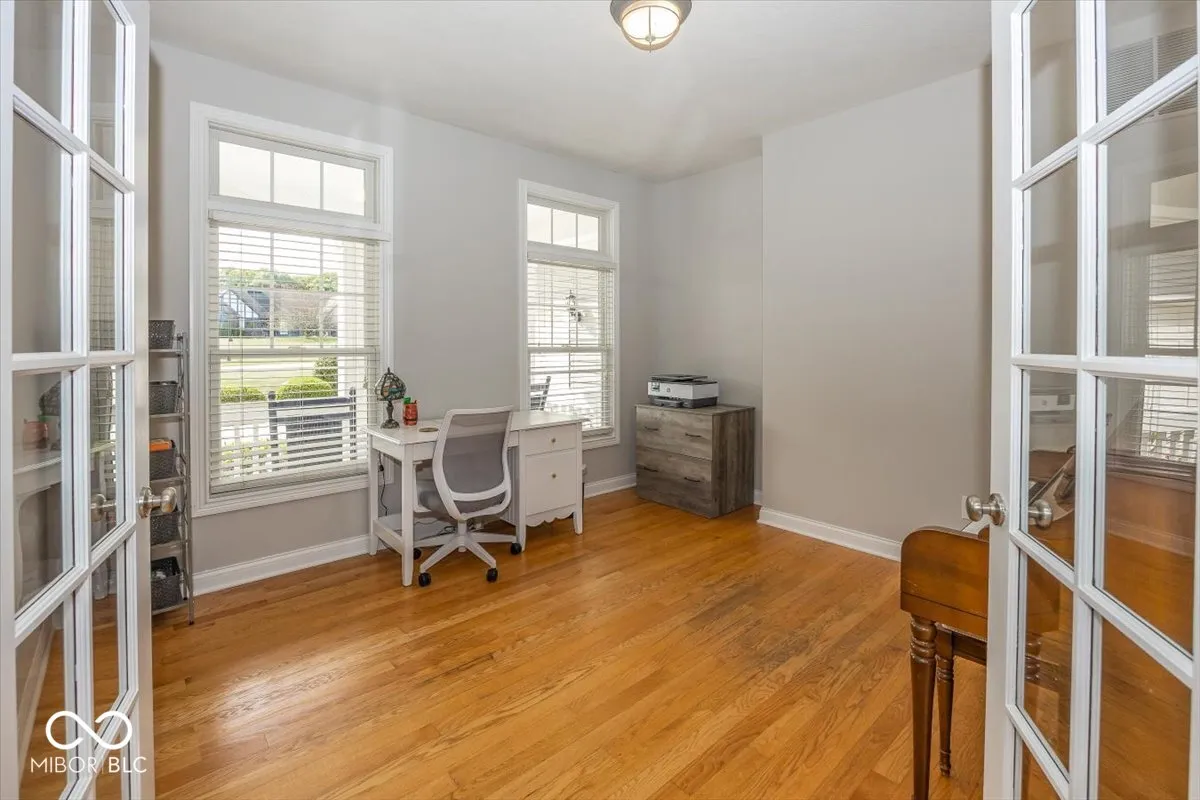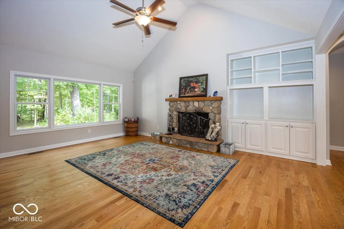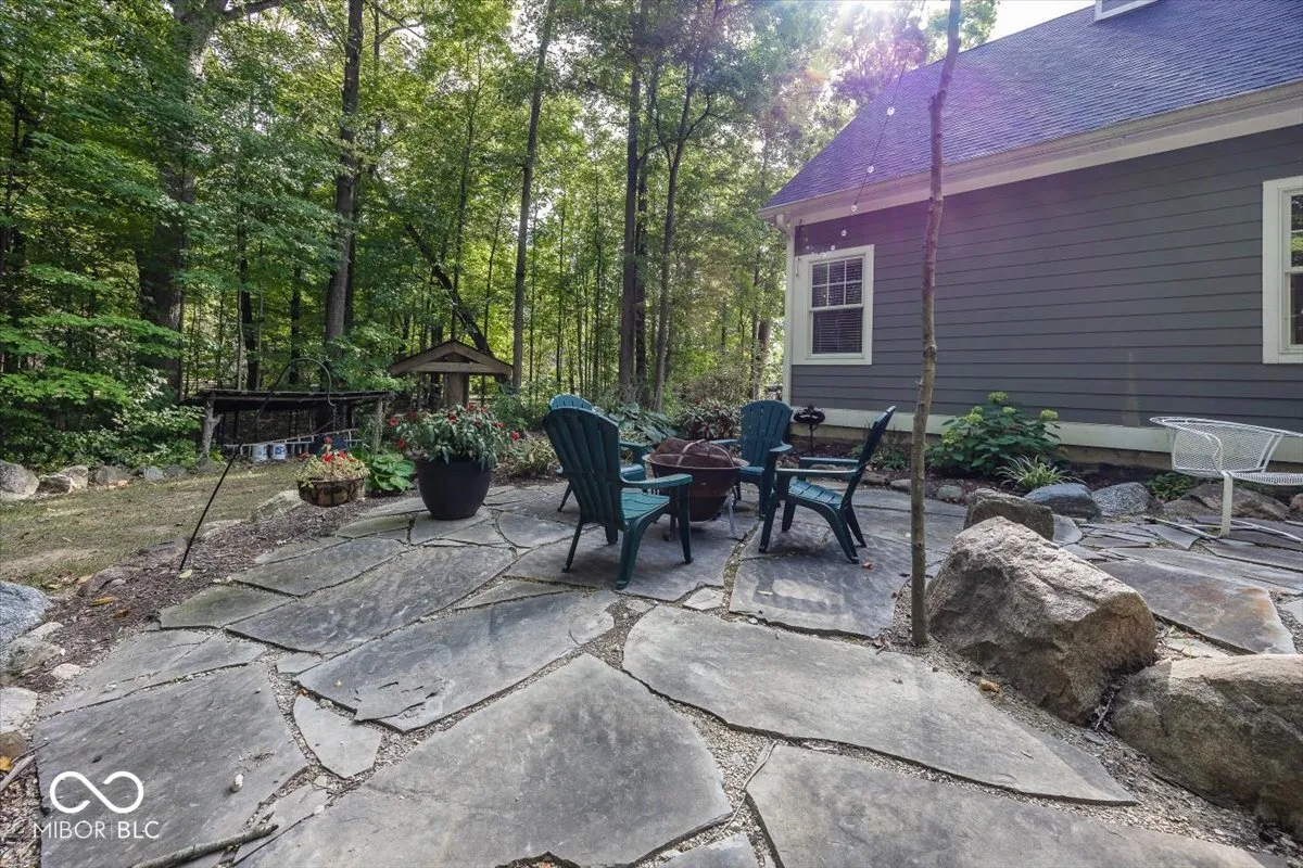 Rare opportunity to own this Stylish custom crafted private retreat situated on 1.7 wooded acres overlooking nature preserve and creek in one of Noblesville’s most sought after community of Mill Creek.This Delightful residence boasts a perfect blend of cozy charm and modern convenience.Relax on the expansive covered porch or step inside to discover a warm and inviting atmosphere where natural light dances across the gleaming hardwood floors and soaring ceilings highlighting the open flow of well-designed space.The heart of the home is the stunning great rm/kitchen combo with natural stone wood burning fireplace, center island breakfast bar w/ granite countertops ,custom backsplash and stainless steel appliances cozy dining area all adjacent to private screened porch overlooking multi level stone patios and serene pathways leading you throughout private wooded rear yard .Owners retreat with all the bells & whistles double vanities, Kohler whirlpool tub, full shower & huge walk in closet.Two comfortable bedrooms w/jack & jill bath, plus flex room/office .Lower level features 4th bd rm w/ bath & walk in closet. Family rm w/custom beamed ceiling, barn wood built in with t/v area next to kitchenette/bar area where rough in already exist.Unfinished 5th bedroom/exercise rm with egress window and two other rooms allows for room to grow..Main level staircase leads upstairs to unfinished bonus room and possible bedrooms & bath area designed by owners for future use.New Roof ,New Furnace and fresh paint throughout.This wonderful home is the perfect place for anyone seeking a peaceful retreat.