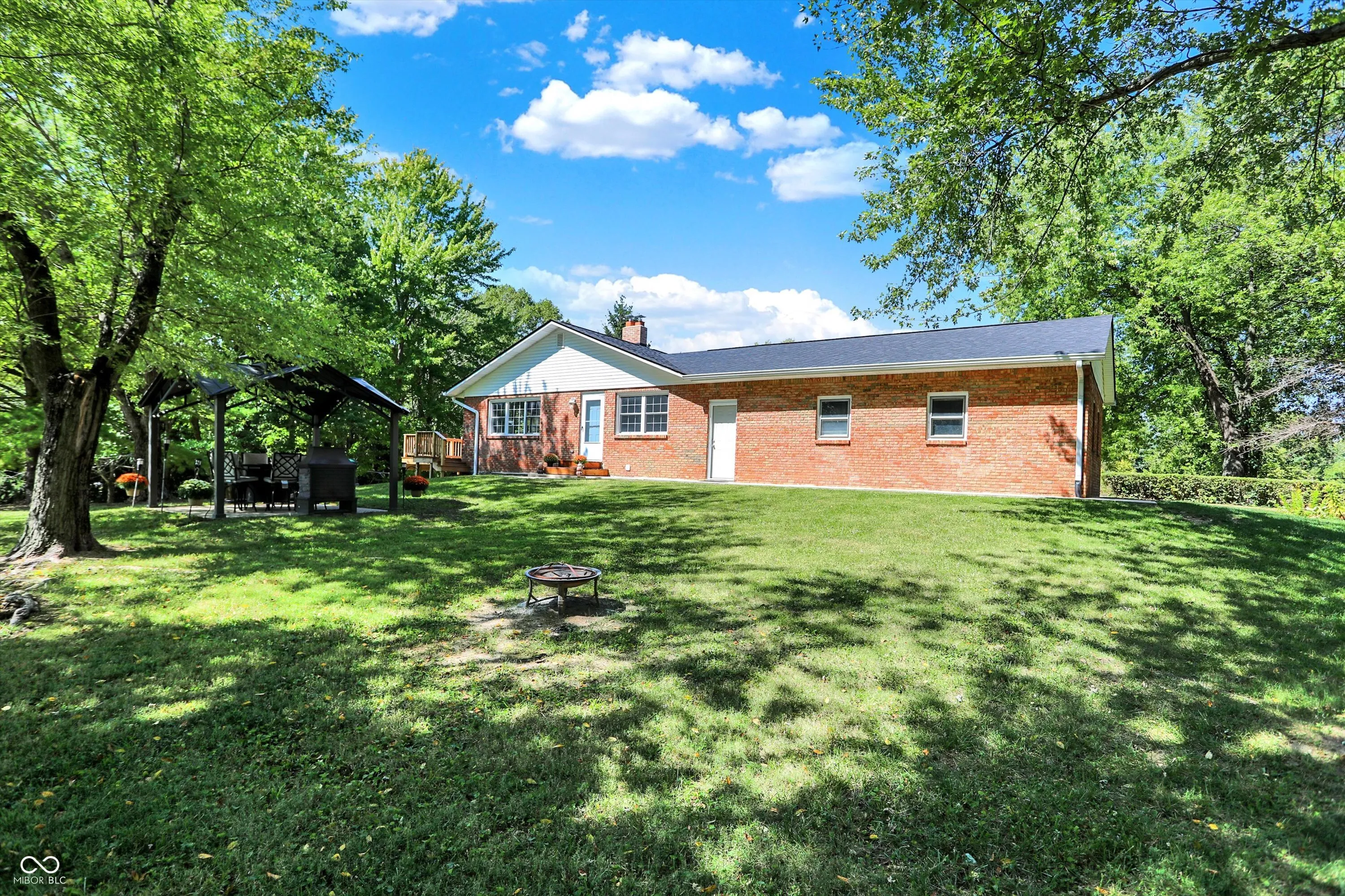 Country living at it’s finest..Welcome to your dream home! This charming 3-bedroom, 2-bath full brick ranch offers the perfect blend of comfort, style, and functionality. Nestled on a sprawling 5.98-acre lot, this property is a true retreat from the hustle and bustle of daily life. As you approach the property, you will be greeted by a tree lined driveway. Continue to the beautifully maintained full brick exterior and a spacious 3-car attached garage. Step inside to find an inviting and well-designed layout, featuring a newly updated kitchen that boasts sleek stainless steel appliances, a convenient island, and ample cabinetry for all your culinary needs. The open-concept living area with beautiful hardwoods flows seamlessly to the brand-new large deck. This expansive outdoor space is perfect for entertaining, whether you’re hosting summer barbecues, enjoying a quiet evening under the stars, or simply soaking in the serene surroundings. The master suite is a true sanctuary, complete with a recently updated bathroom. Two additional bedrooms offer flexibility and comfort for family or guests. The partially finished walkout basement is a standout feature, providing a versatile space that can be tailored to suit your needs & features a 1/2 bathroom. Whether you envision a game room, home theater, or extra living area, this space has the potential to become your favorite spot in the house. There’s also plenty of storage space to keep your belongings organized and out of sight. Outside, the property continues to impress with its mature trees and partially wooded landscape, offering privacy and a natural backdrop for relaxation. The large pole barn is an excellent addition, providing ample room for hobbies, storage, or a workshop. Priced below appraised value for instant equity, this full brick ranch home is more than just a residence; it’s a lifestyle.