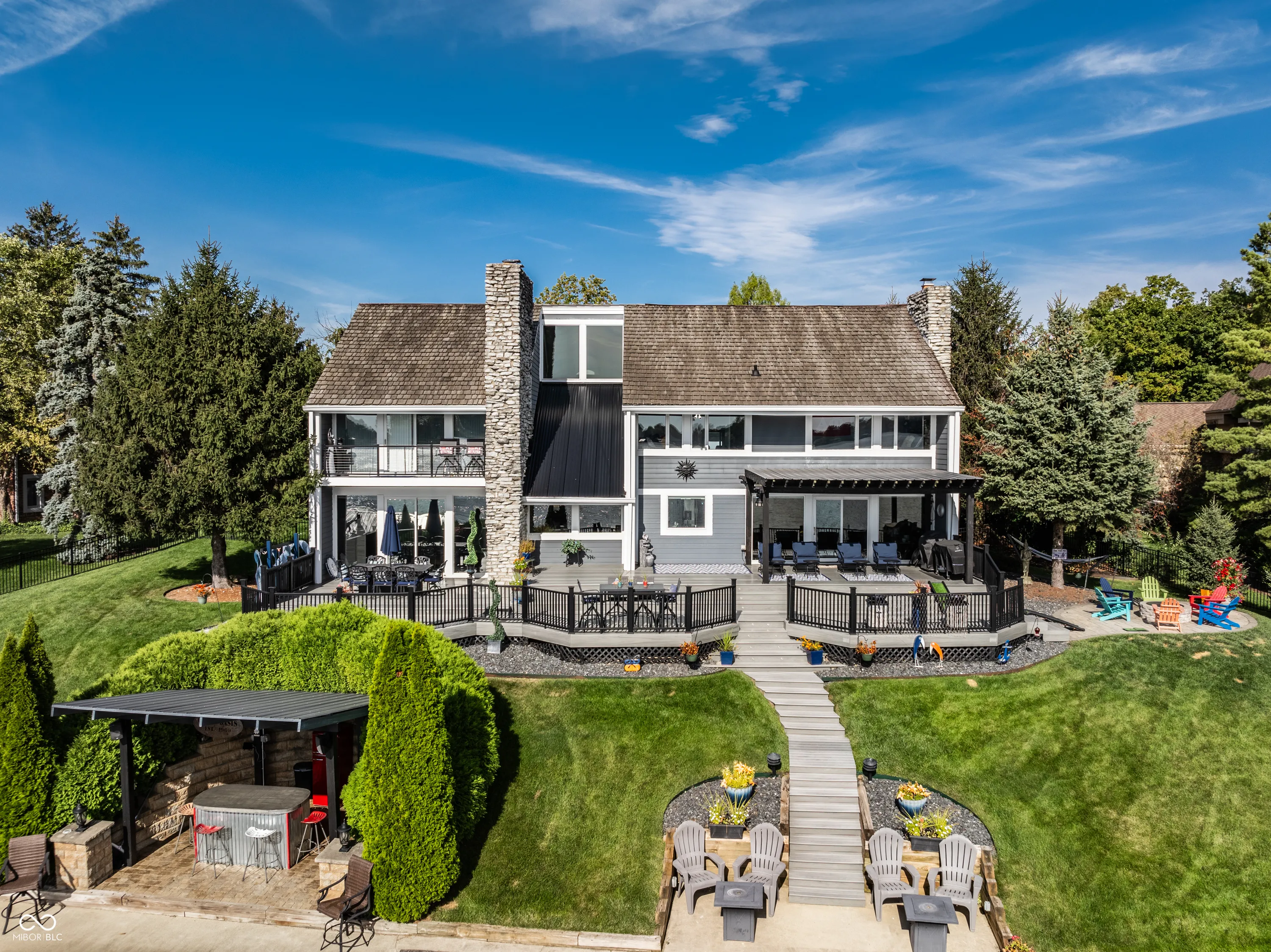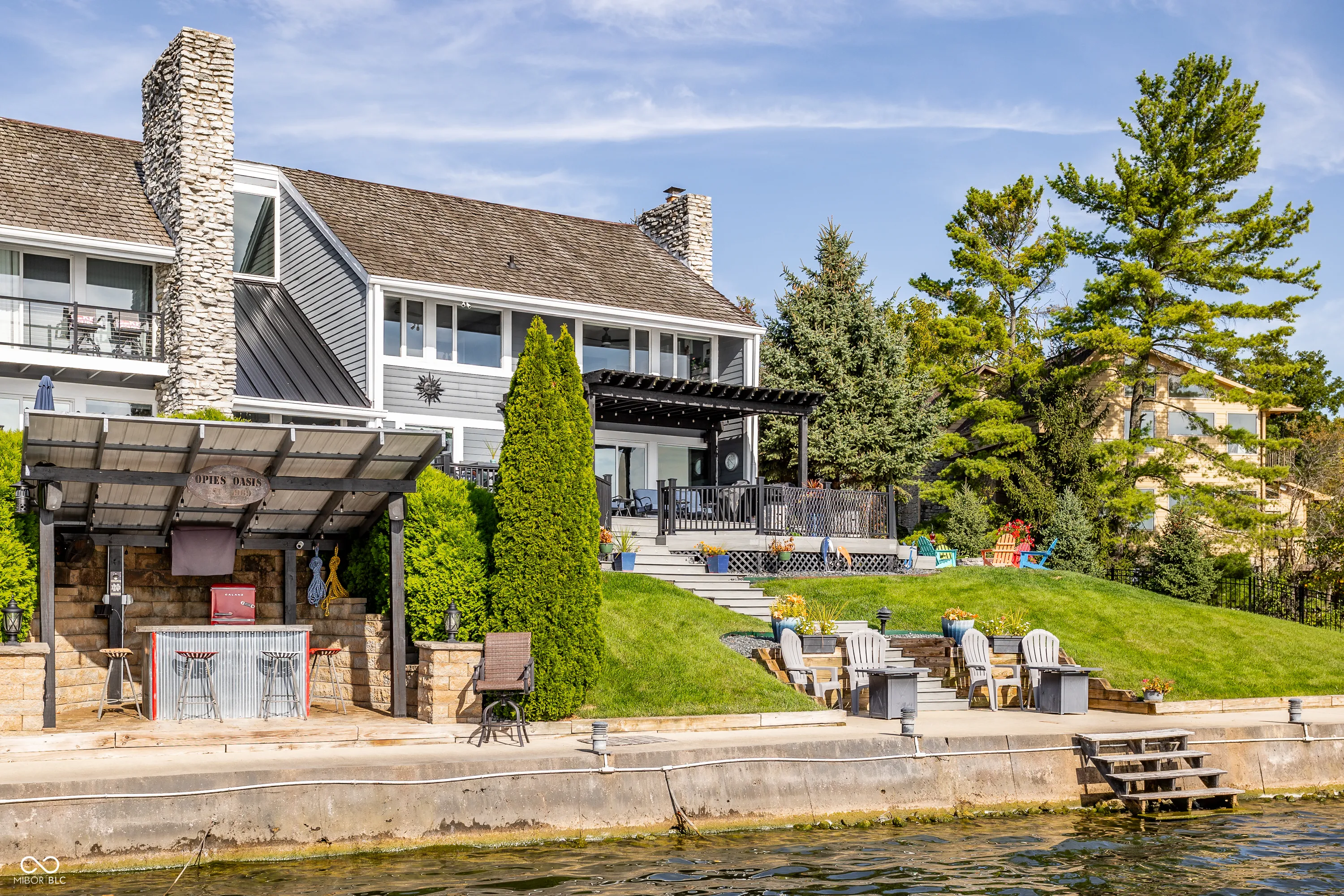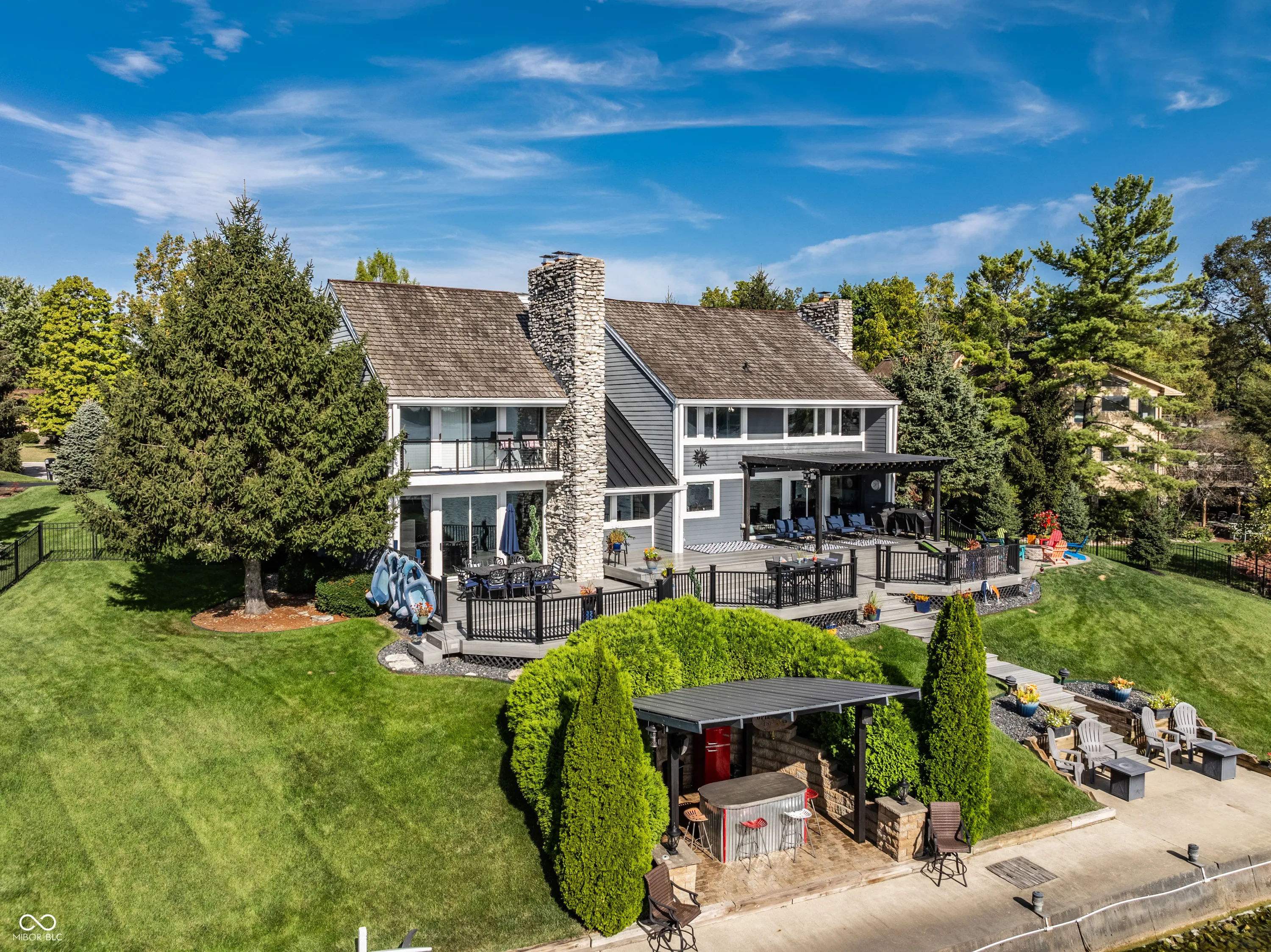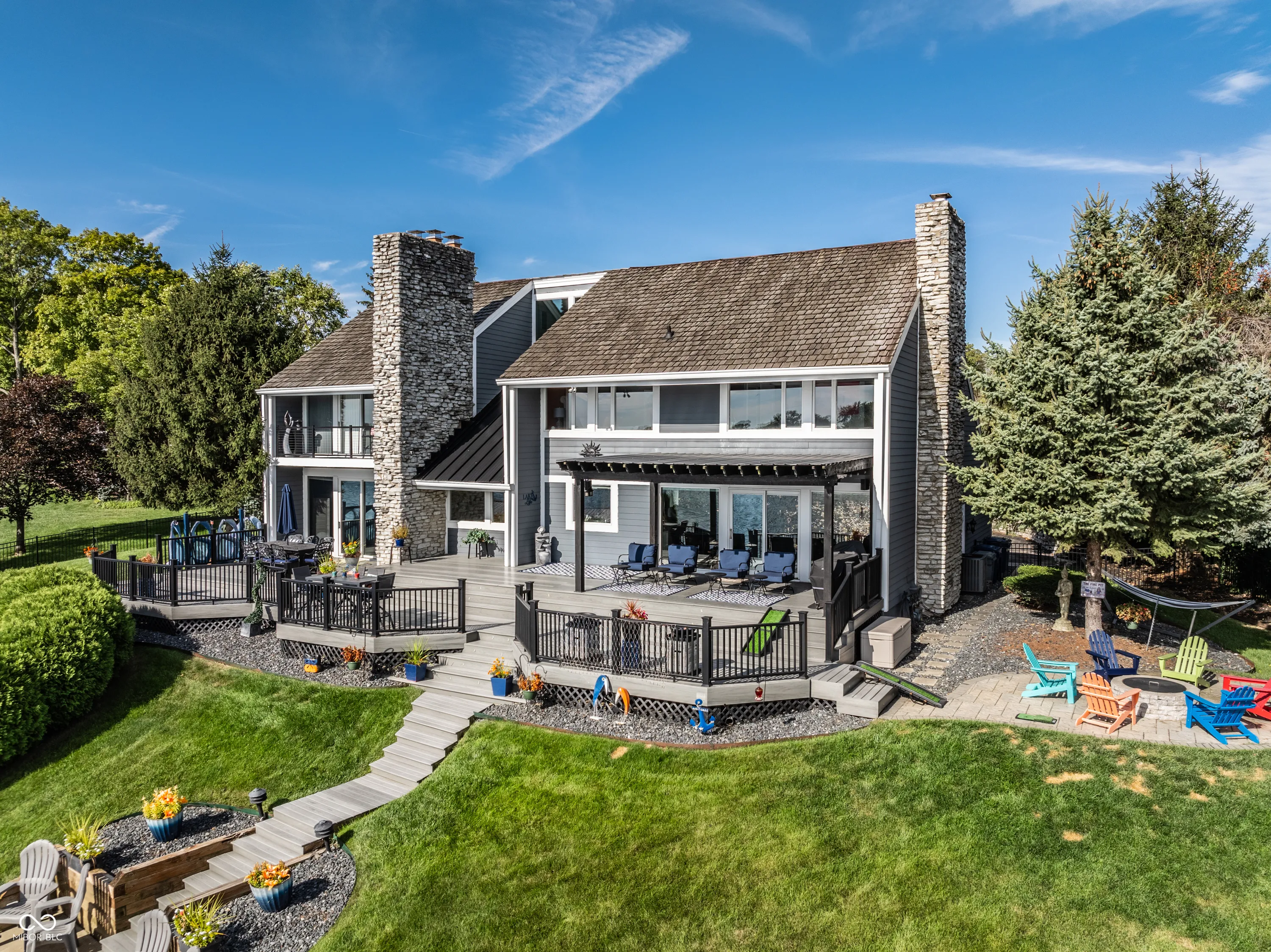Welcome to the crown jewel of North Harbour-a stunning waterfront retreat nestled in a secluded cul-de-sac. This exclusive property boasts 170 feet of pristine water frontage, offering amazing views from every room in the home. With four spacious bedrooms and four full baths, this residence offers an abundance of space, light, and updates throughout. The heart of this home is a beautifully designed chef’s kitchen, complete with a Viking gas cooktop, stainless steel appliances, double granite countertops, and a large walk-in pantry. Three stone fireplaces add to the ambiance of lakefront living. The primary suite is a luxurious retreat featuring a private balcony to enjoy a peaceful morning sunrise or nightfall. The coffee bar with mini-fridge and sink will provide your beverage of choice. It is completed by an updated bathroom and amazing California custom closet. The secondary bedrooms are equally spacious and all offer mesmerizing water views. Ample storage is available, including a large, easily accessible floored attic space. The lower level offers endless flexibility-perfect for an office, workout area, or home theater. The heated garage with an epoxy floor and a full bath makes it easy to refresh after a day on the water. Expansive Trex deck is partially covered for all-weather enjoyment. The gas firepit and amazing lakeside bar create an ideal setting for gathering and making memories. The revamped double dock with a steel roof, two lifts (one rated for 10,000 lbs), and two water bubblers ensures your watercraft is well accommodated. Fenced side yards with four access gates complete this one-of-a-kind lakefront masterpiece. Enjoy the best of lakeside living in this extraordinary home that is truly the envy of North Harbour.