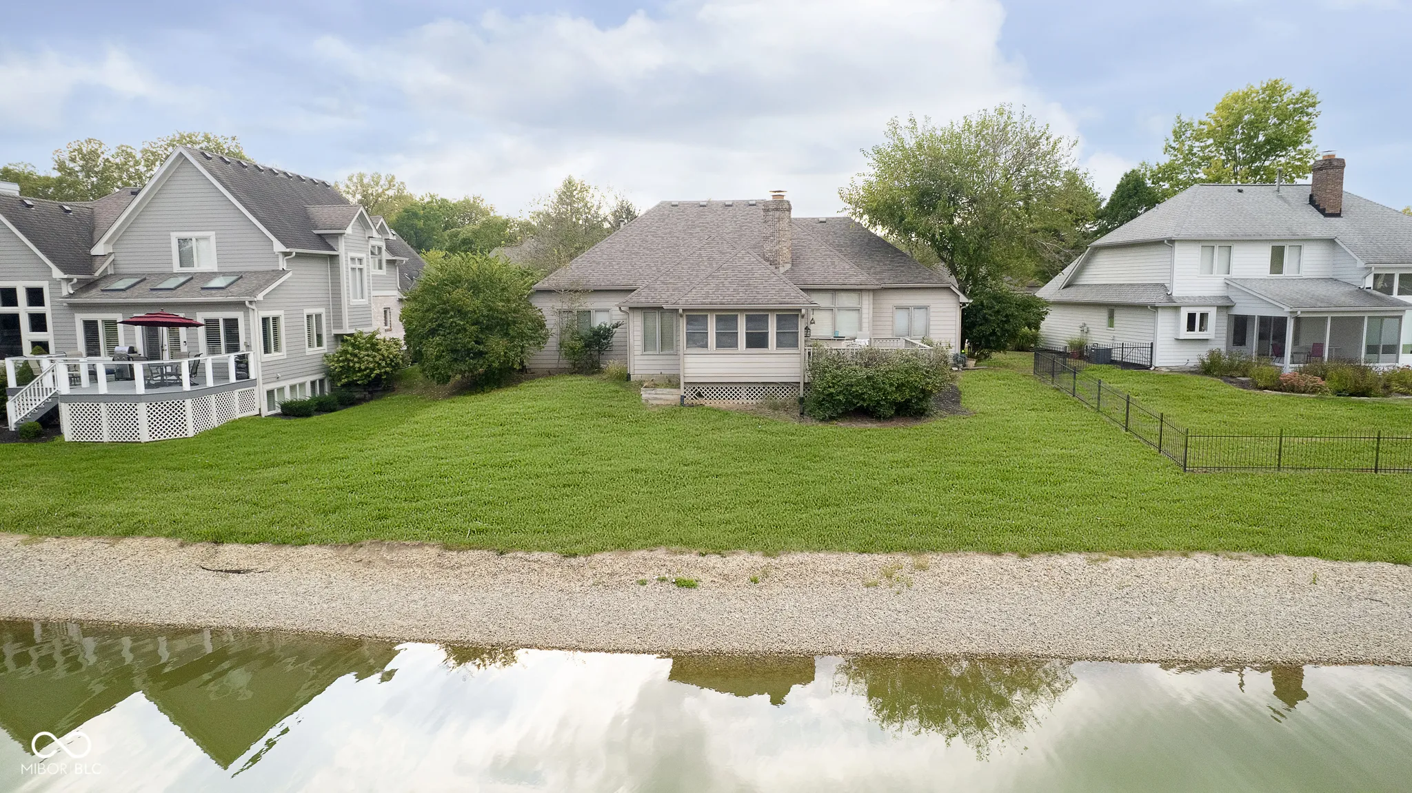 Welcome home to custom waterfront home in ought after Stonewick of Waterstone in Carmel! Stunning ranch with great water views on a quiet cul de sac! Open floor plan, soaring ceilings, dual fireplace, hardwood floors. Great kitchen for entertaining with a cozy Hearth Room and fireplace, Breakfast room, Kitchen with breakfast bar all overlooking huge deck and peaceful pond from the 4 seasons sunroom. Split bedroom floorplan with 3 bedrooms and 2 baths. Master suite with dual sinks, jetted garden tub, separate shower, and spacious walk in closet. Direct staircase access through 2 1/2 car garage to huge unfinished upper level. Could be easily finished for additional living space for exercise room, playroom, etc. Enjoy the amazing neighborhood amenities with Clubhouse, Pool, Tennis, scenic walking trails around main lake. Conveniently located to shopping, restaurants, and interstate.