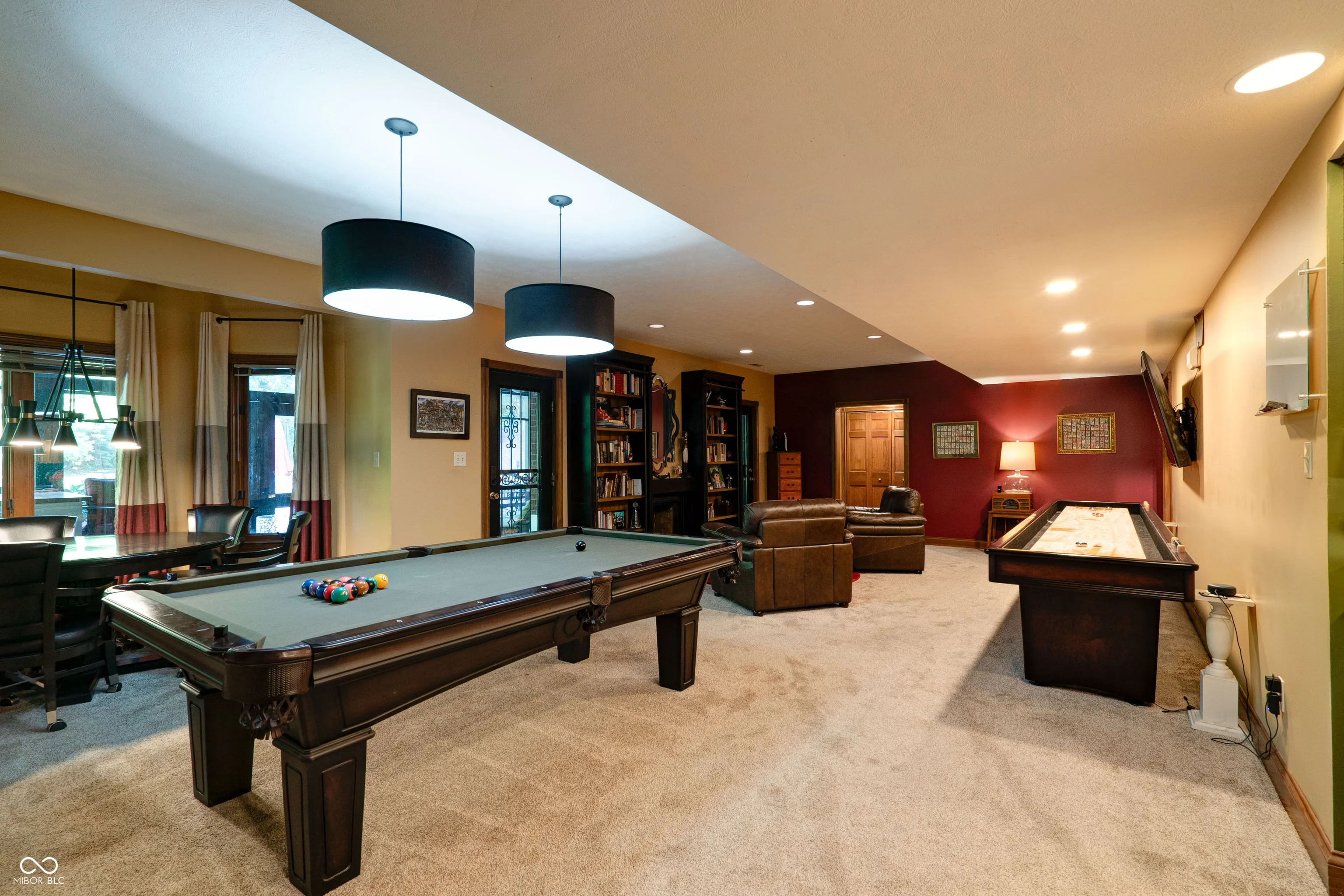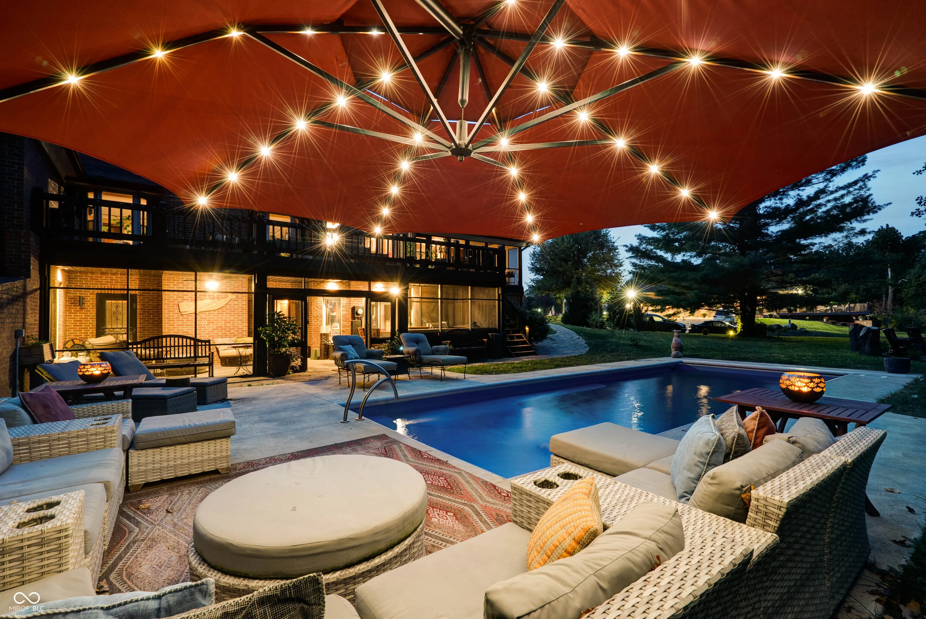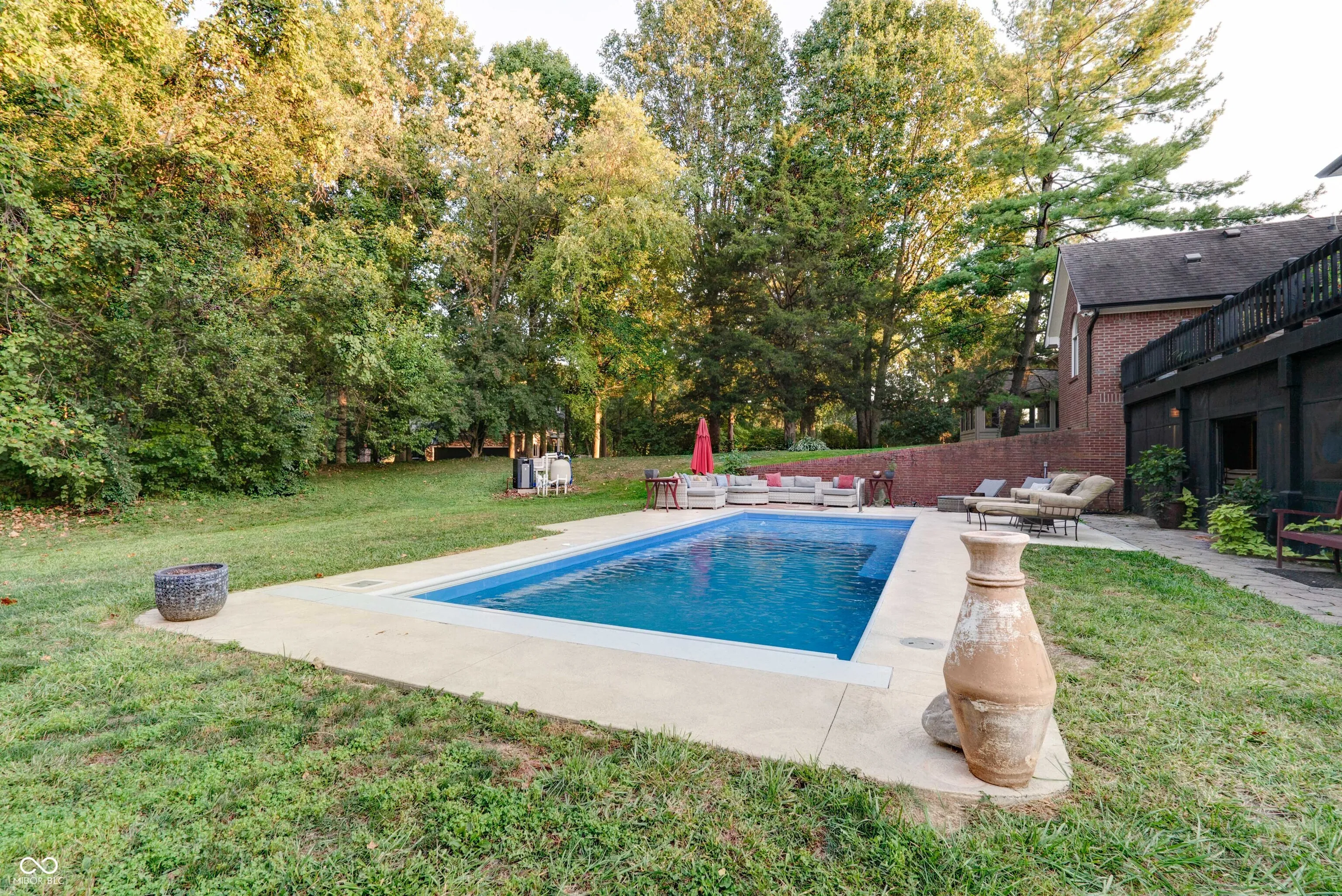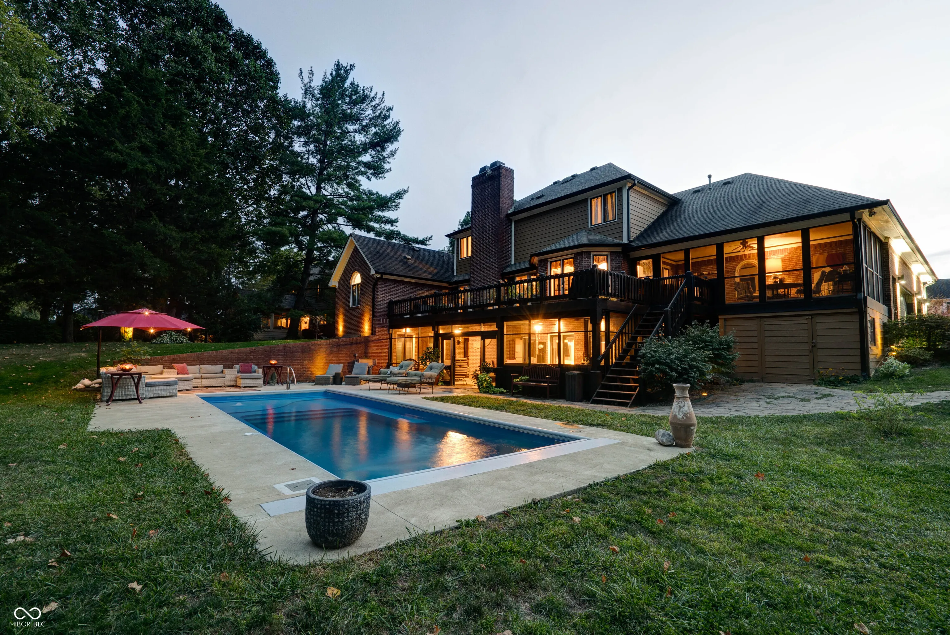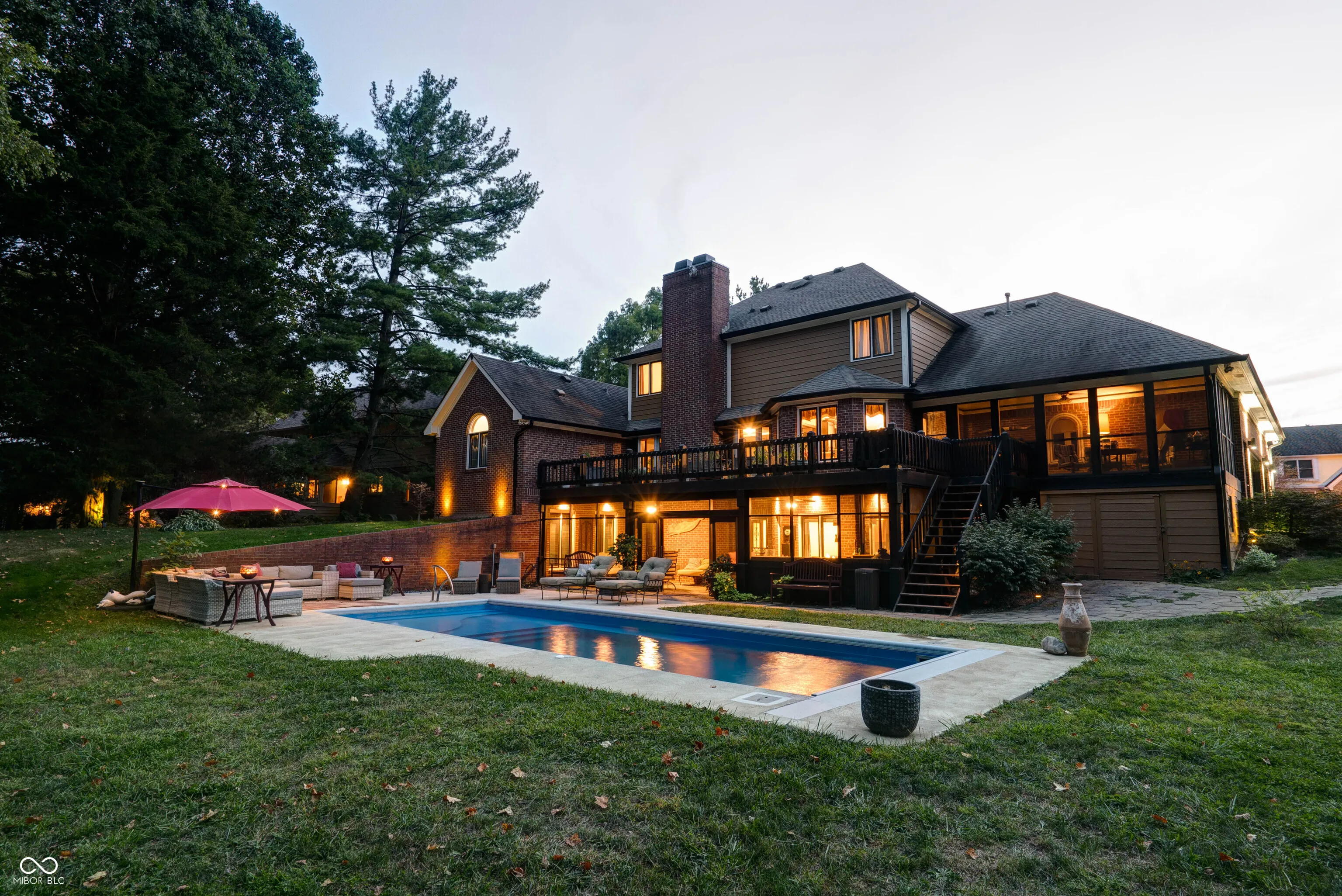 This stunning custom-built home is packed with luxurious features and thoughtful upgrades. Designed for the option to install an elevator in the foyer to access all three levels. It includes an elevator from the garage to the attic and is accessible through a hidden door from the guest room, eliminating the need for pull-down stairs. The home features a walk-out basement with a screened patio, complete with XL custom barn doors, an outdoor kitchen with a gas line-connected griddle and grill, bar seating, ceiling fans, and a rainwater-diverting system. The in-ground fiberglass pool, installed in 2020, boasts a heater, auto-chlorinator, auto cover, two sundecks, a bubbler, and programmable underwater lighting. Inside, the main floor showcases diagonal hardwood flooring, a walk-in pantry with a rolling ladder and custom spice cabinet, new kitchen cabinets and countertops (2023), a microwave drawer in the island, and a corner beverage station with a lazy susan cabinet. The kitchen food pantry contains washer/ dryer hookup. The basement features new carpet (2023), a remodeled bathroom with a new vanity, a wine cellar with a mini-fridge, and a custom fire pit pad outside beyond the pool. The basement has a Radon system. Other highlights include gas fireplaces in the hearth room and basement, Ring cameras, and large bay windows. The primary suite on the main floor offers dual walk-in closets, a jetted tub, and a two-story master bath with barn doors. A second primary suite on the upper level includes updated flooring (2022) and a new shower head (2024). The guest bathroom on the main floor was remodeled in 2022. The home is equipped with two HVAC systems to efficiently manage climate control on both levels. This property truly has it all for luxury living!