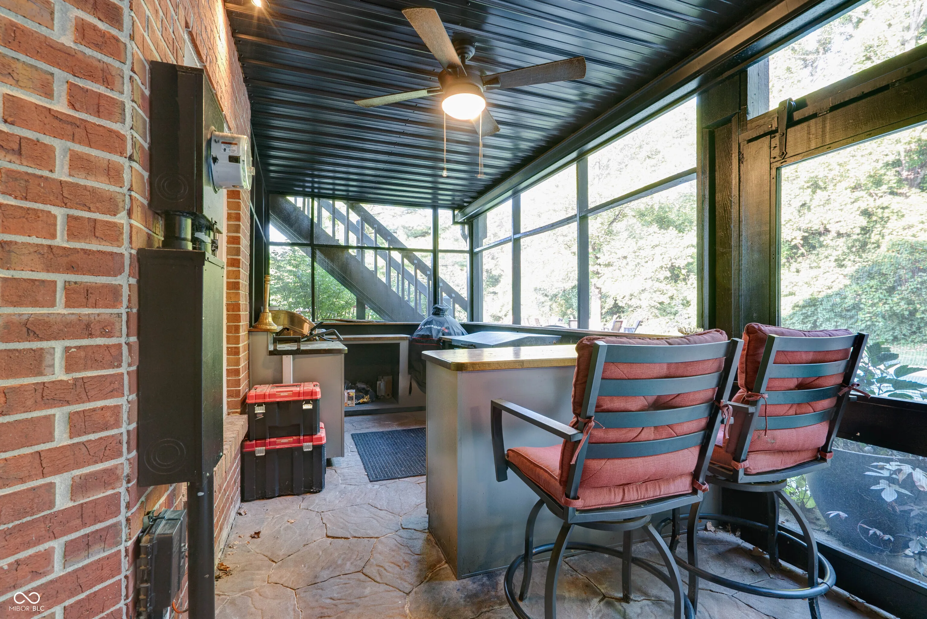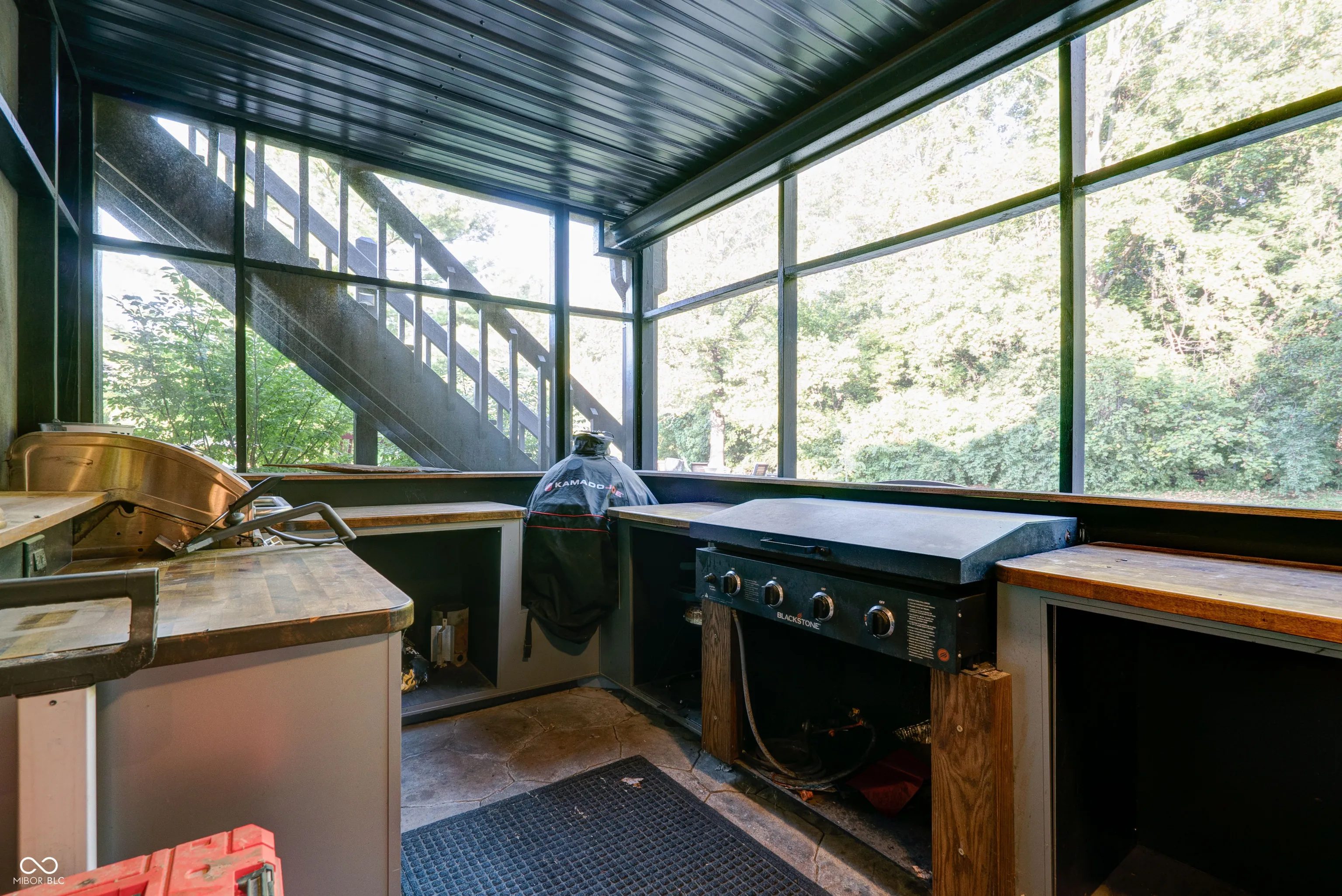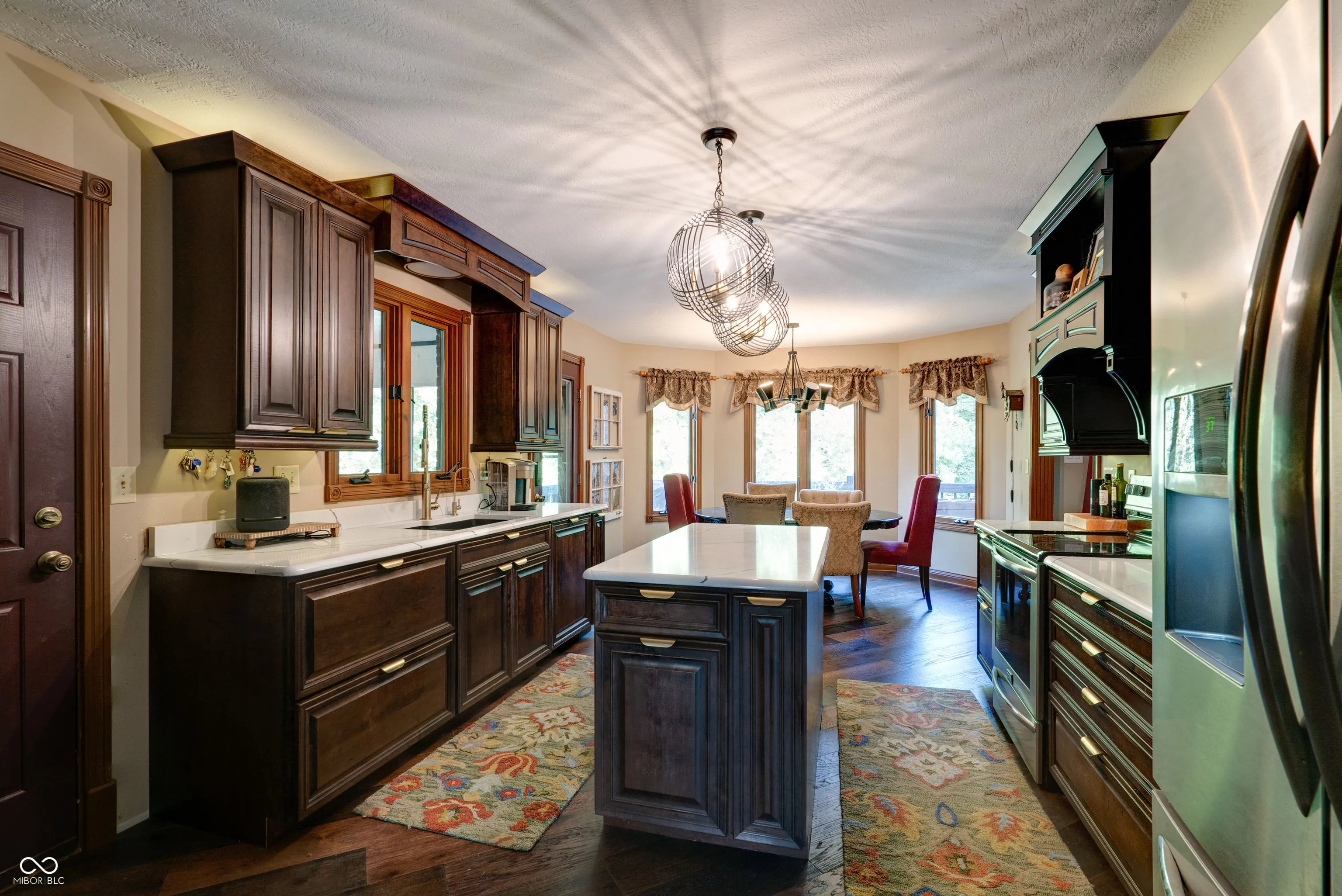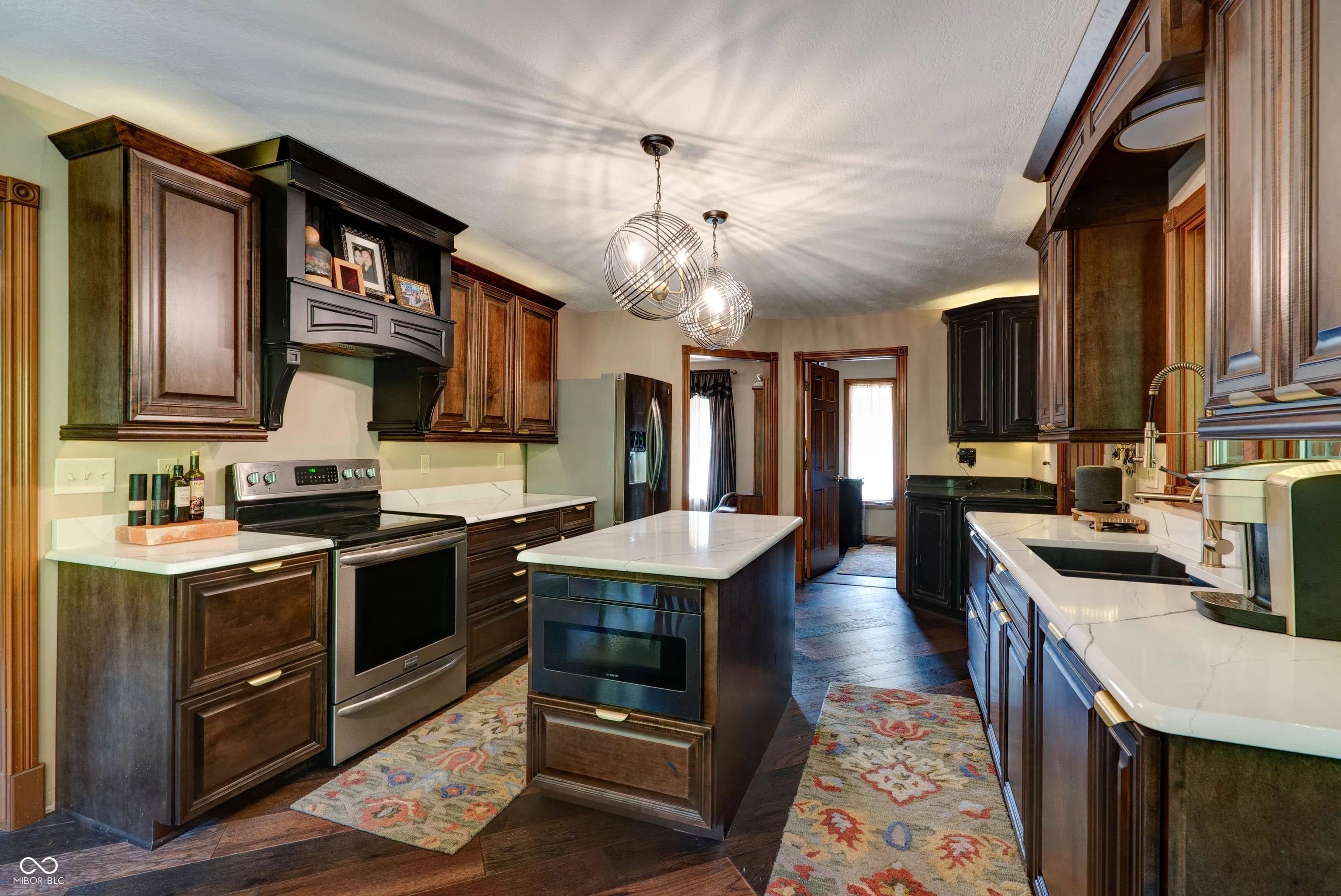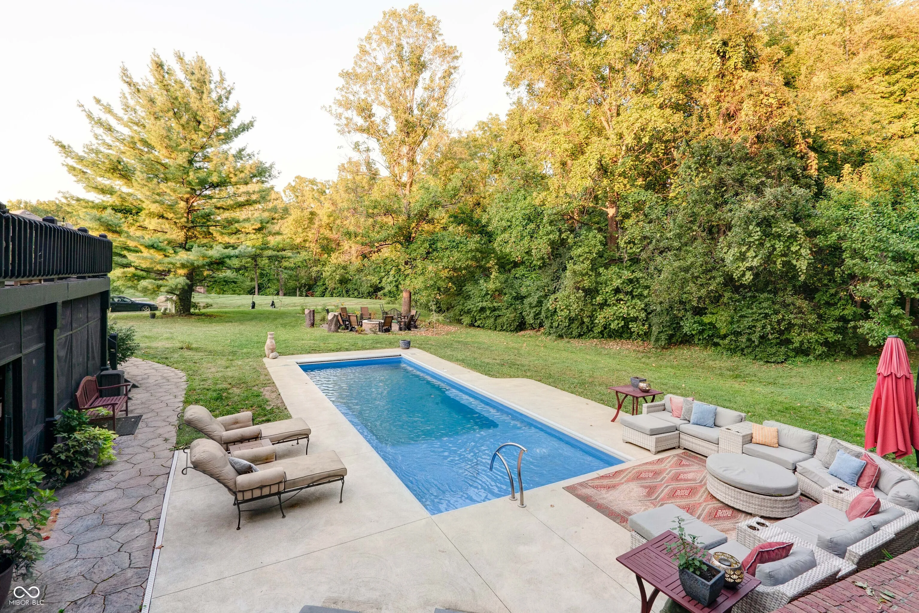 This stunning custom-built home is packed with luxurious features and thoughtful upgrades. Designed for the option to install an elevator in the foyer to access all three levels. It includes an elevator from the garage to the attic and is accessible through a hidden door from the guest room, eliminating the need for pull-down stairs. The home features a walk-out basement with a screened patio, complete with XL custom barn doors, an outdoor kitchen with a gas line-connected griddle and grill, bar seating, ceiling fans, and a rainwater-diverting system. The in-ground fiberglass pool, installed in 2020, boasts a heater, auto-chlorinator, auto cover, two sundecks, a bubbler, and programmable underwater lighting. Inside, the main floor showcases diagonal hardwood flooring, a walk-in pantry with a rolling ladder and custom spice cabinet, new kitchen cabinets and countertops (2023), a microwave drawer in the island, and a corner beverage station with a lazy susan cabinet. The kitchen food pantry contains washer/ dryer hookup. The basement features new carpet (2023), a remodeled bathroom with a new vanity, a wine cellar with a mini-fridge, and a custom fire pit pad outside beyond the pool. The basement has a Radon system. Other highlights include gas fireplaces in the hearth room and basement, Ring cameras, and large bay windows. The primary suite on the main floor offers dual walk-in closets, a jetted tub, and a two-story master bath with barn doors. A second primary suite on the upper level includes updated flooring (2022) and a new shower head (2024). The guest bathroom on the main floor was remodeled in 2022. The home is equipped with two HVAC systems to efficiently manage climate control on both levels. This property truly has it all for luxury living!