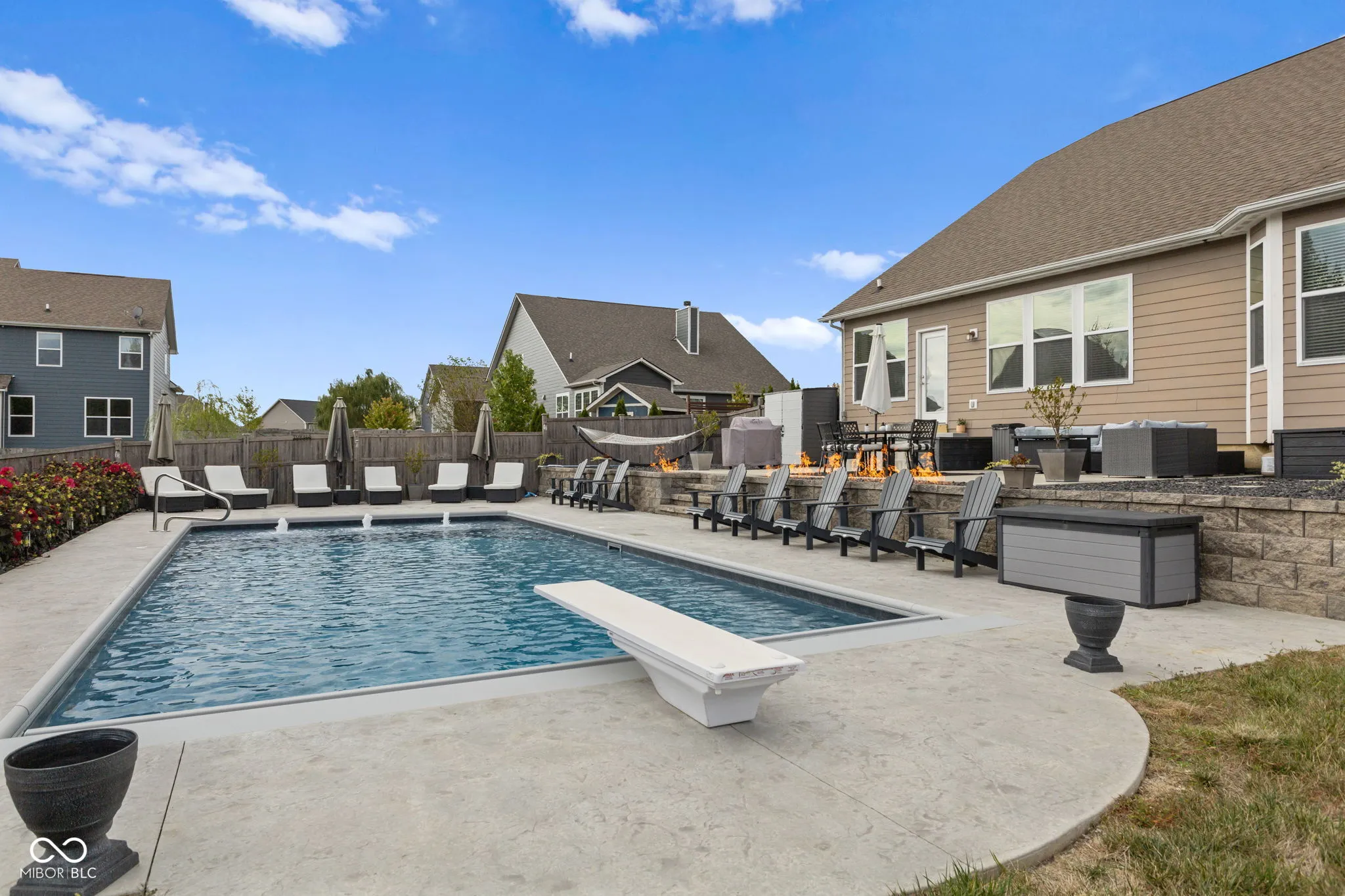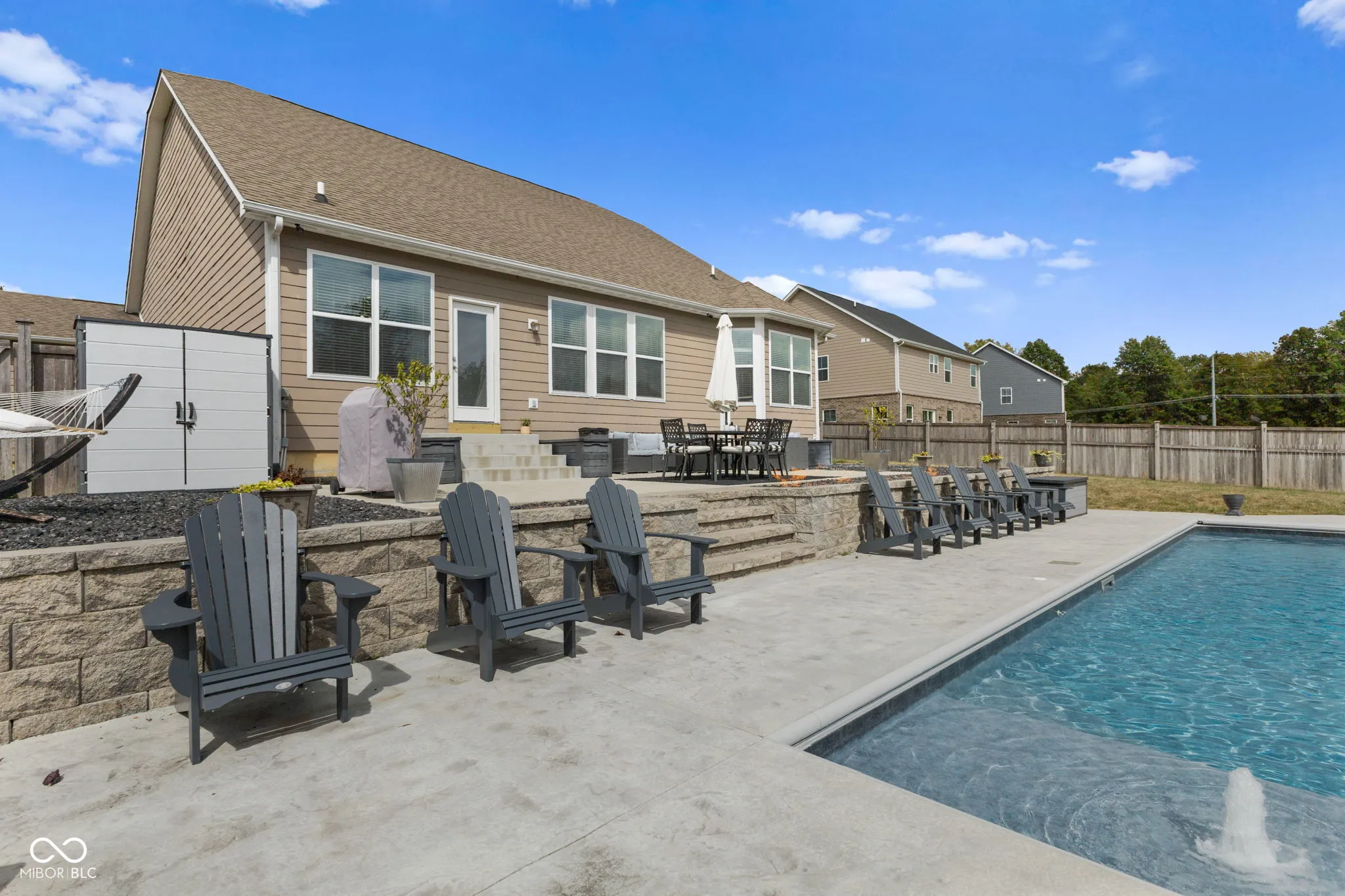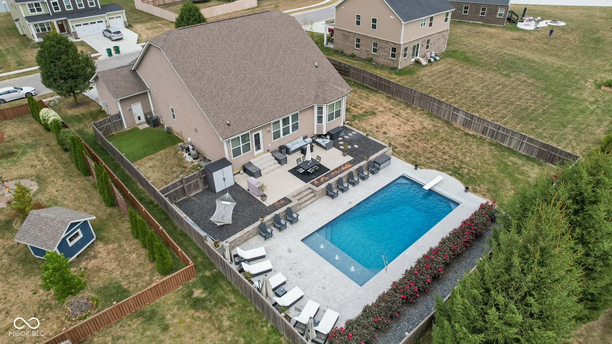 Welcome to this absolutely stunning 5-bedroom, 3.5-bathroom home with over 4,000 square feet of living space, a finished basement, and an inground pool! Located in the sought-after Avon School District, this home features a dramatic brick arched entryway leading into a breathtaking interior with soaring cathedral ceilings in the great room, arched doorways, and a tray ceiling. The open floor plan includes a formal dining room and a spacious main-floor master suite with a luxurious bathroom-complete with a double vanity, garden tub, and separate stand-up shower. The gourmet kitchen is a chef’s dream, boasting 42-inch cabinets, granite countertops, stainless steel appliances, a double oven, and a pantry. You’ll also find convenient built-ins in the mudroom. Downstairs, the expansive finished basement offers two large bedrooms with egress windows and a Jack-and-Jill bath, plus a versatile rec room that can serve as a play area, home theater, or game room. Step outside to your private oasis: an inground pool, surrounded by a generous patio, built-in fire pit, and a fully fenced backyard. All outdoor patio furniture is included, making it perfect for entertaining or simply unwinding. The property also features a 3-car attached garage, ample storage, and a separate fenced greenspace for pets. This home perfectly blends style, comfort, and functionality in an ideal location-don’t miss your chance to make it yours!