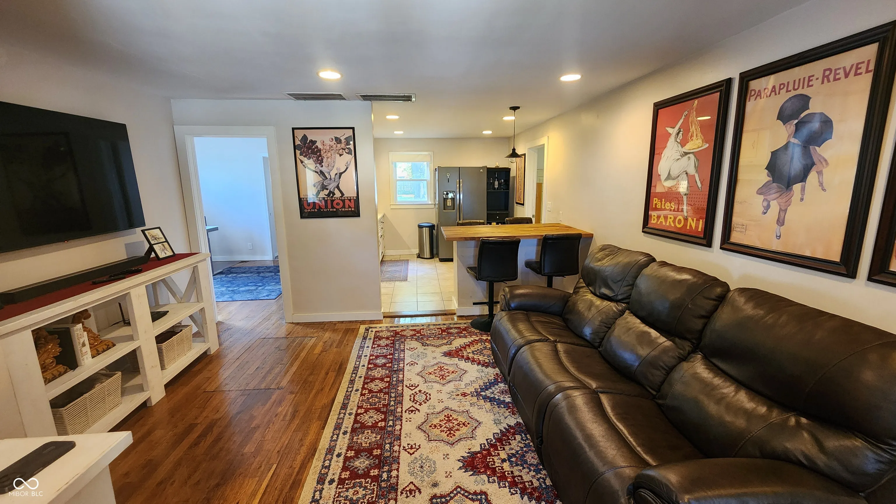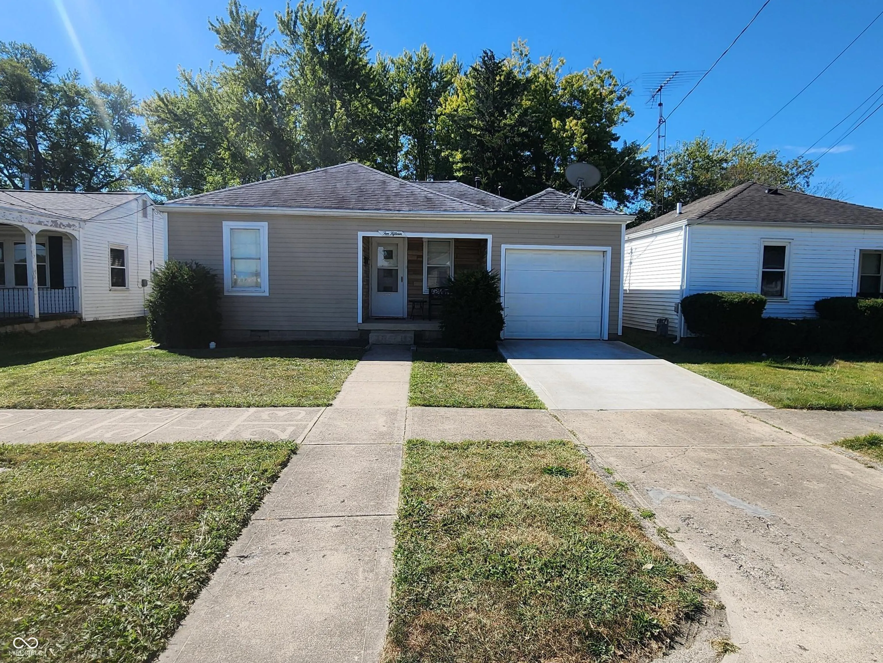 More than meets the eye, this two bedroom home has a bonus room that is currently used as an office, but could be another living space, more formal dining room, extra bedroom, or whatever fits your needs. There are hardwood floors, a large laundry room, attached garage, new furnace 2023, new AC unit 2023, large back yard with vintage metal fence, the solid block building is great for all seasons with a wood burning heater, open patio in the back, covered porch in the front, even a tree swing. Amazing location with Pirate Park, Greensburg Community High School, Rebekah Park, and the Library right out your front door. Appliances included, even washer and dryer.